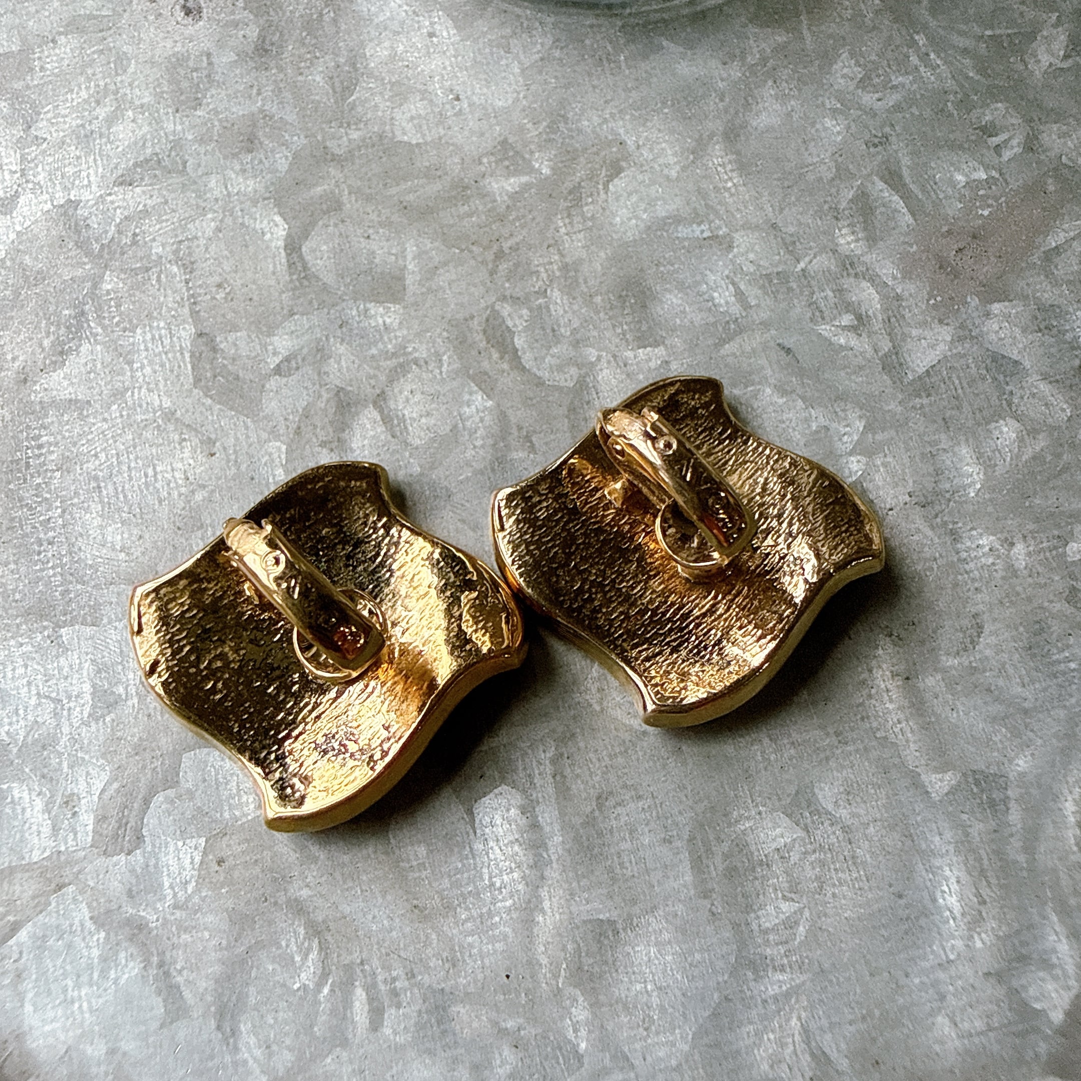 YA215-【 AVON 】エイボン・ヴィンテージイヤリング 1980's Gold-tone Black Enamel Checkered Racing Flag Clip Earrings | eslup_boutique