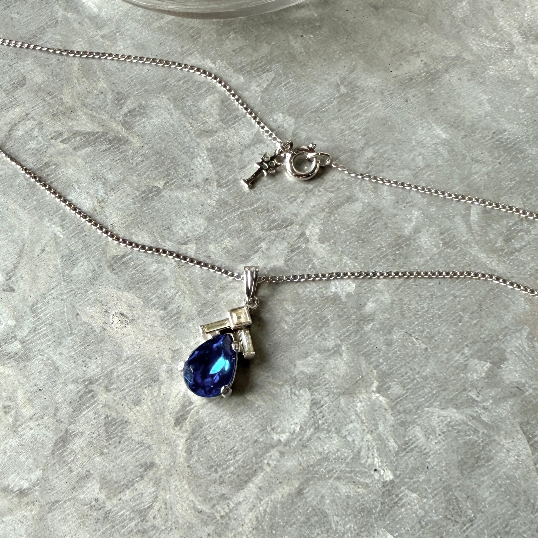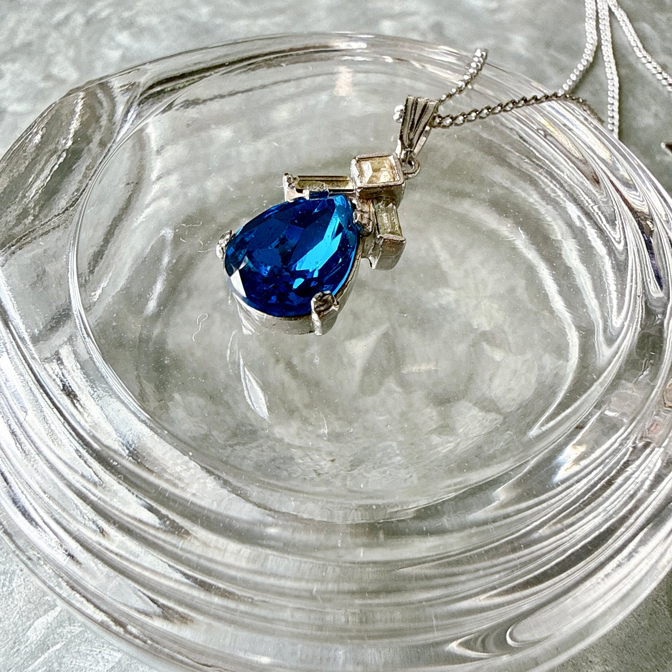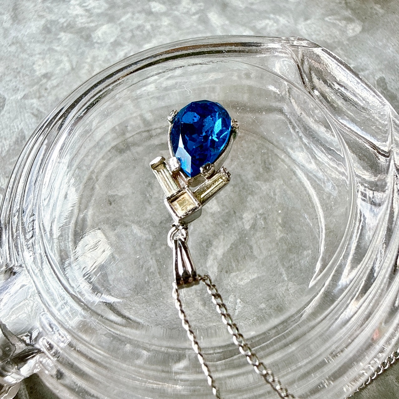 NT20-【 TRIFARI 】クラウントリファリ・ヴィンテージネックレス 1960's Blue Topaz Foil Back Glass Pair Pendant Necklace | eslup_boutique