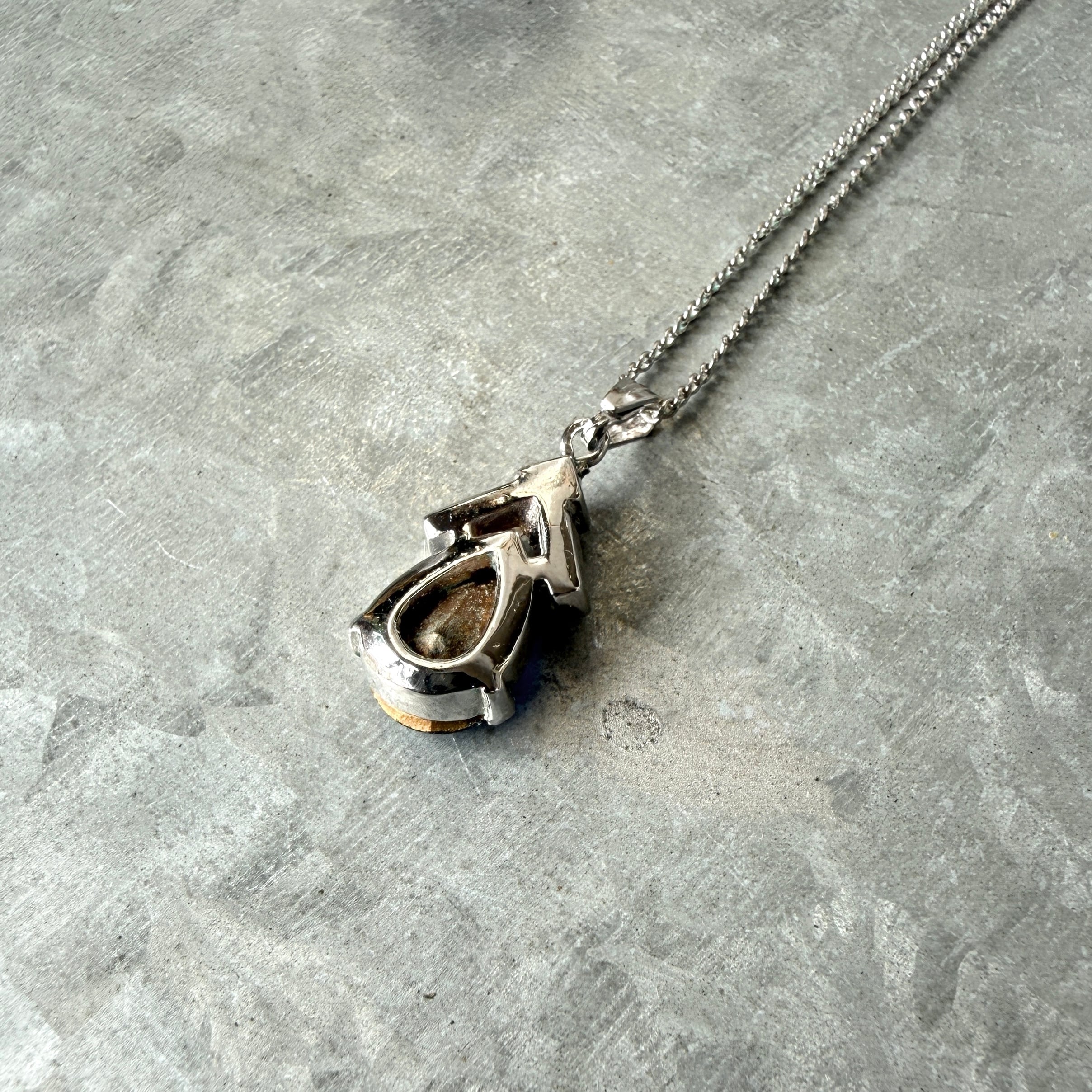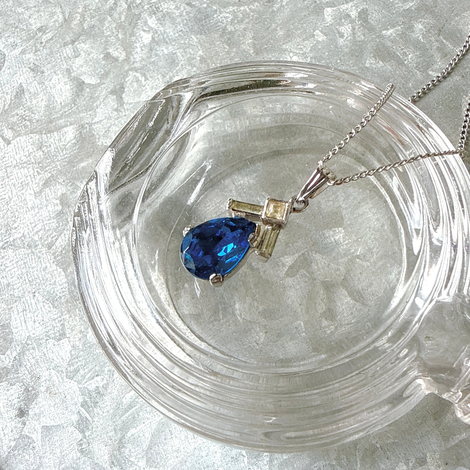 ブルートパーズカラーのカットグラスが美しいシルバートーンペンダントネックレス。