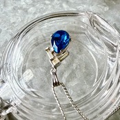 細かくカットされたペアシェイプカットグラス。角度によって光を美しく反射させ、深みのあるブルーカラーが美しいです。