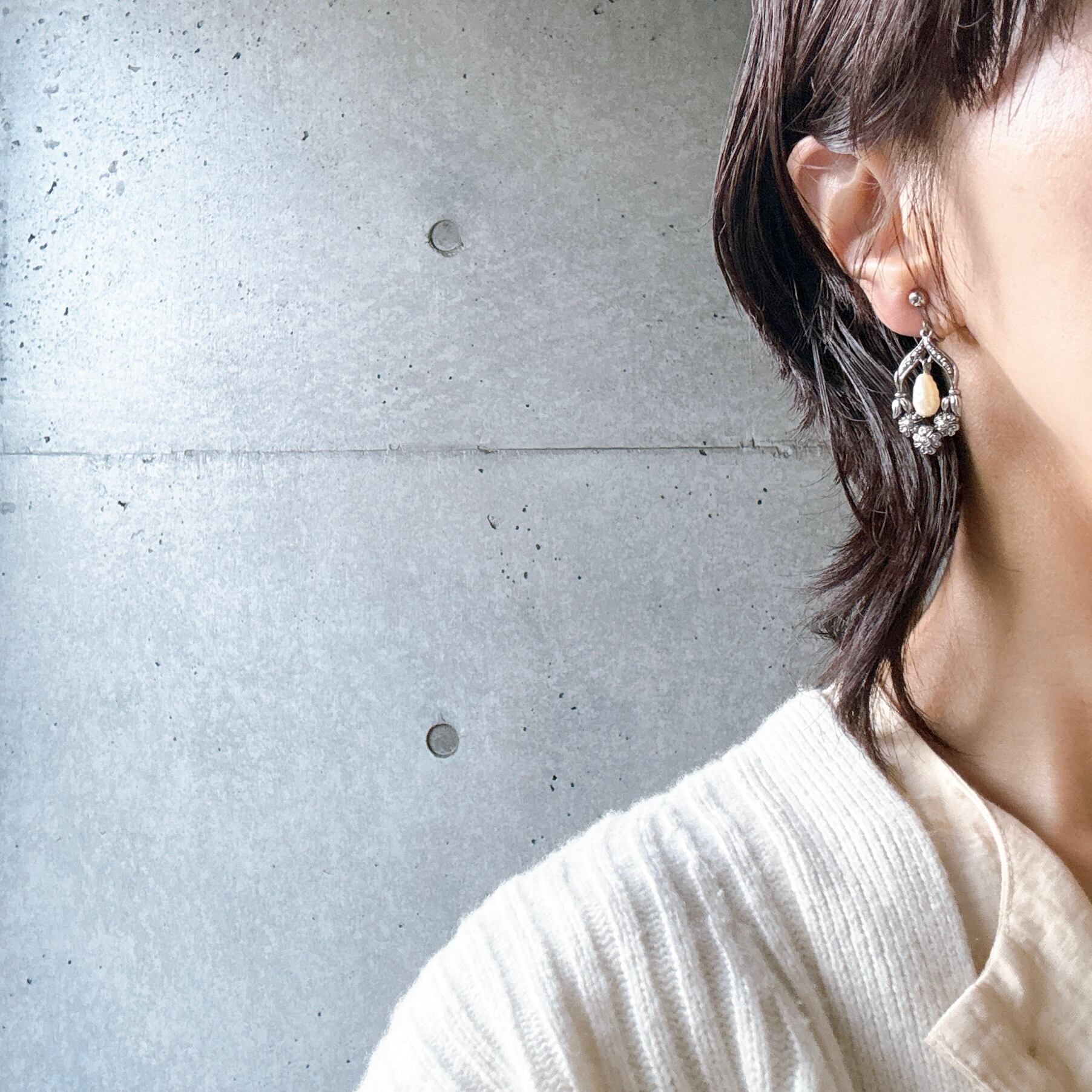 シンプル、カジュアル、エレガント、シックなモードスタイルなど、さまざまなシーンの着こなしに映える素敵なヴィンテージイヤリングです。