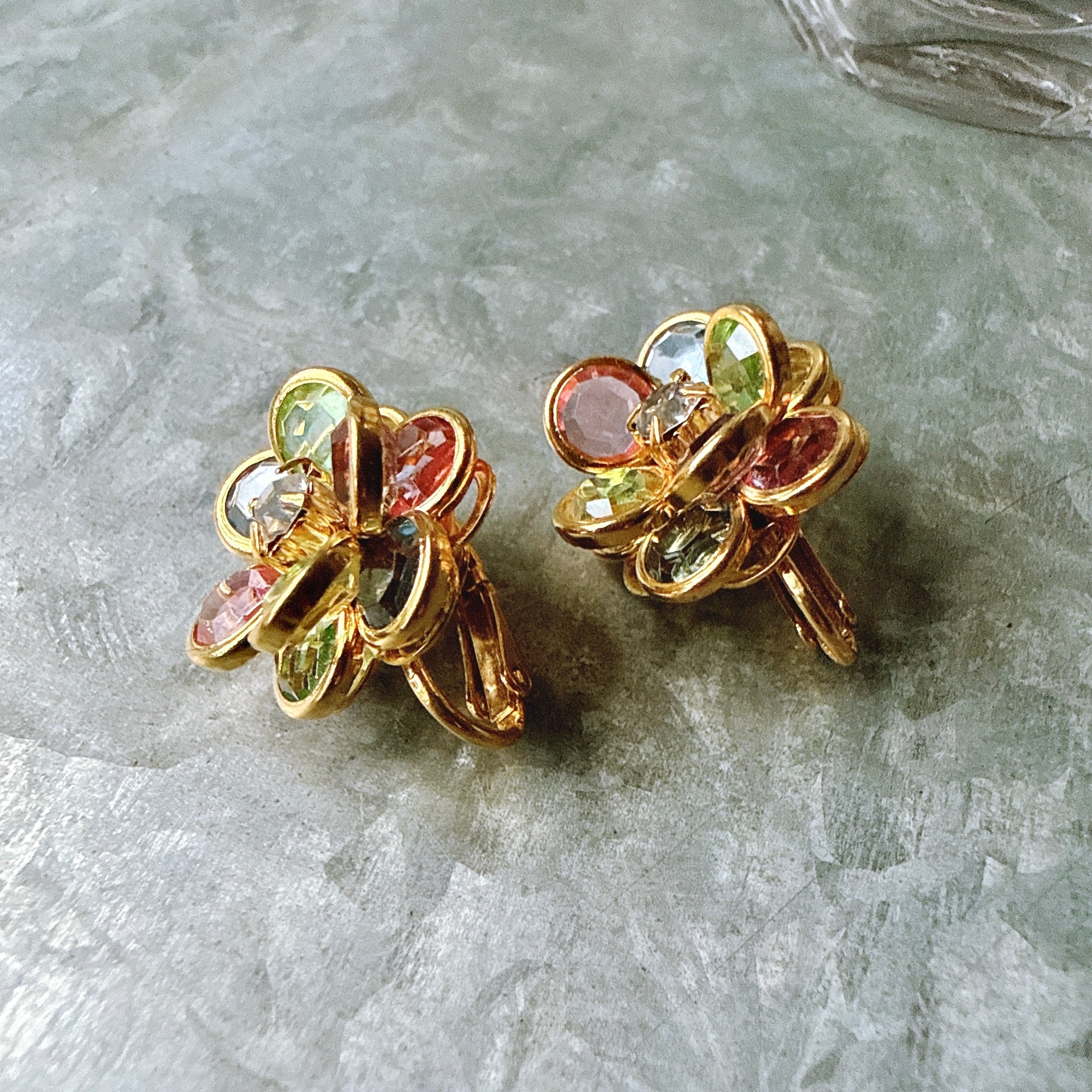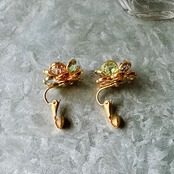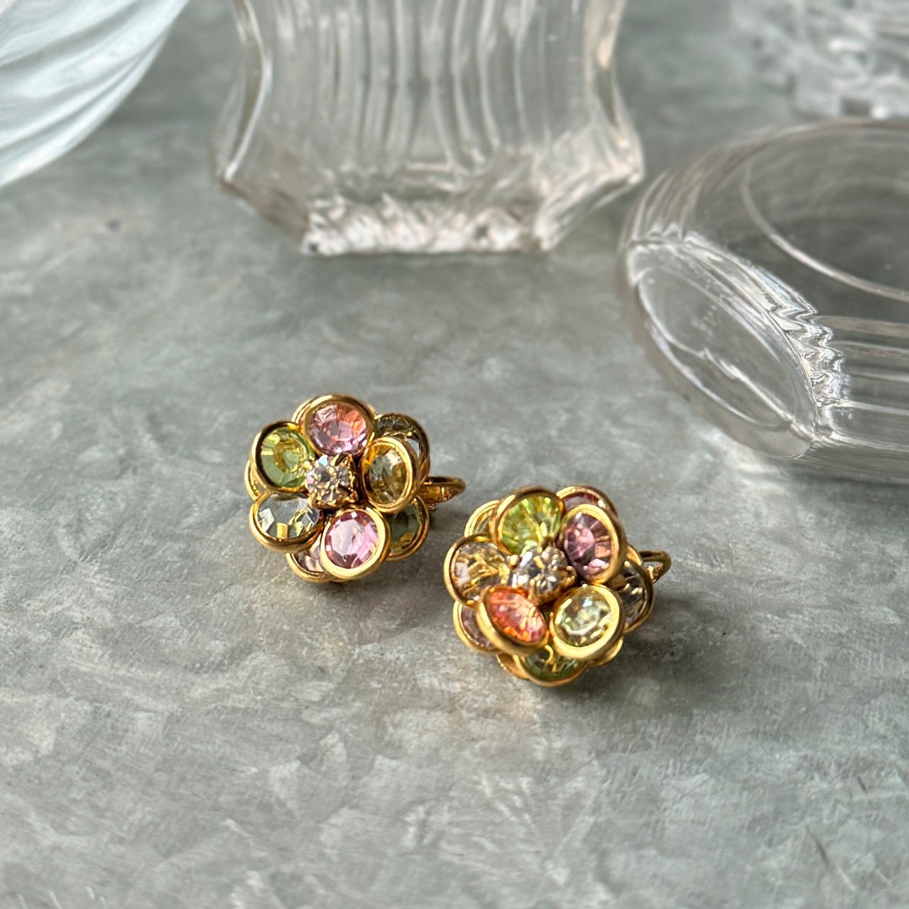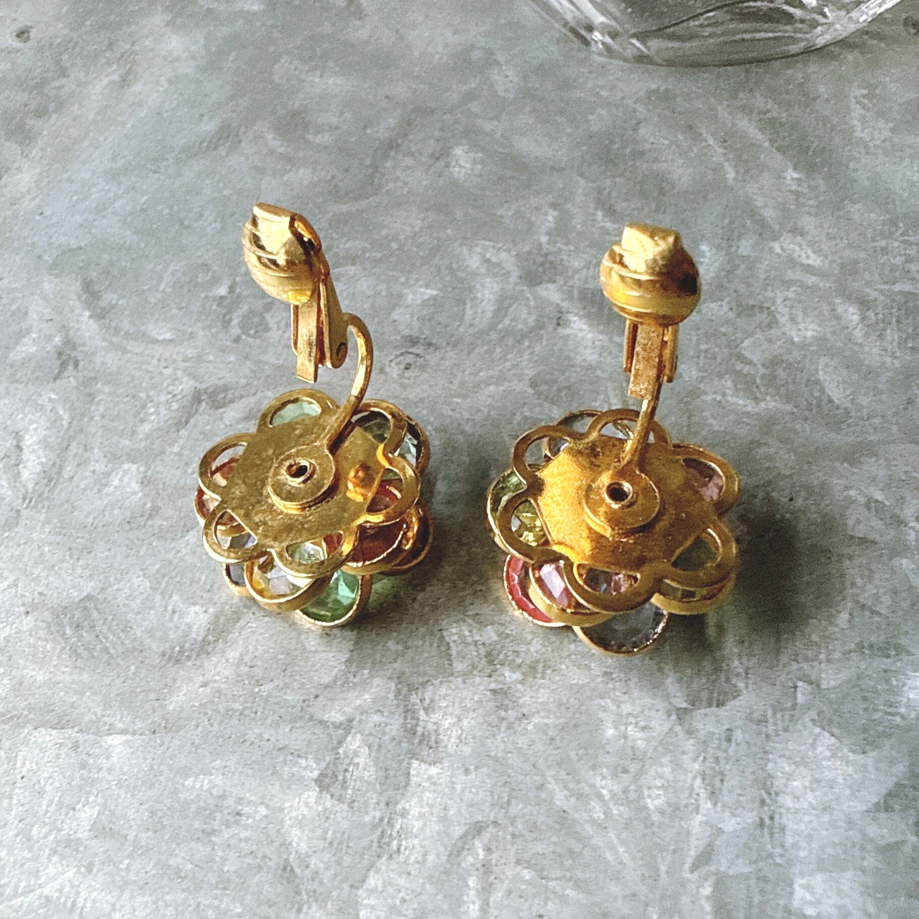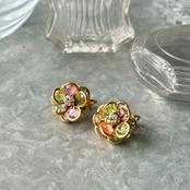 マルチカラーのカットグラスが美しい、フローラルイヤリング。