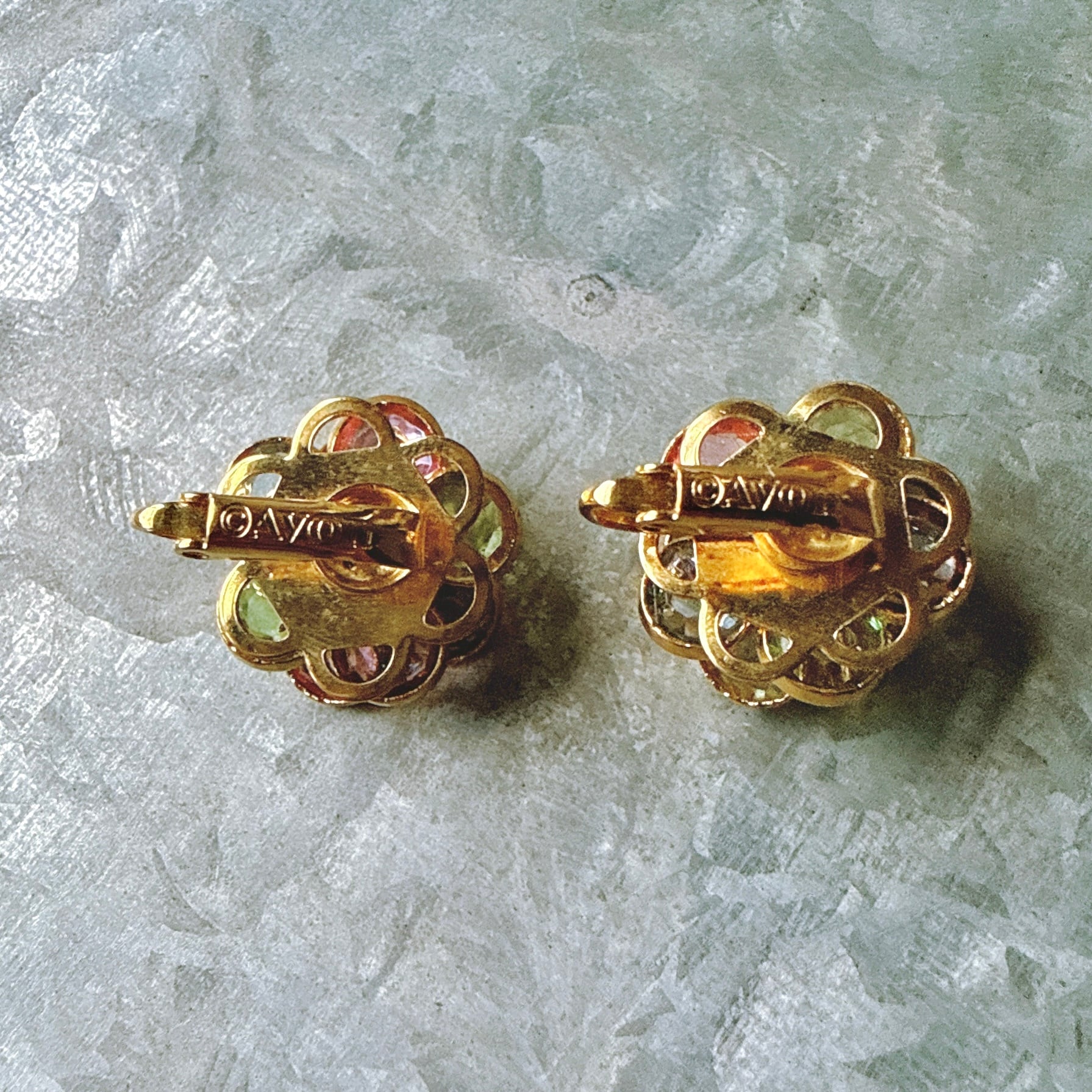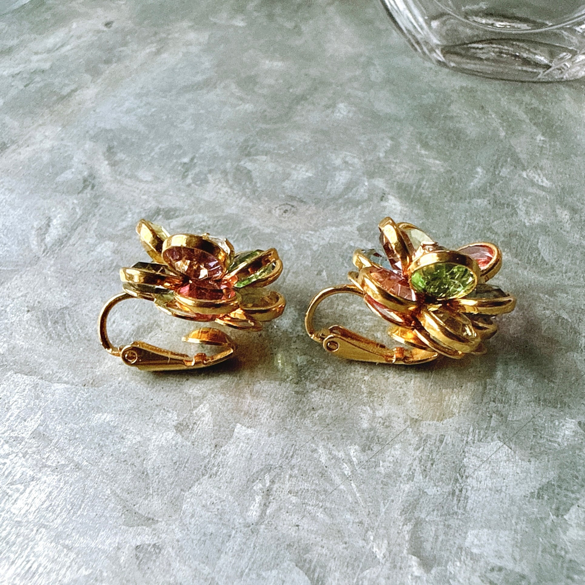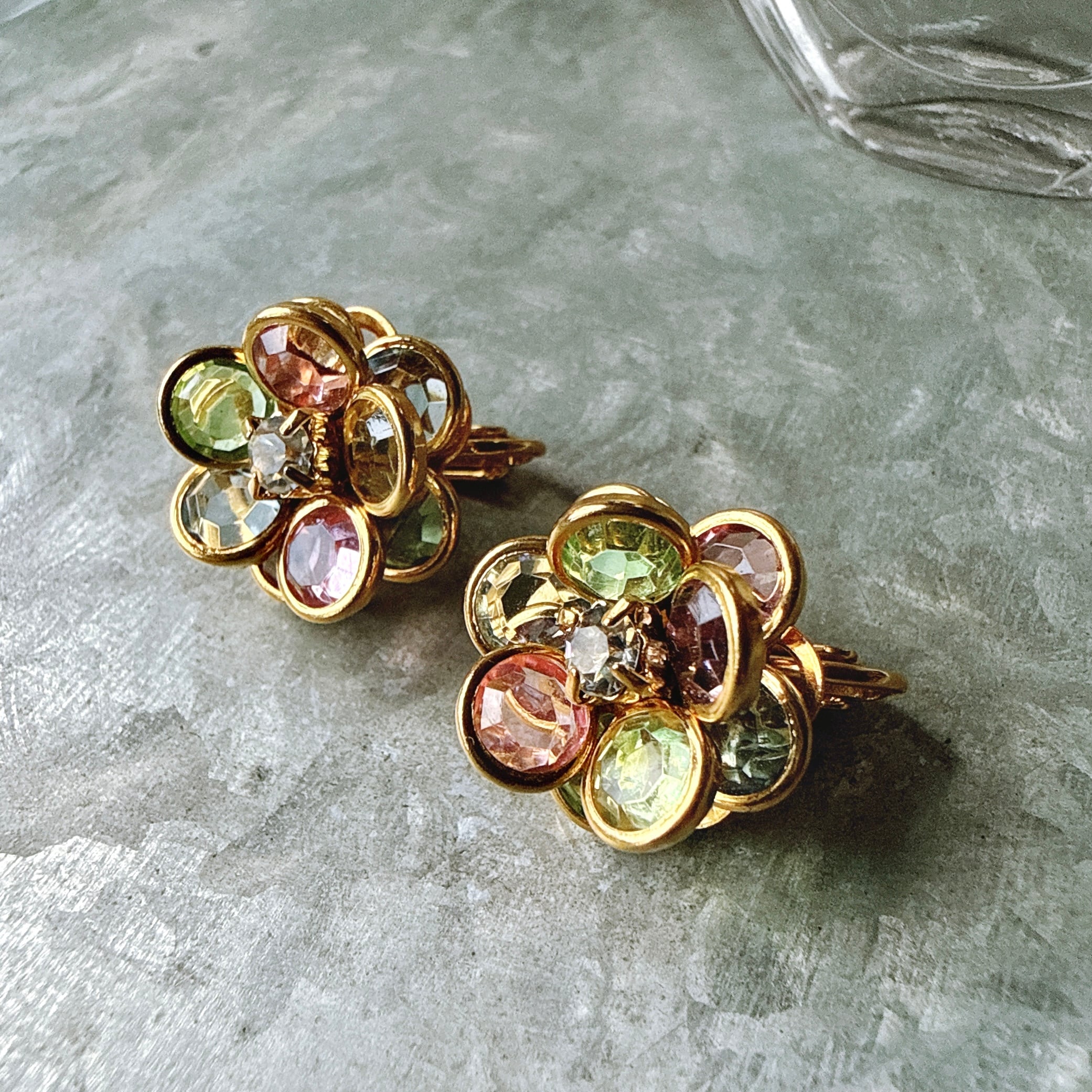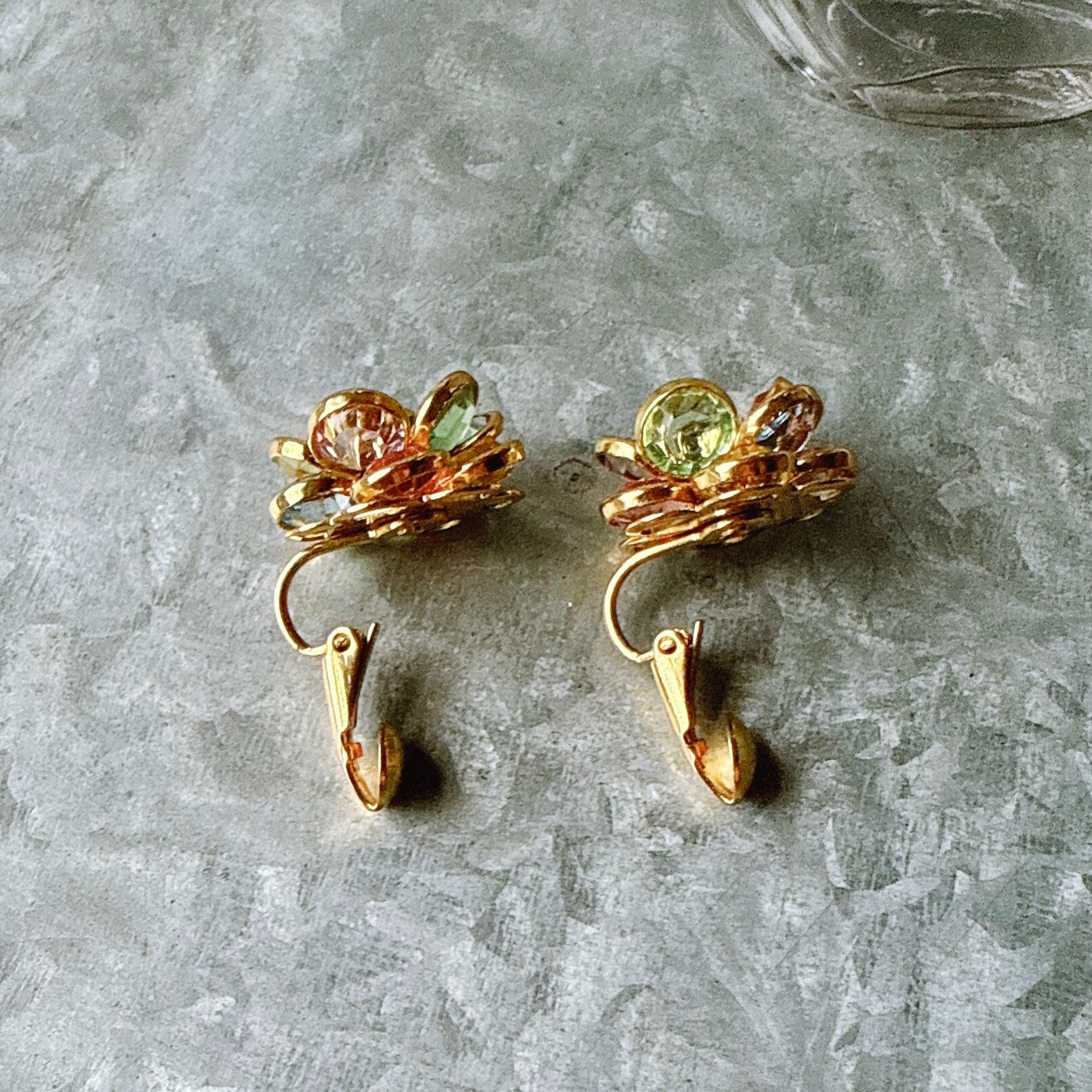YA223-【 AVON 】エイボン・ヴィンテージイヤリング 1980's Multicolor Faceted Petals Crystal Bezel Setting Clip Earrings