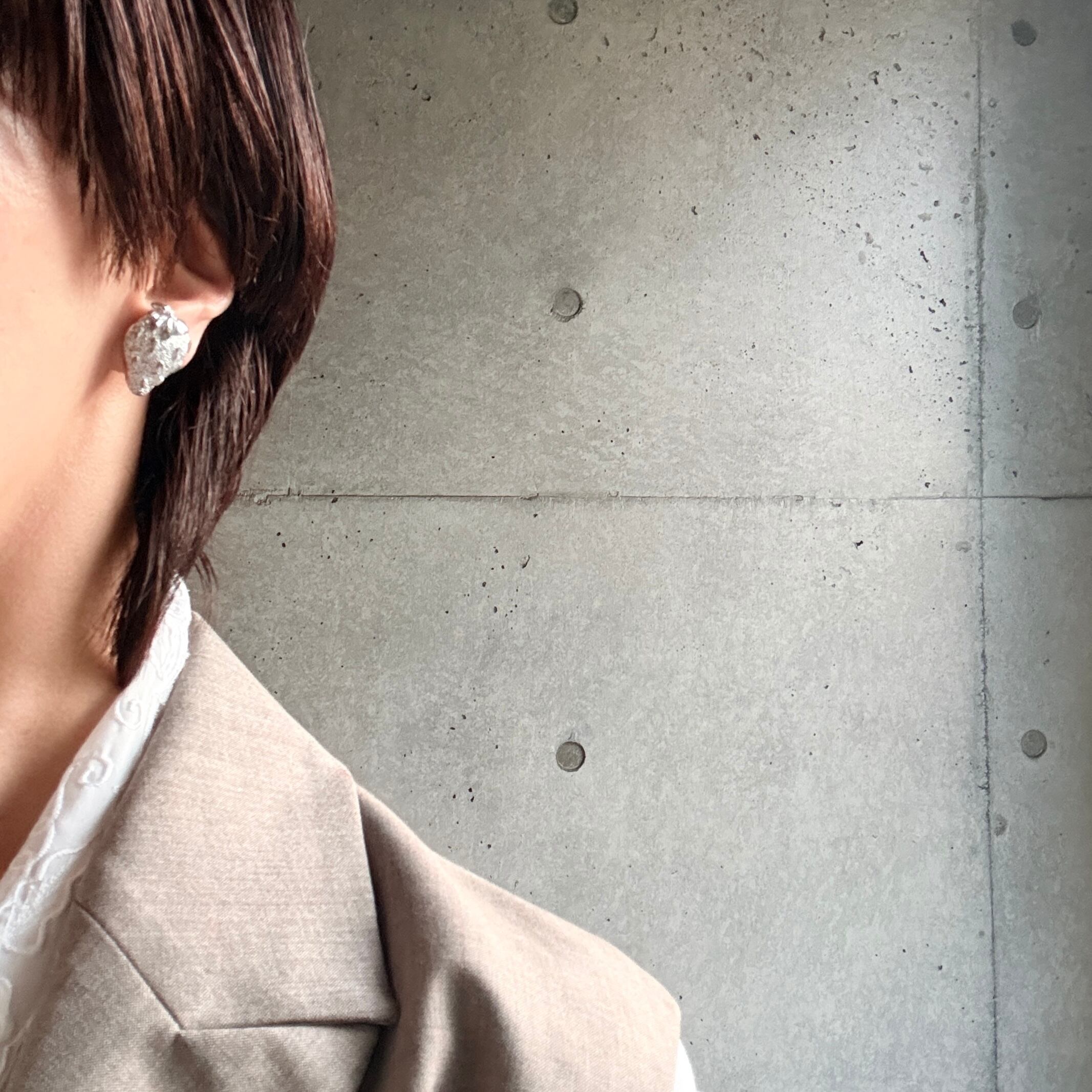 イヤリング本体裏面のメッキが小さく剥がれています。シルバーカラーで一見目立たない程度です。