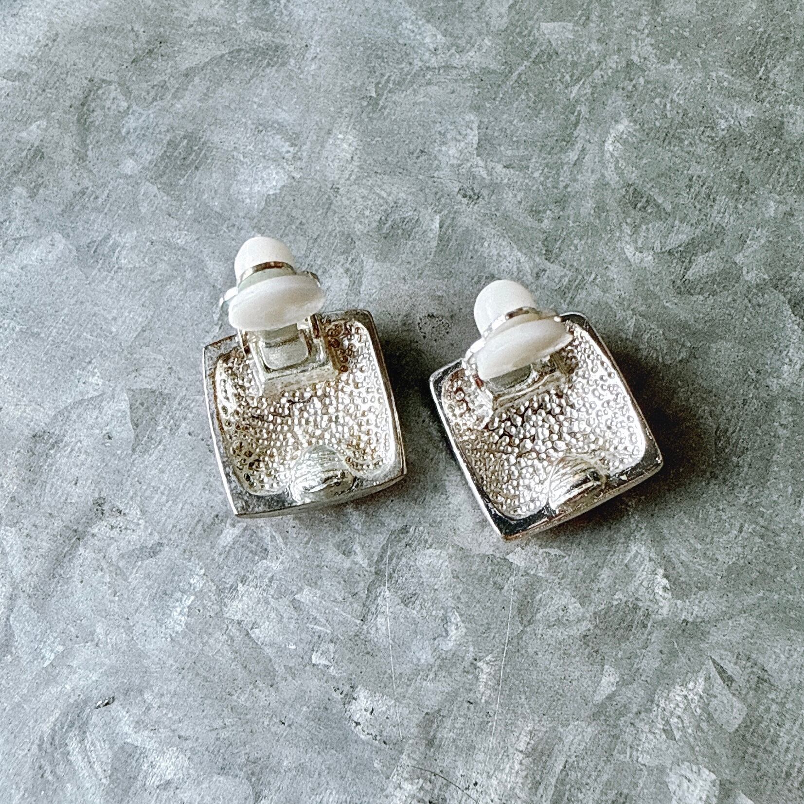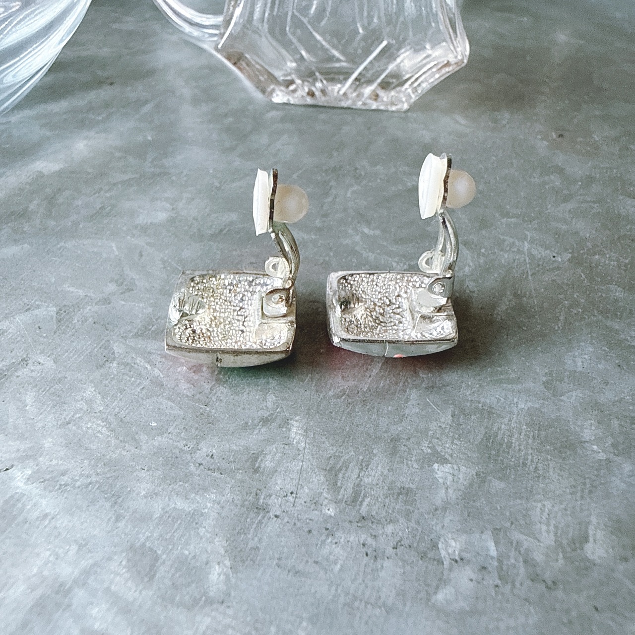 Y1213-ヴィンテージイヤリング U.S.A. 1980's Sherbet Colorblock Square Silver Tone Earrings