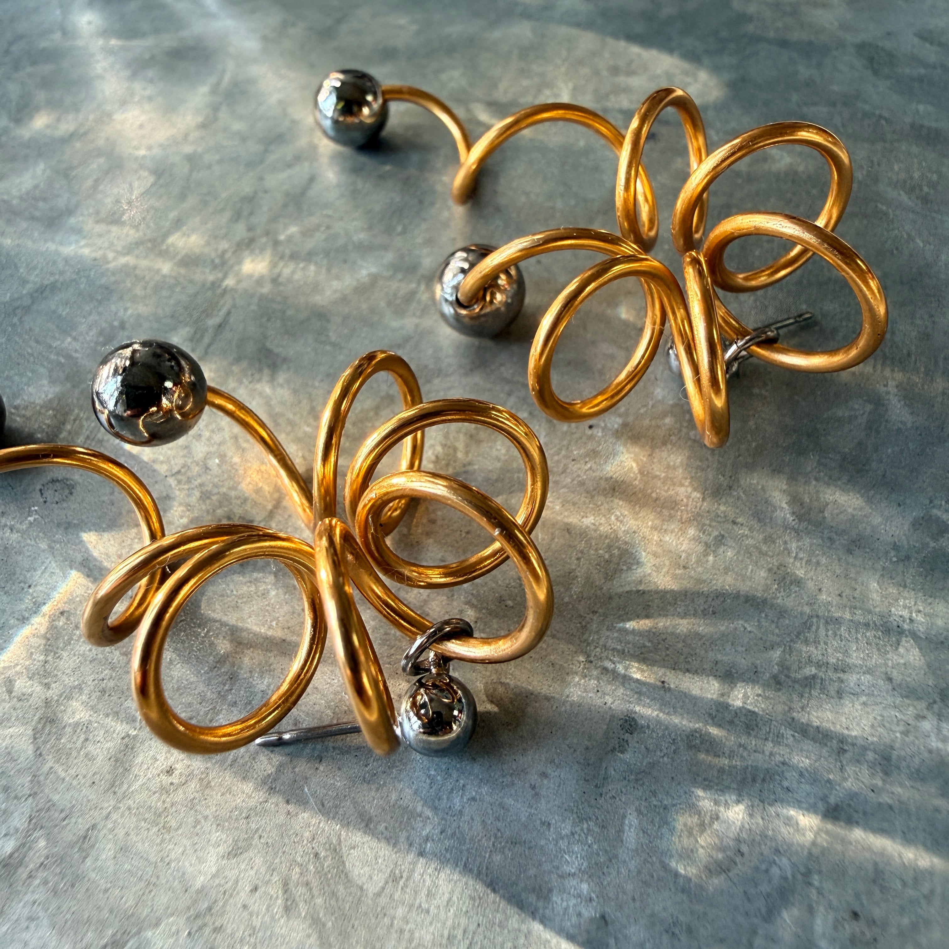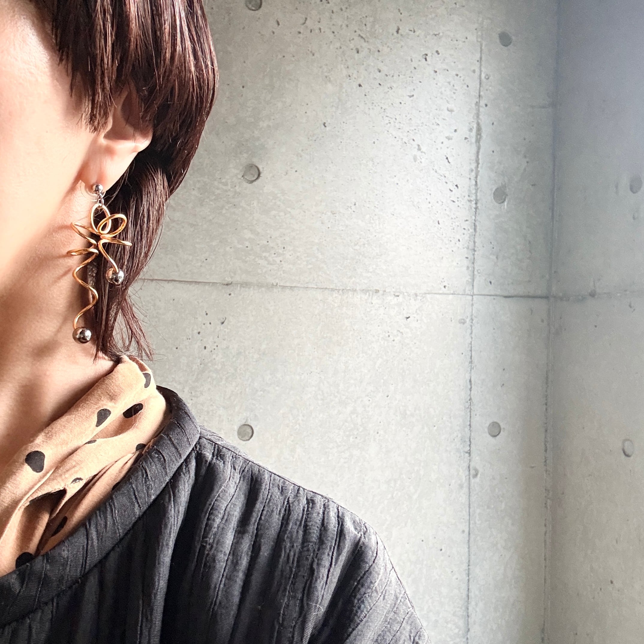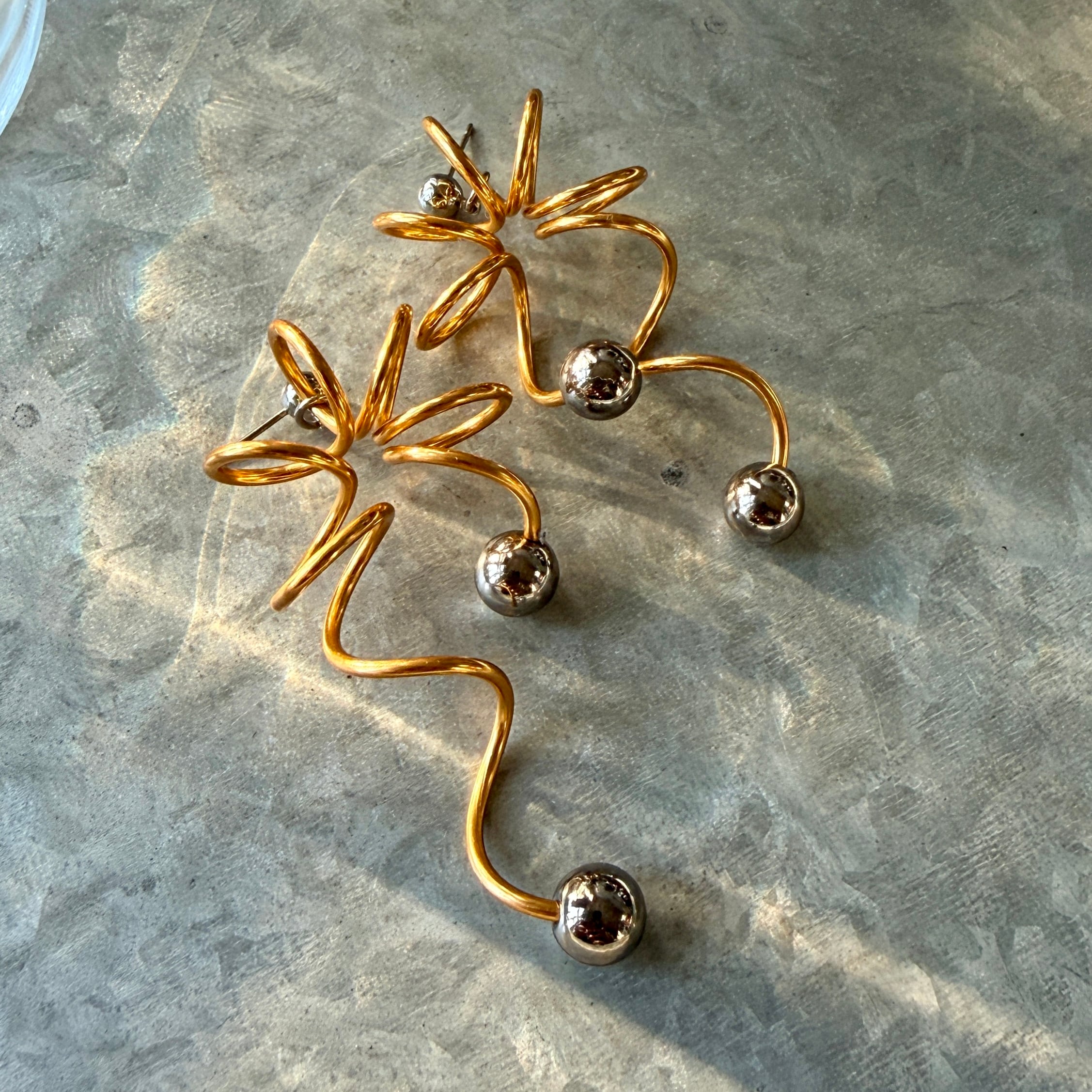 シルバーメタルボールがアクセントとなり、コイルのように大胆なスパイラルがアーティスティックで個性的な存在感を放ちます。