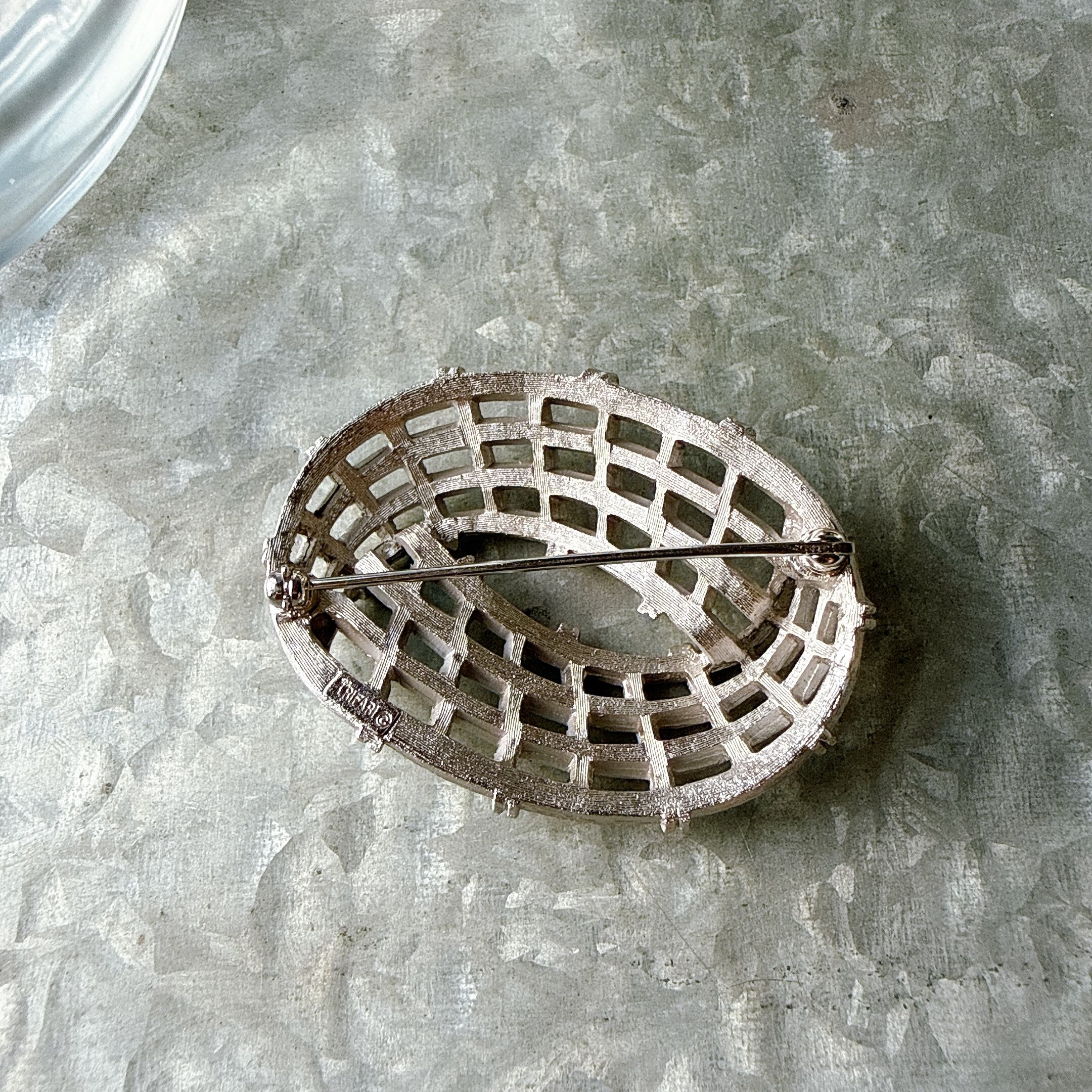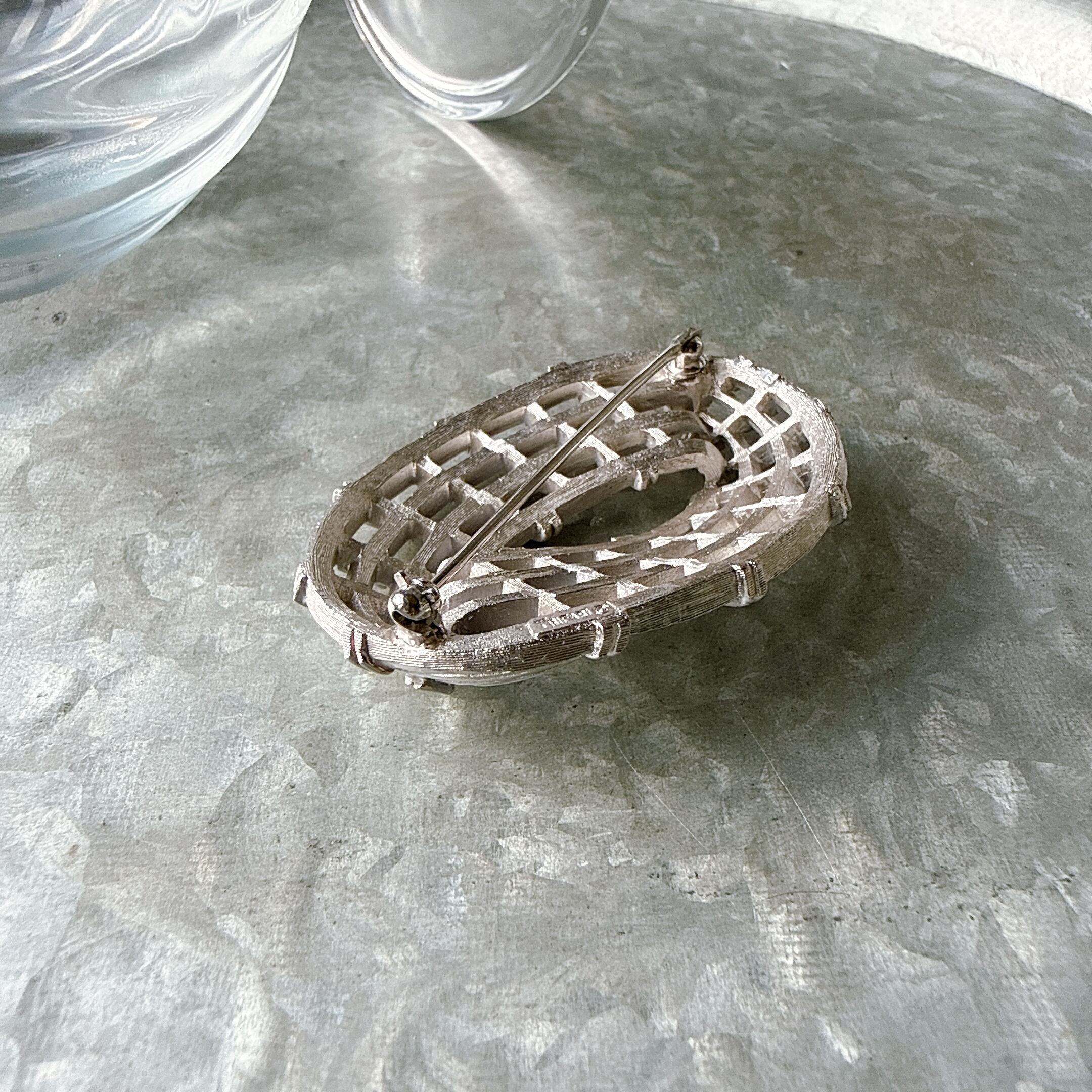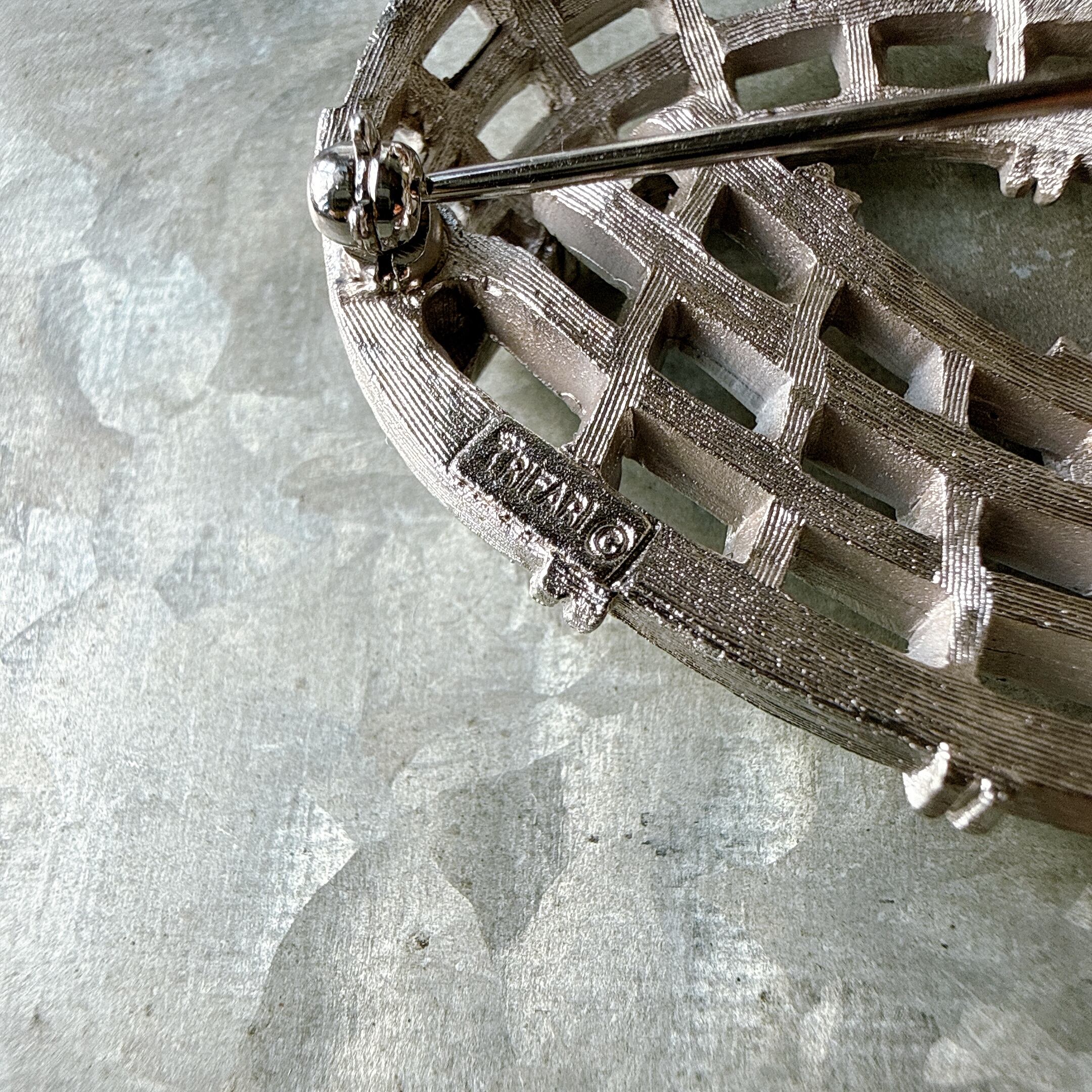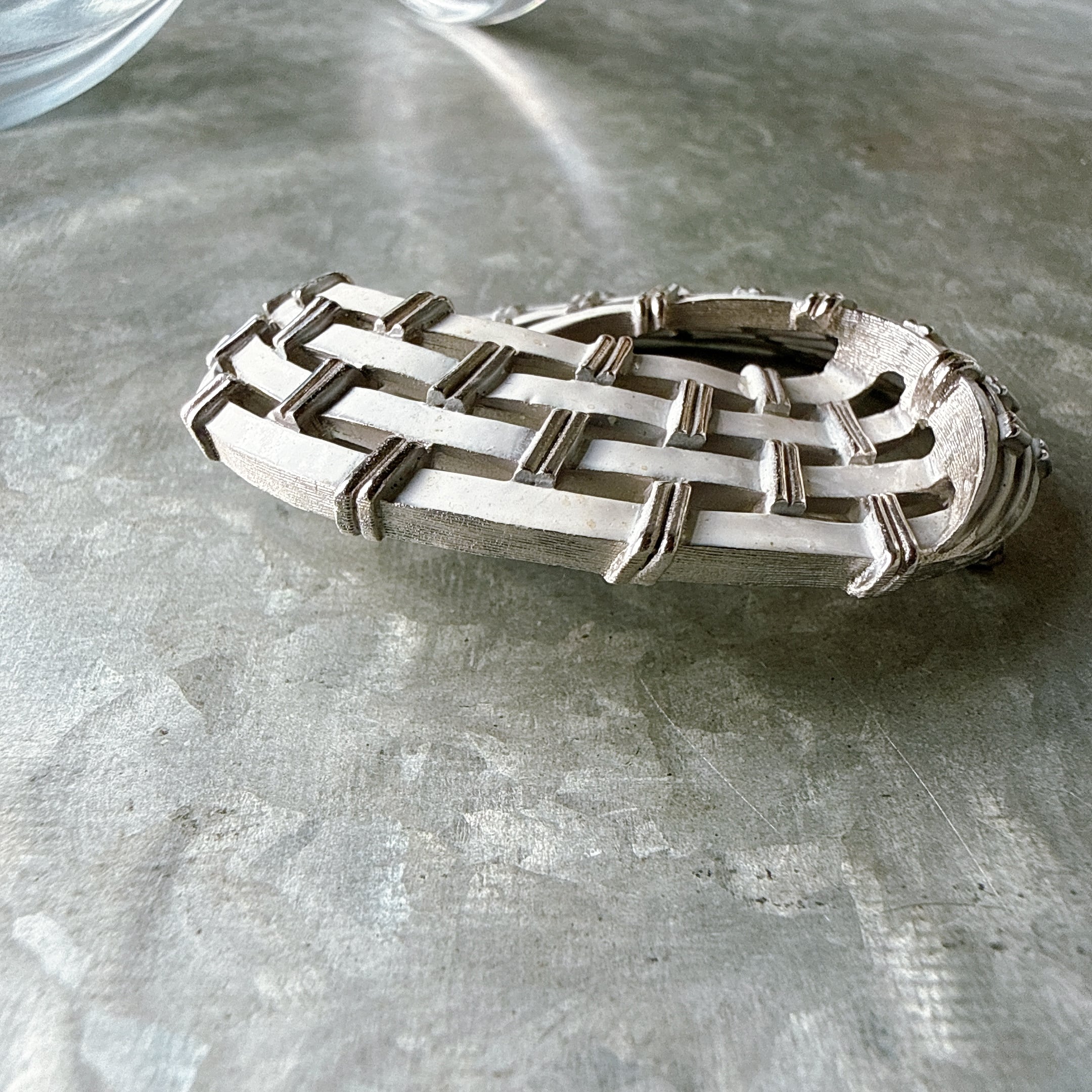 SCT3-【 TRIFARI 】クラウントリファリ・ヴィンテージブローチ 1950〜60's Basket Weave White Enamel Paint Silver Tone Brooch | eslup_boutique
