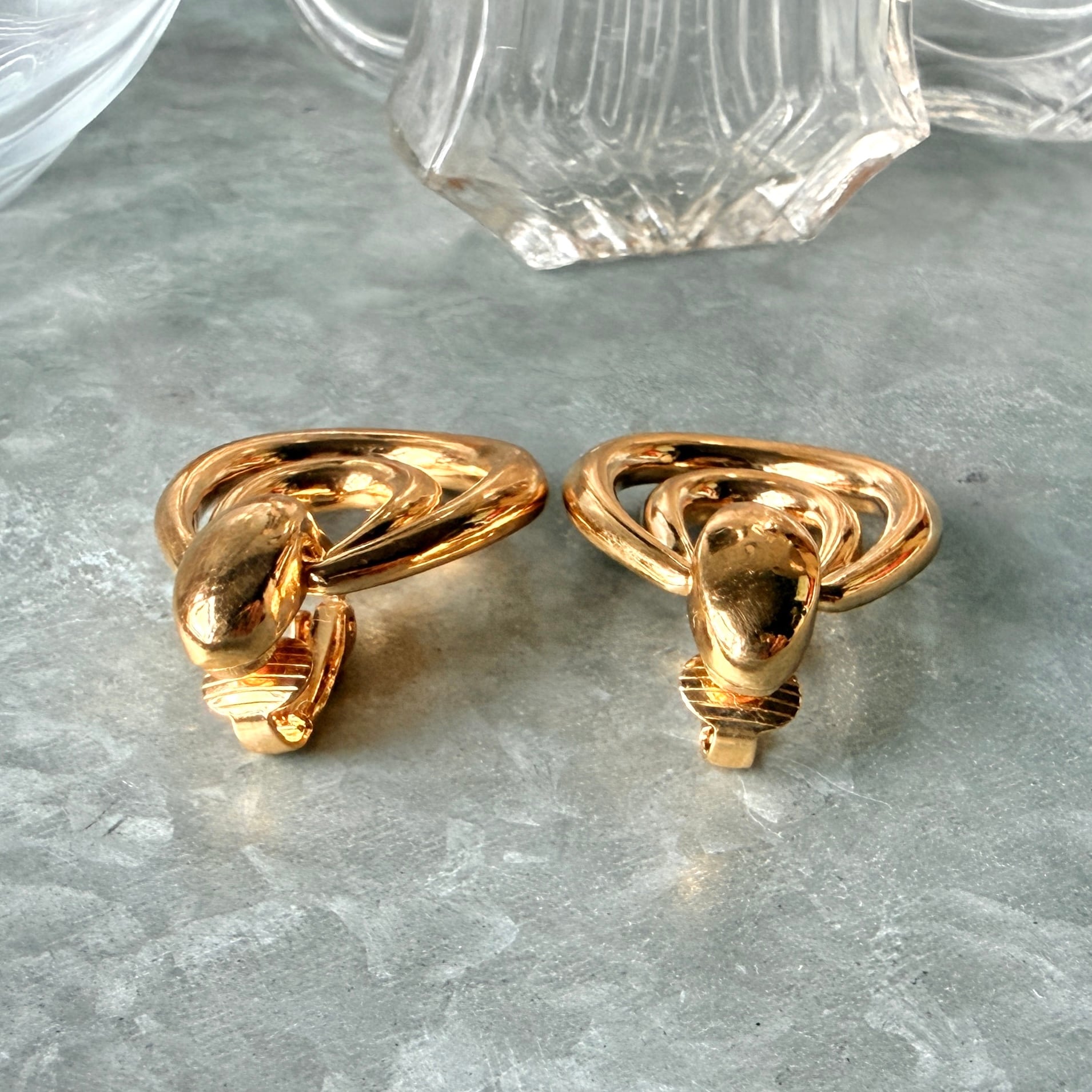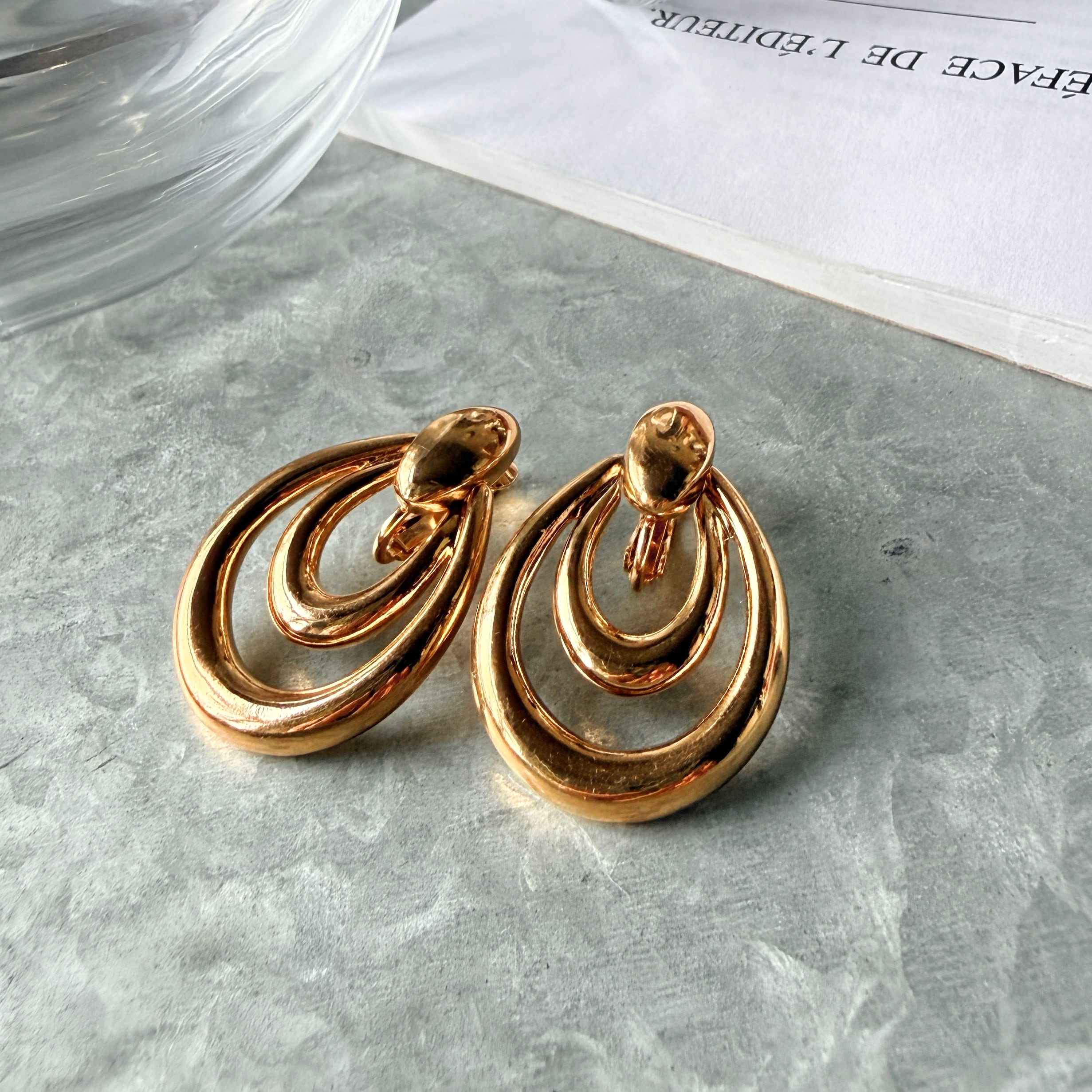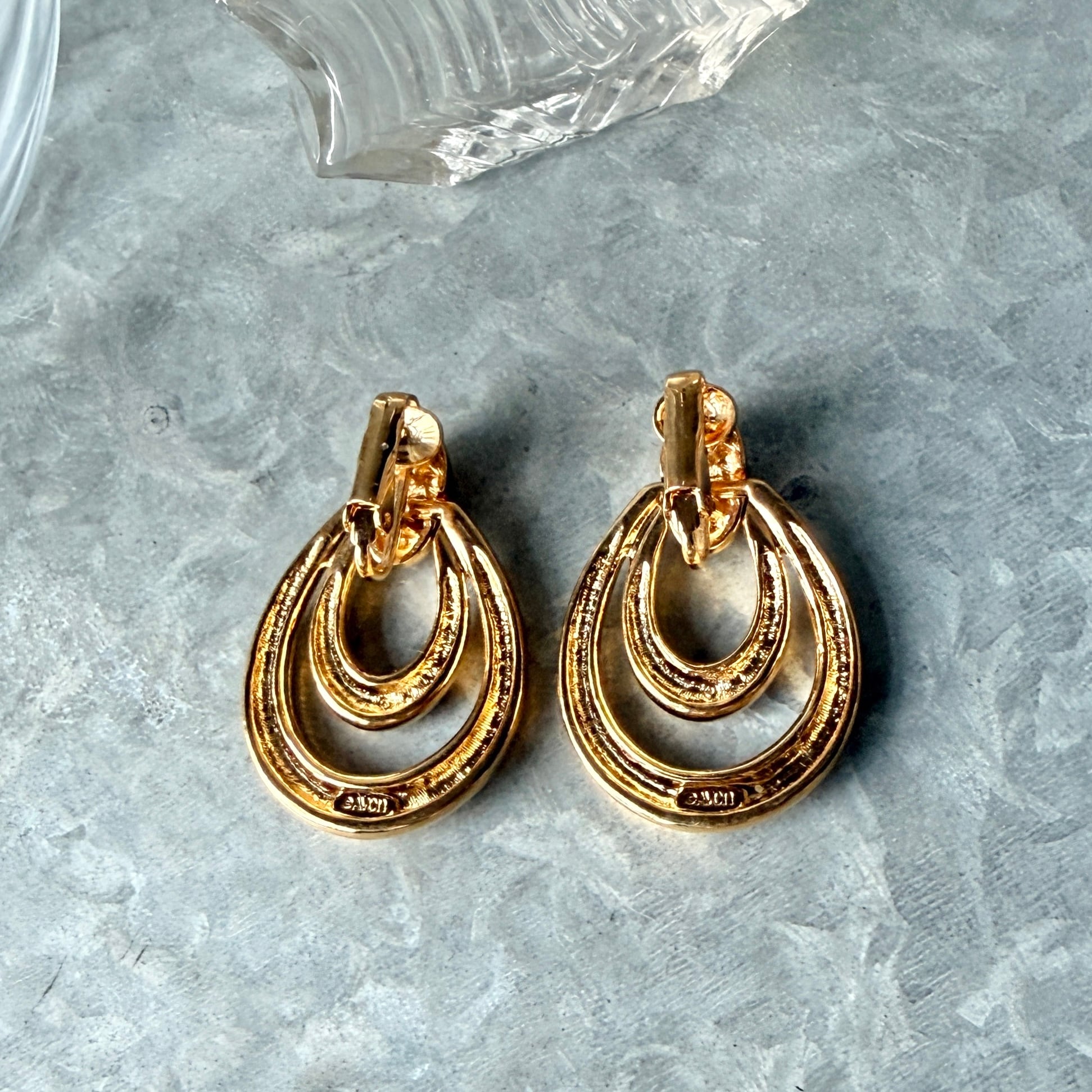 YA228-【 AVON 】エイボン・ヴィンテージイヤリング 1980's Gold Tone Double Drop Hoop Door Knocker Clip Earrings | eslup_boutique