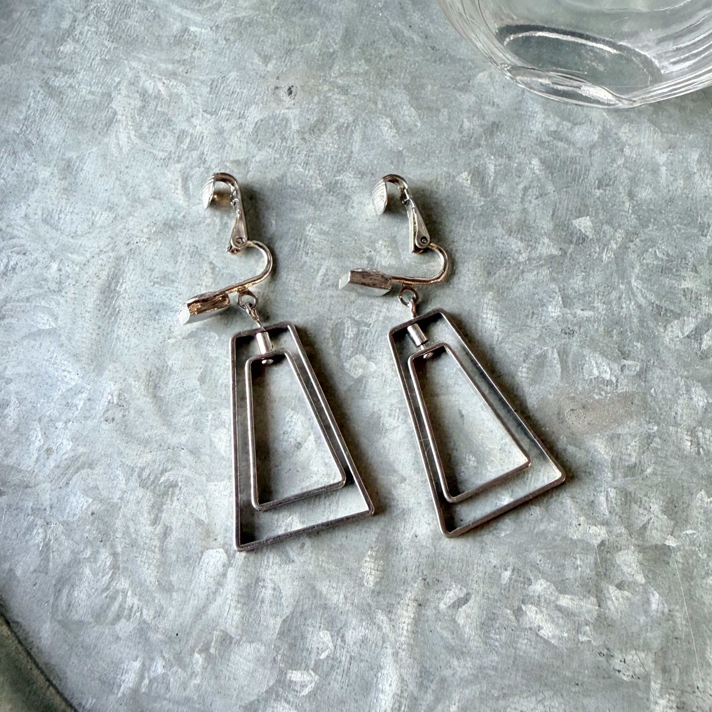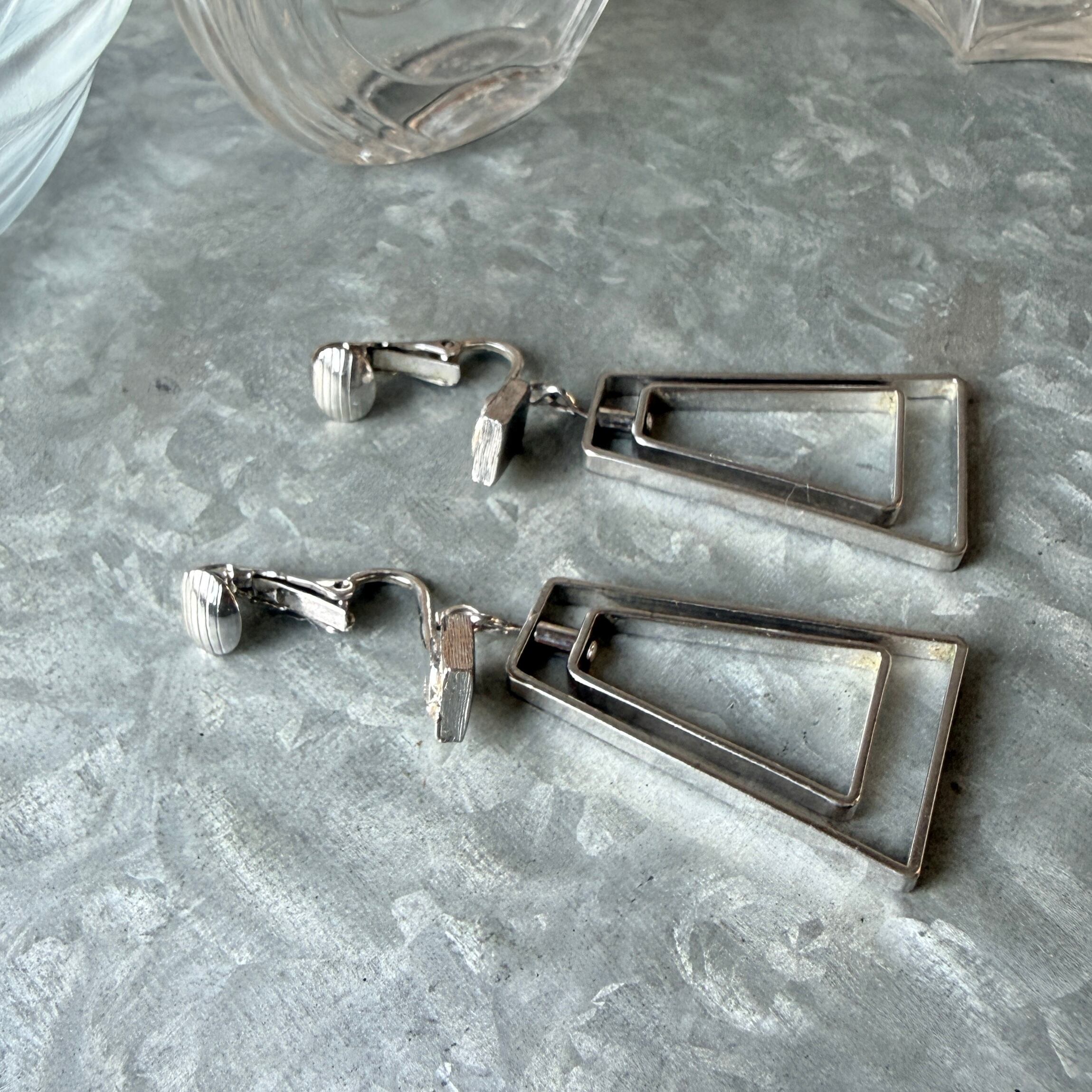 YA229-【 AVON 】エイボン・ヴィンテージイヤリング 1977 "Sweet Whispers" Geometric Silver Tone Dangle Earrings | eslup_boutique
