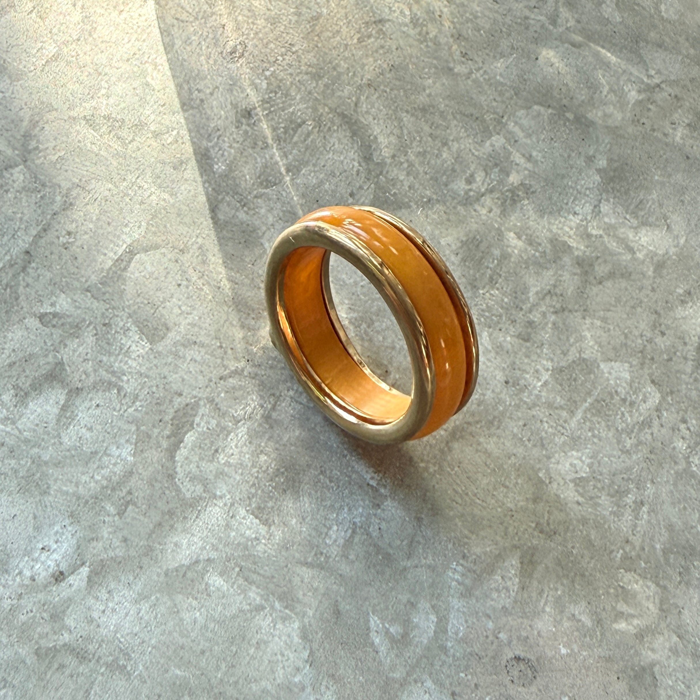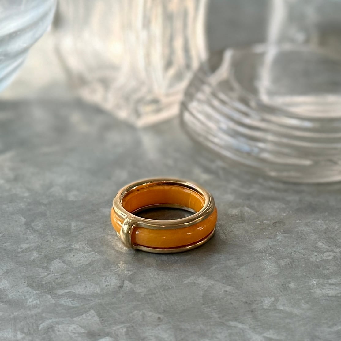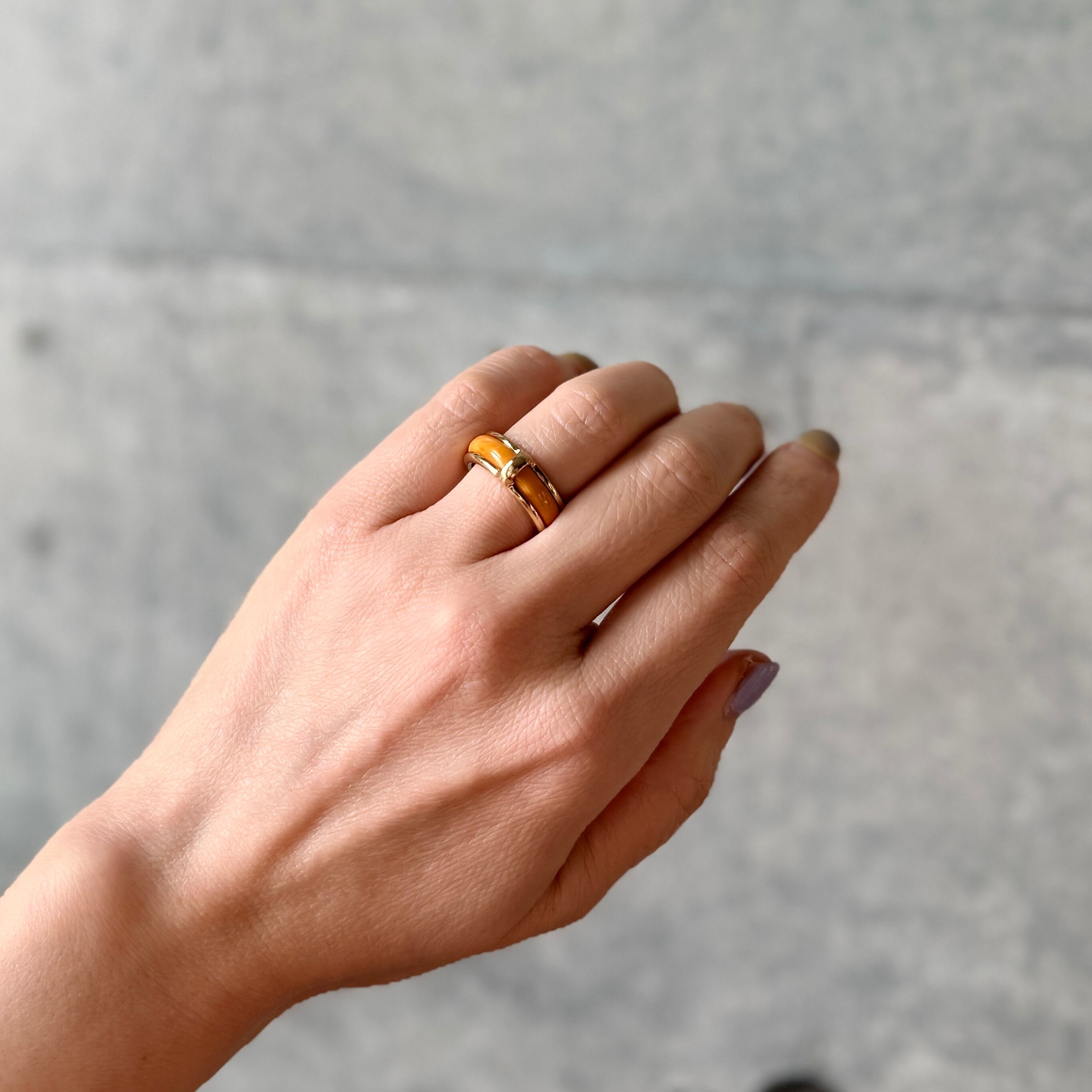 やわらかなカラーで肌馴染みもよく、さまざまなシーンの着こなしに映える素敵なヴィンテージリングです。