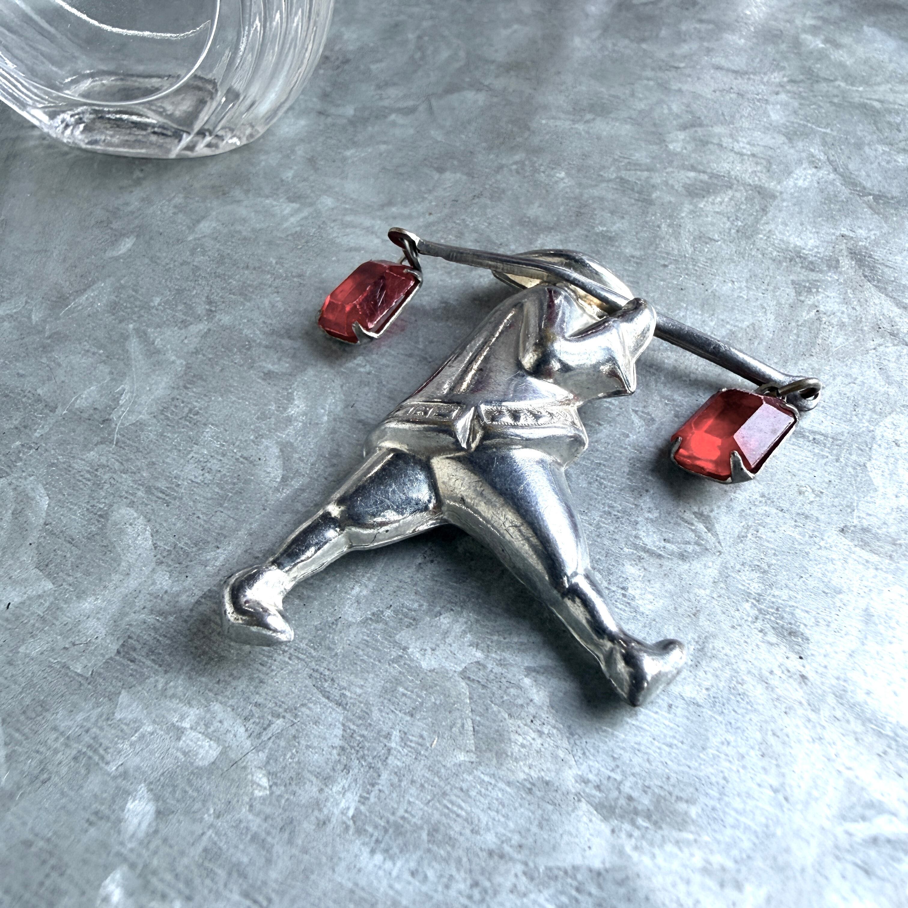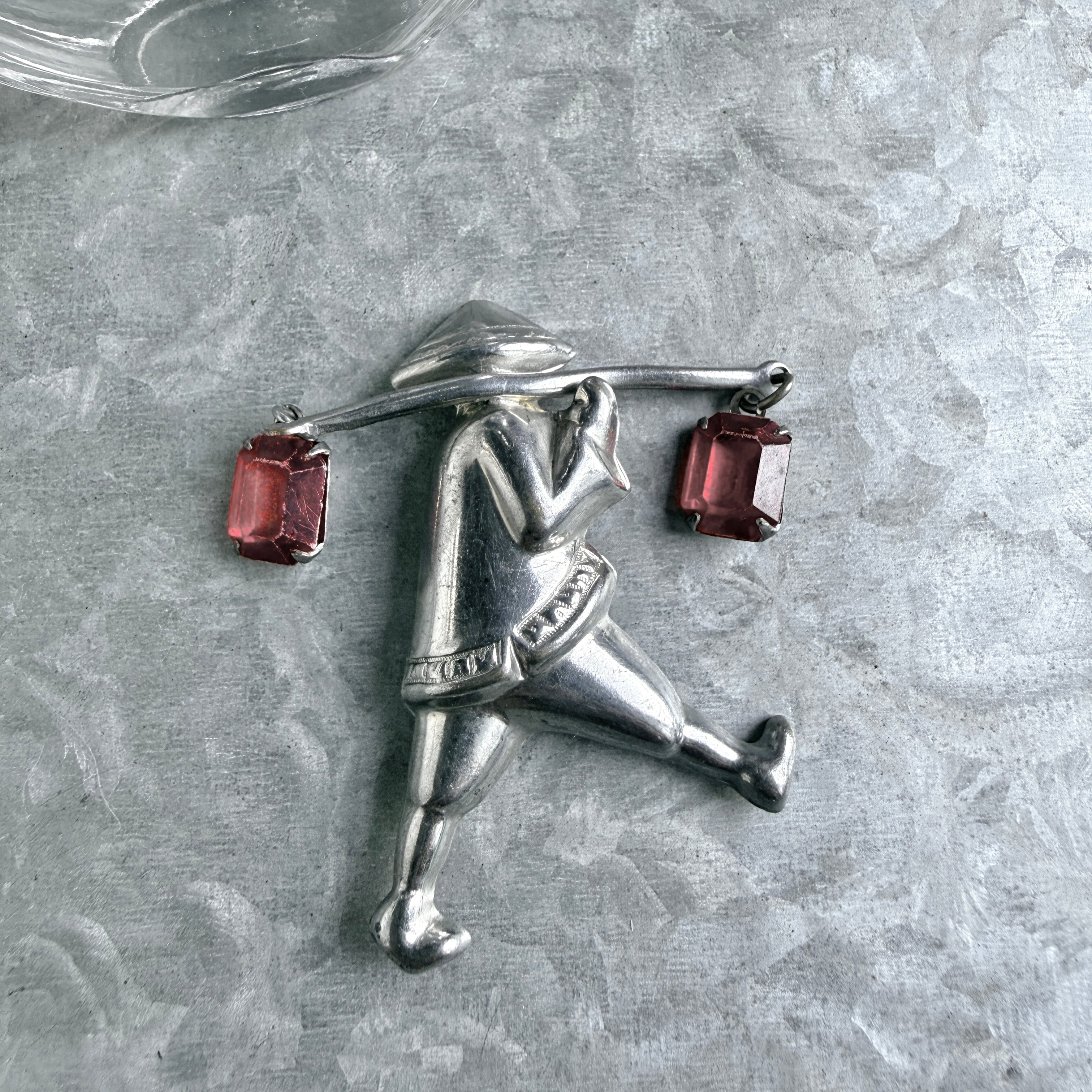 SC146-ヴィンテージブローチ U.S.A. 1940〜50's Orientalism Vintage Figural Porter Silver Tone Brooch | eslup_boutique