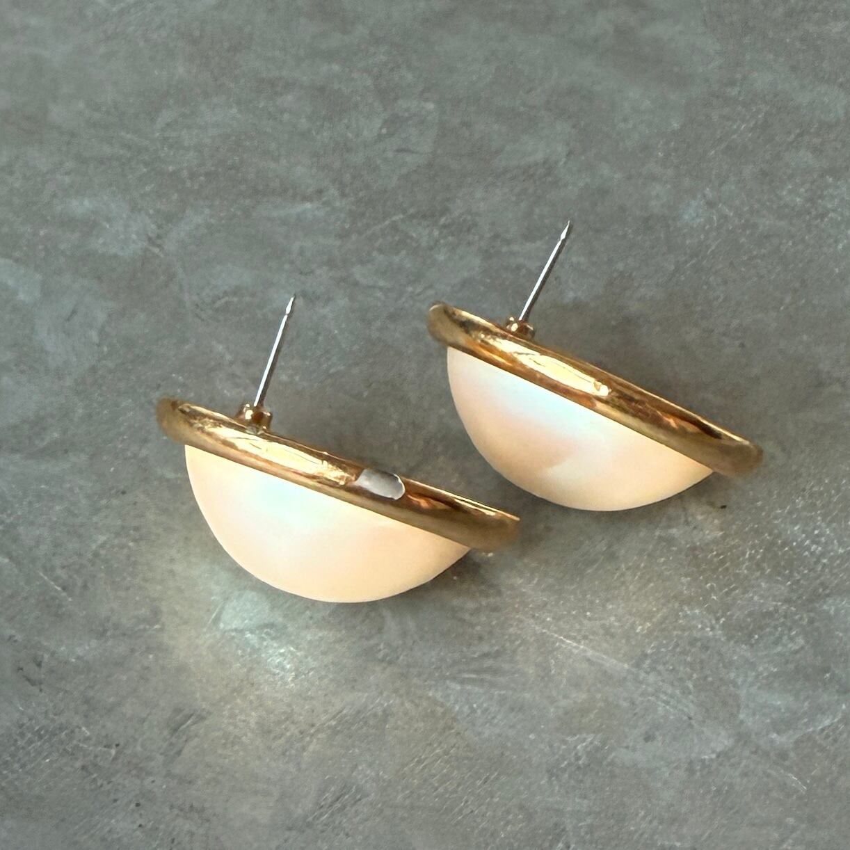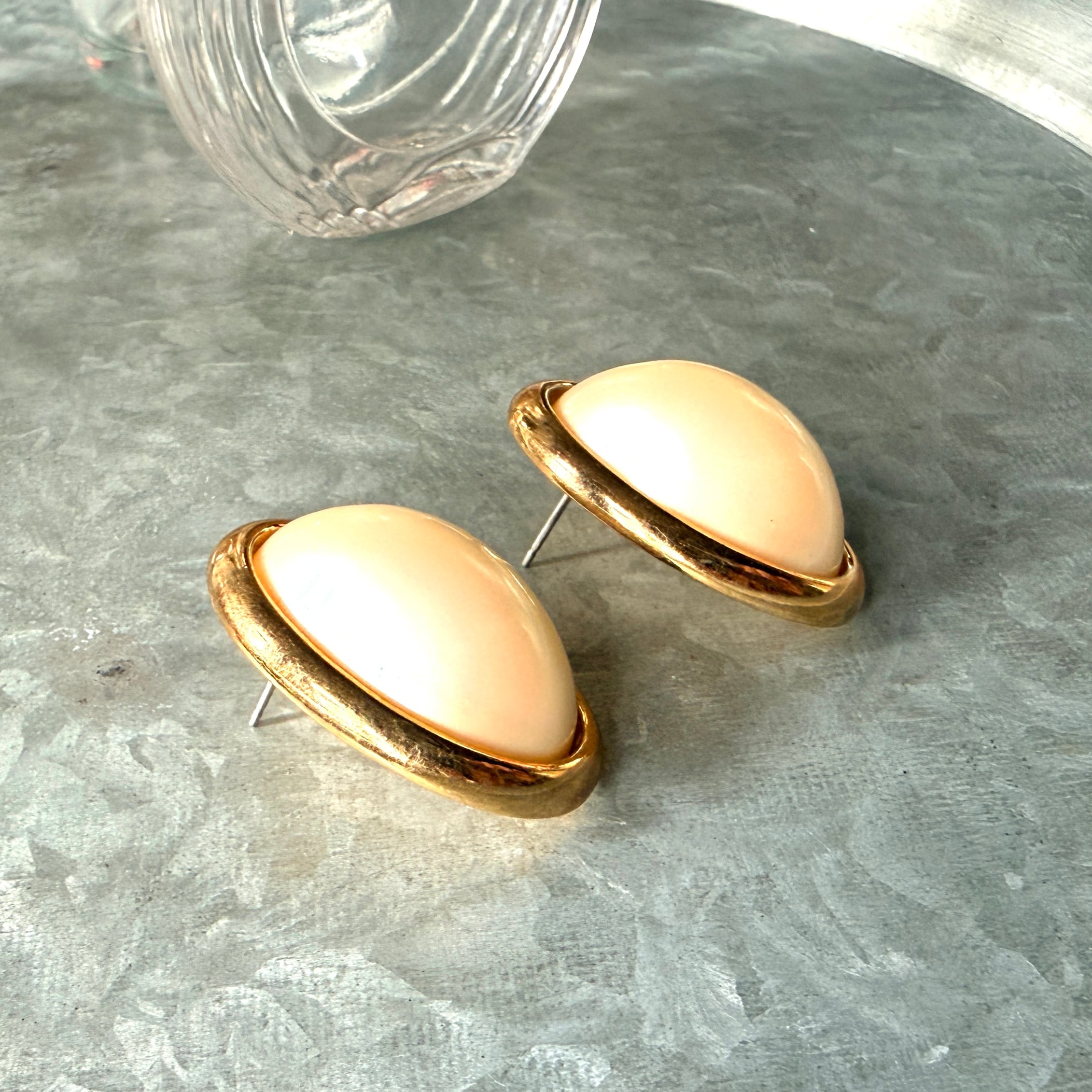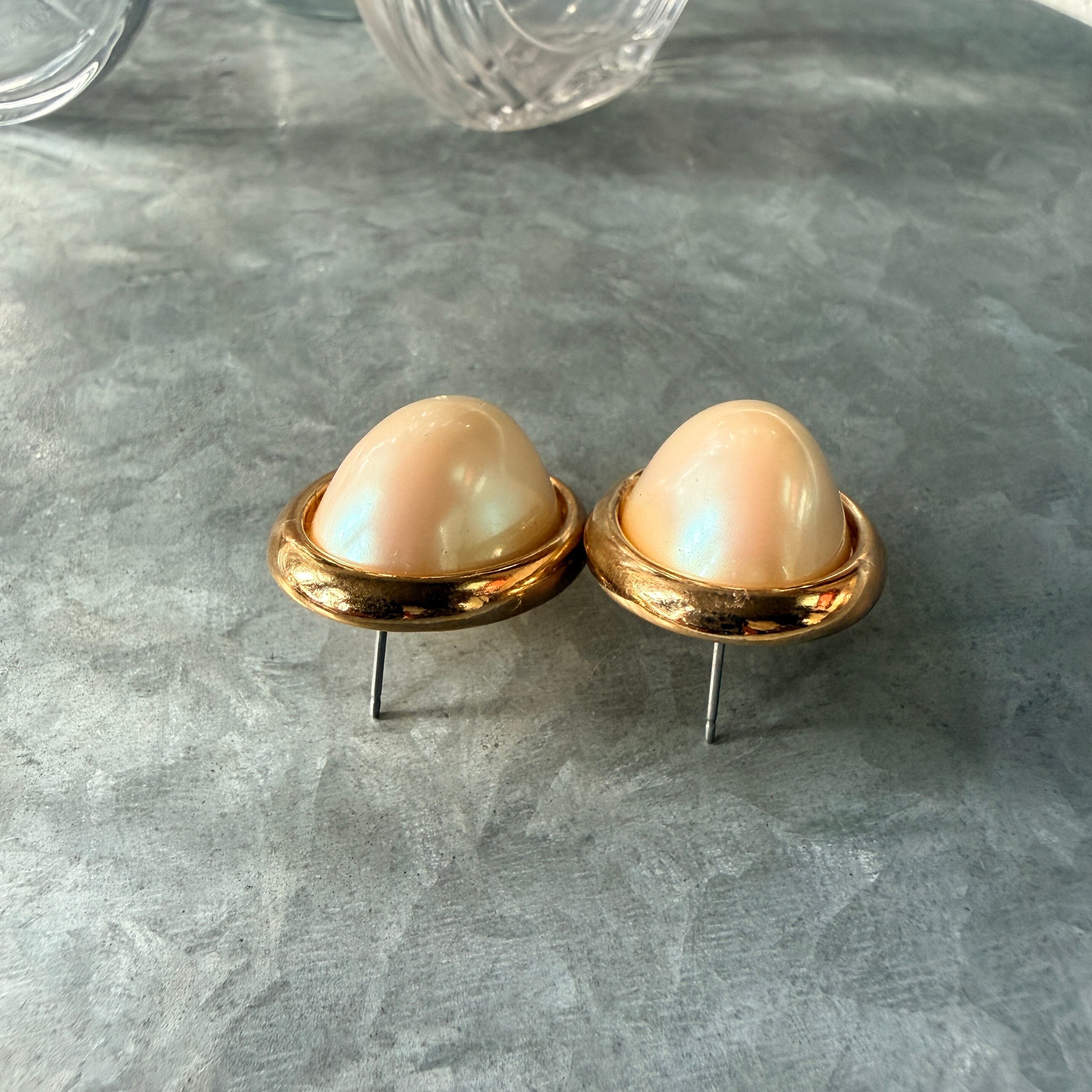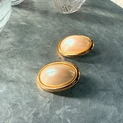 大ぶりの卵形のフェイクパールが印象的なゴールドトーンピアス。