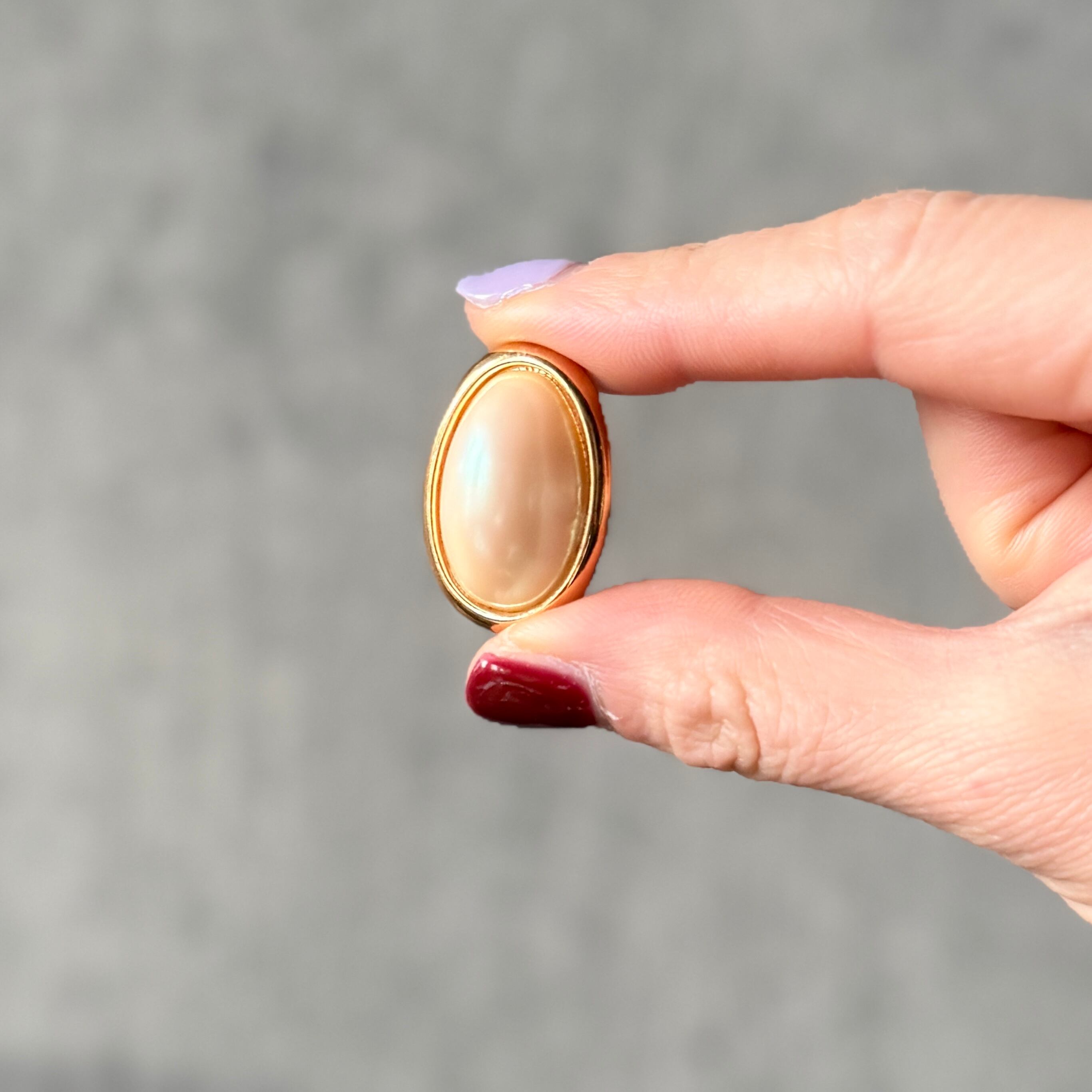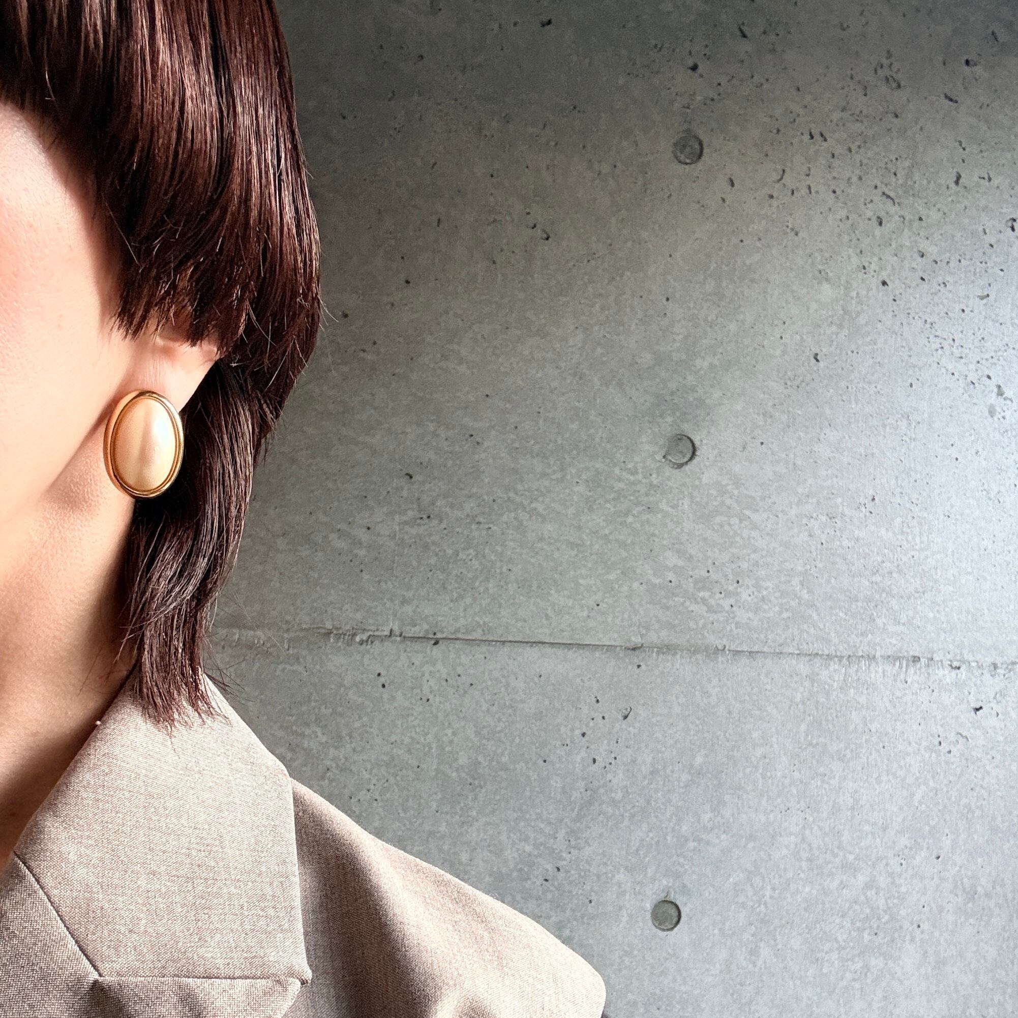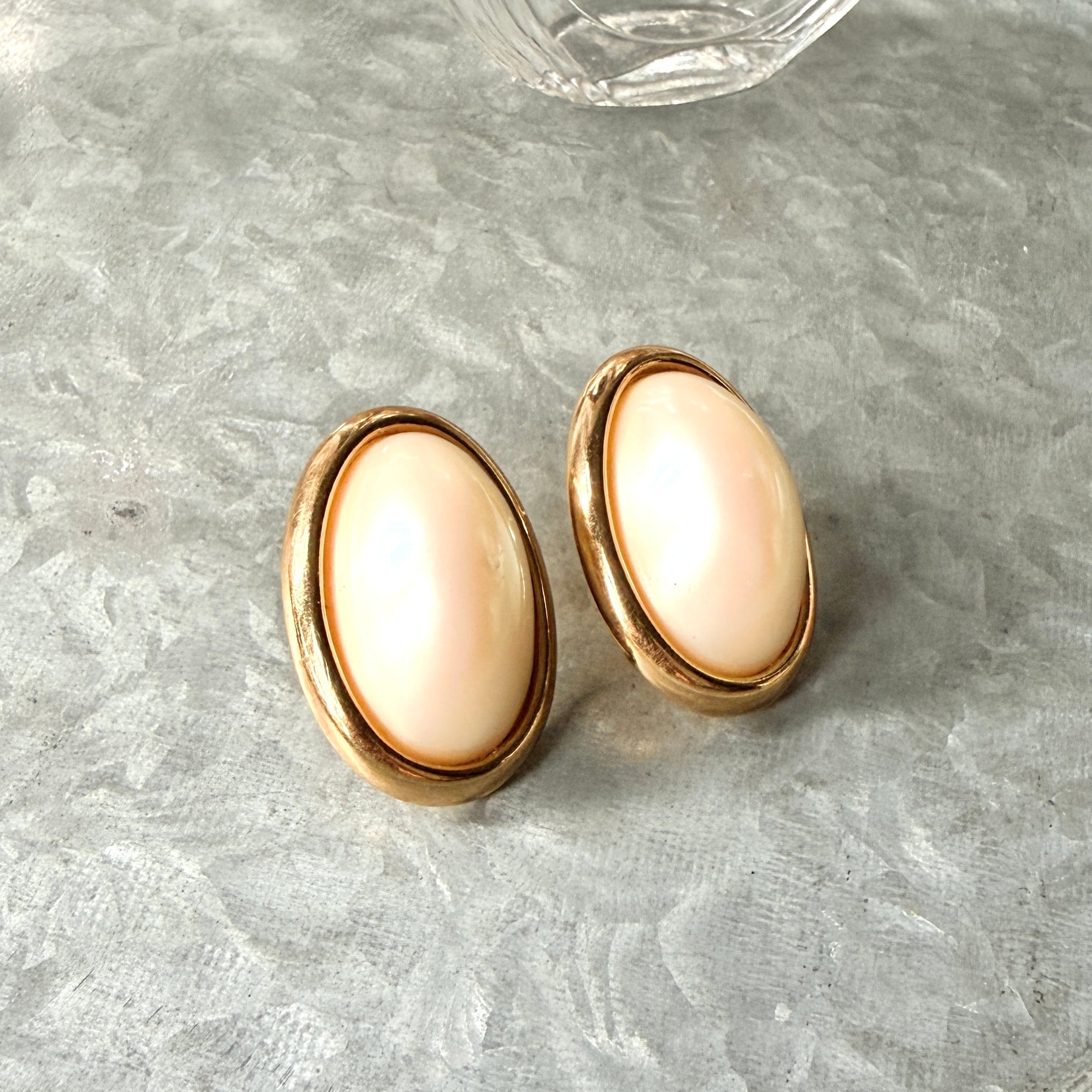 大ぶりの卵形のフェイクパールが印象的なゴールドトーンピアス。