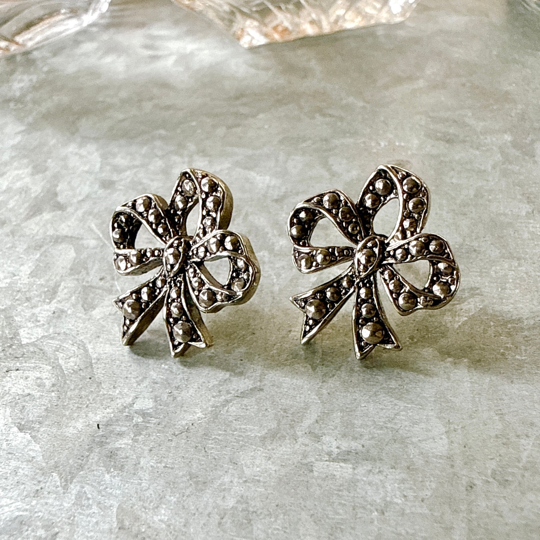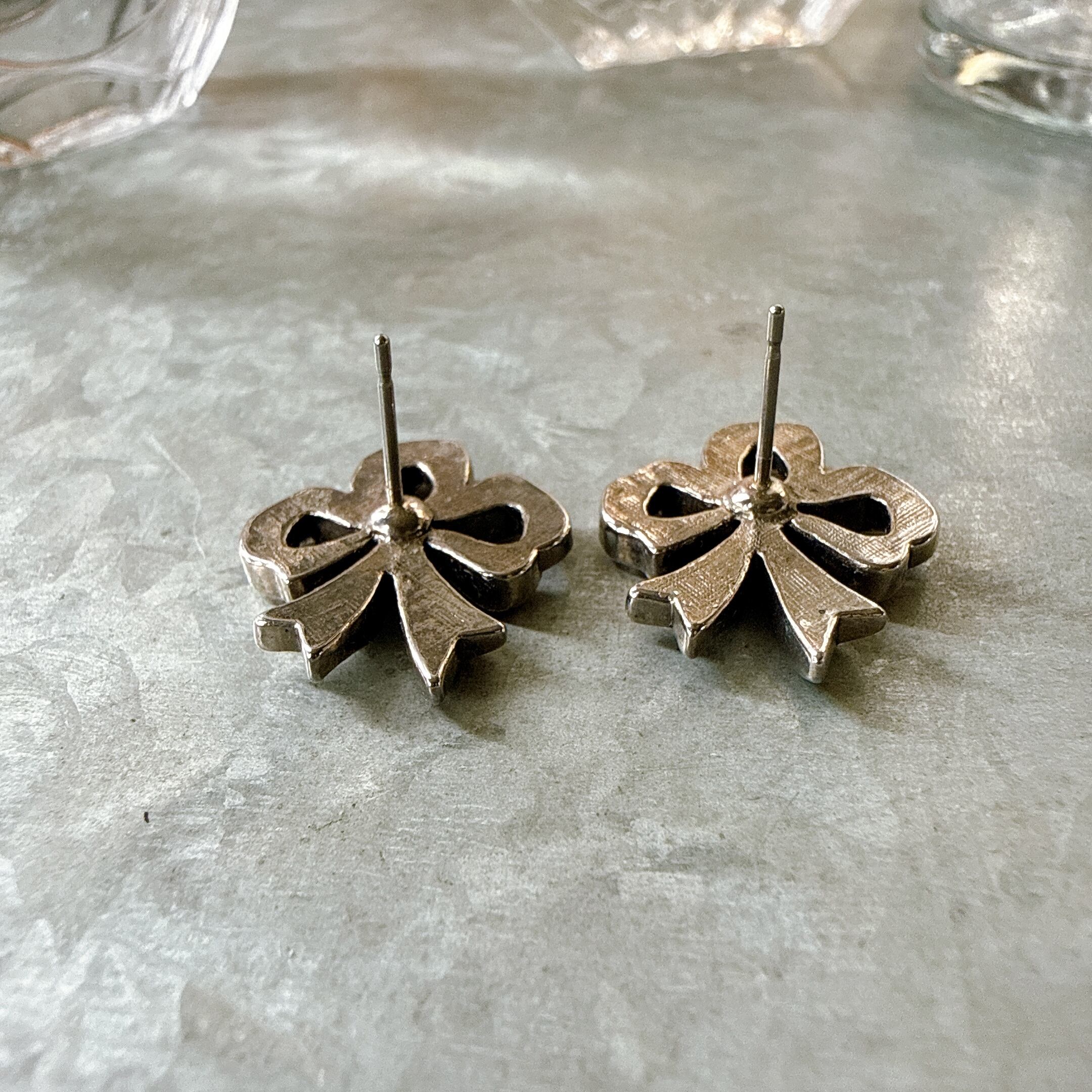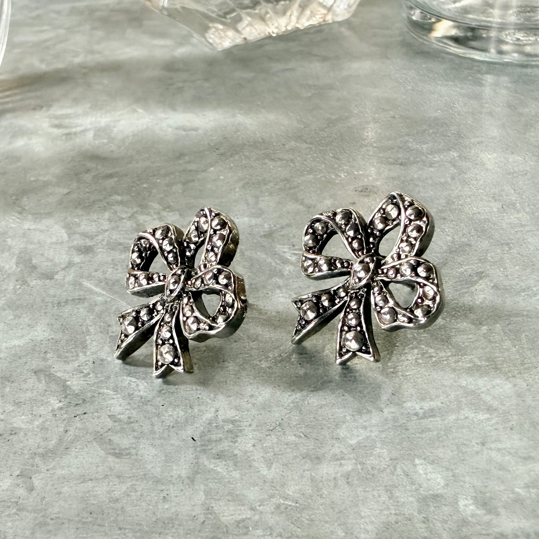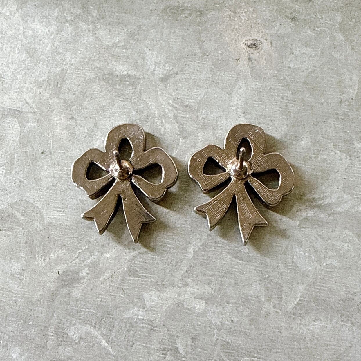 PA461-【 AVON 】エイボン・ヴィンテージピアス 1987 Romantic Bow Faux Marcasite Silver Tone Pierced Earrings | eslup_boutique