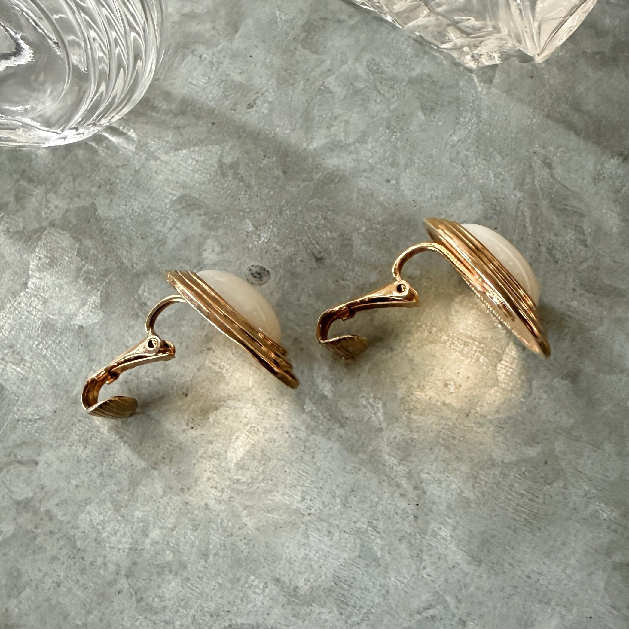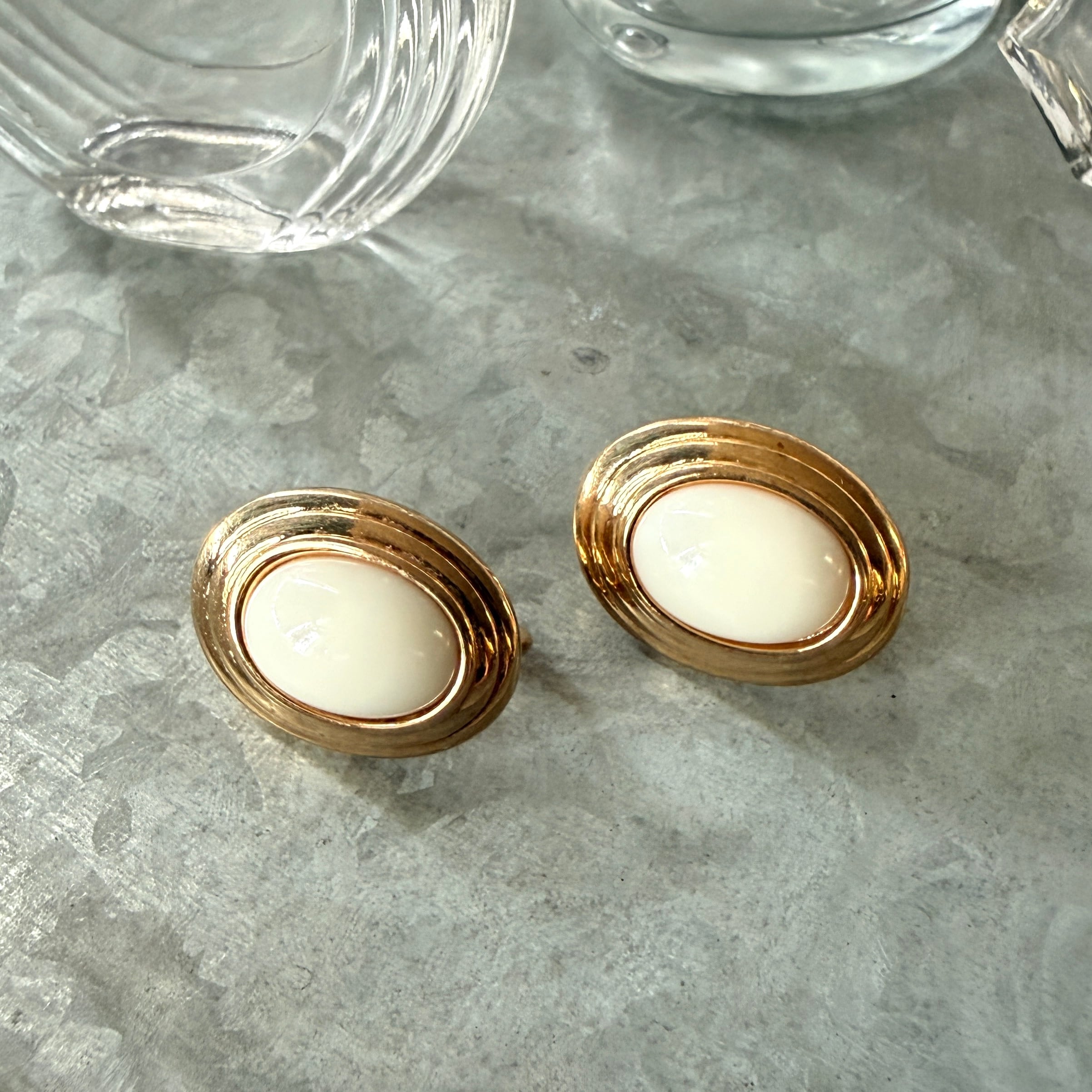 YA230-【 AVON 】エイボン・ヴィンテージイヤリング 1980's White Cabochon Gold Tone Oval Earrings