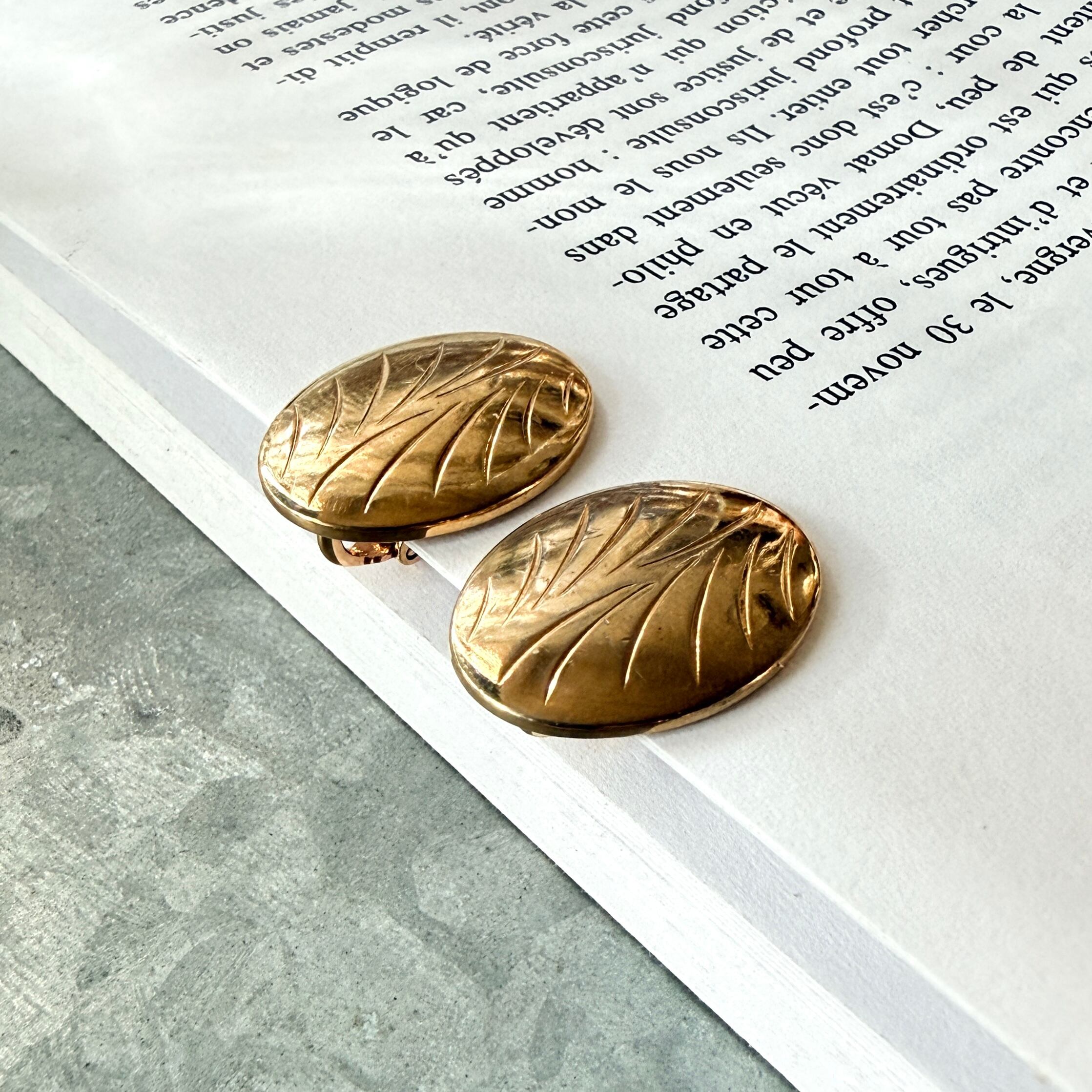 YS102-【 Sarah Coventry 】サラコベントリー・ヴィンテージイヤリング 1960's Gold Tone Oval Leaf Clip-On Earrings