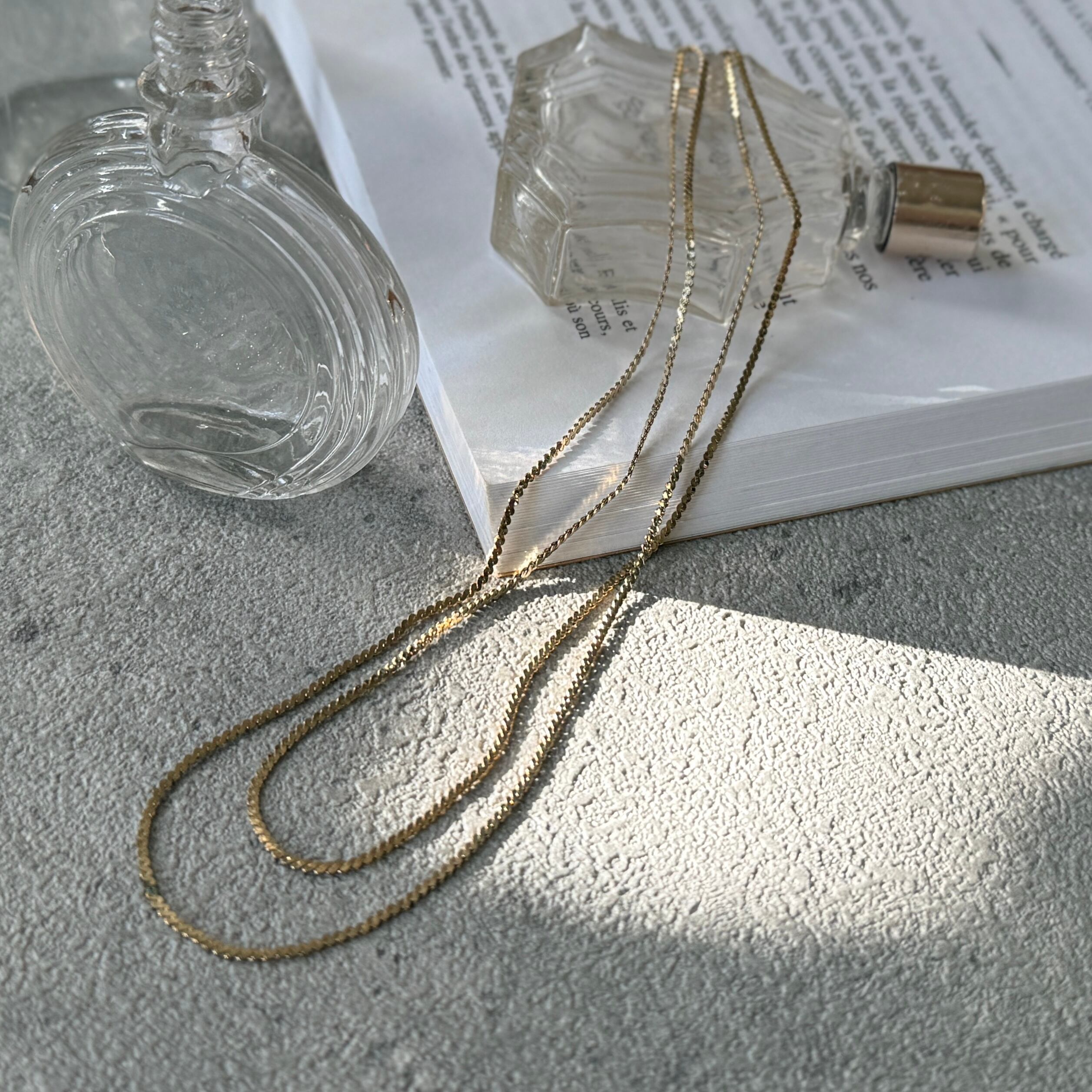 シンプルでスリムなシルエットのロングチェーンで、上品で洗練された雰囲気を纏わせます。