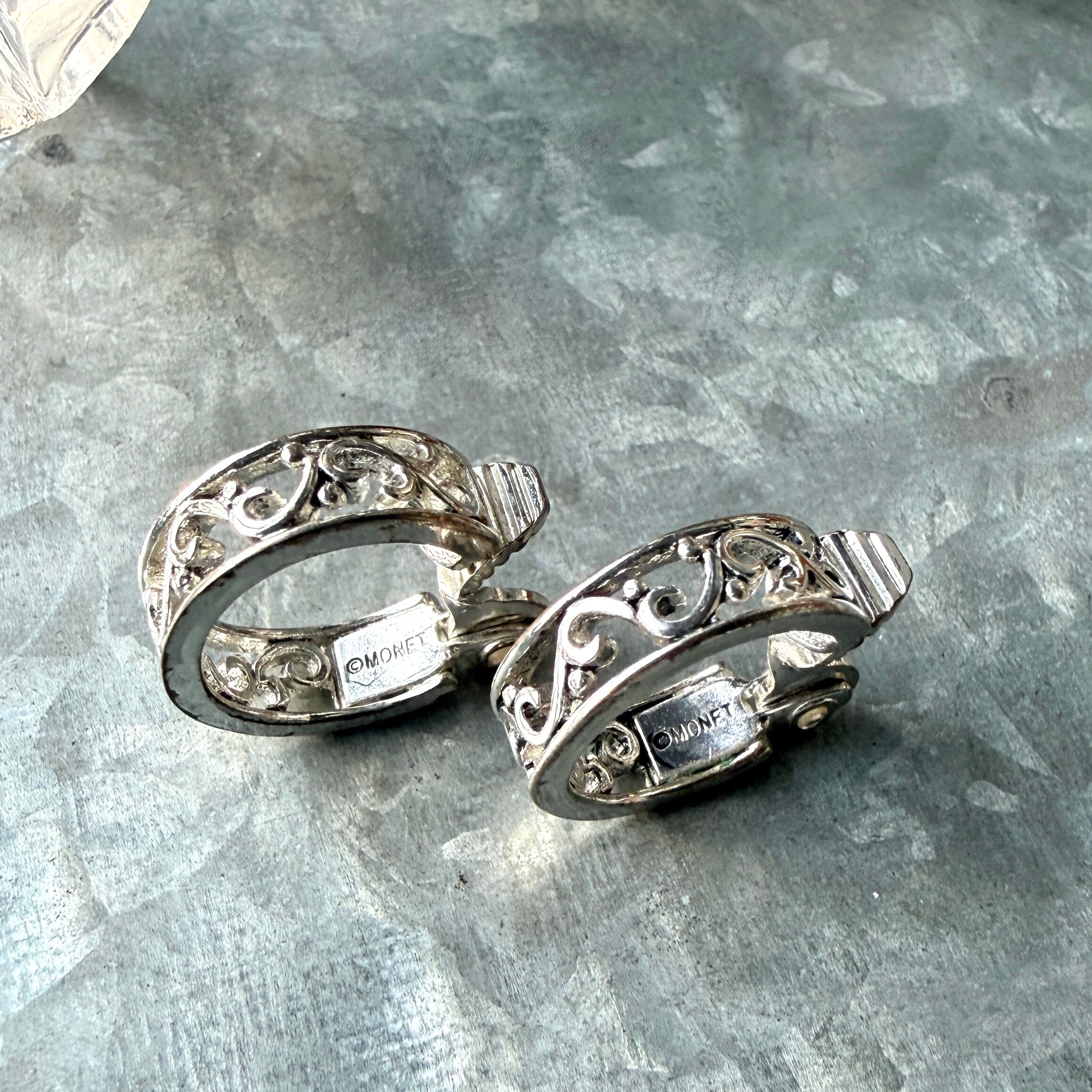 YM195-【 Monet 】モネ・ヴィンテージイヤリング 1960〜70's Silver Tone Openwork Arabesque Hoop Earrings