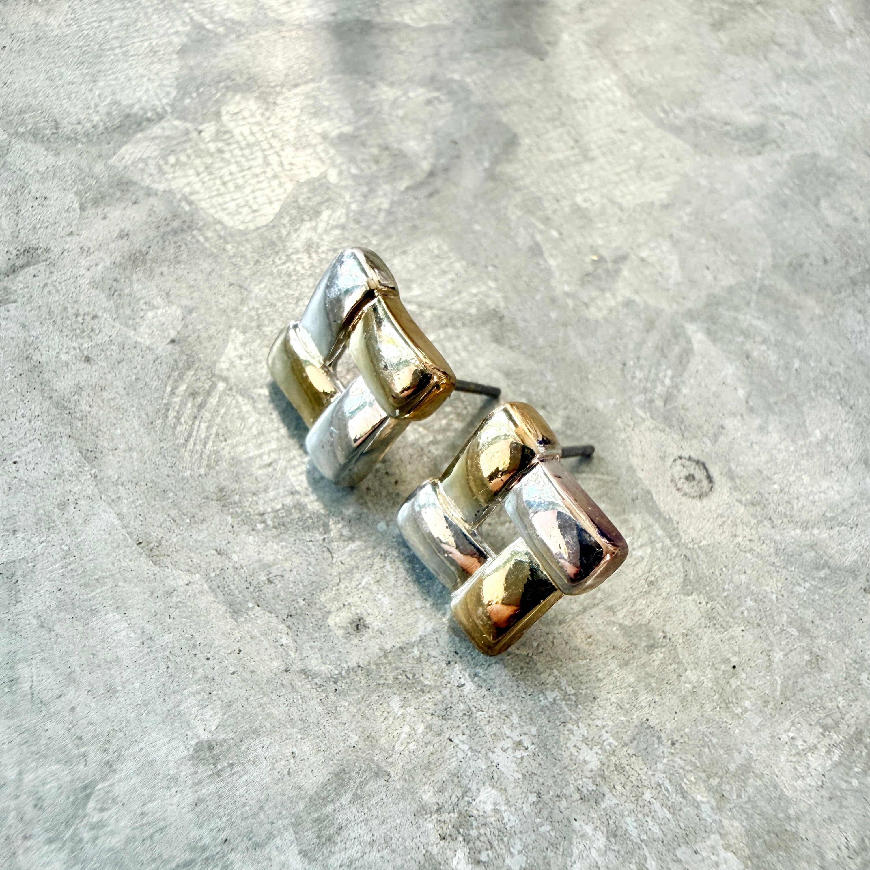 PN39-【 Napier 】ネイピア・ヴィンテージピアス 1980〜90's Silver and Gold Tone Basket Wave Modern Geometric Pierced Earring