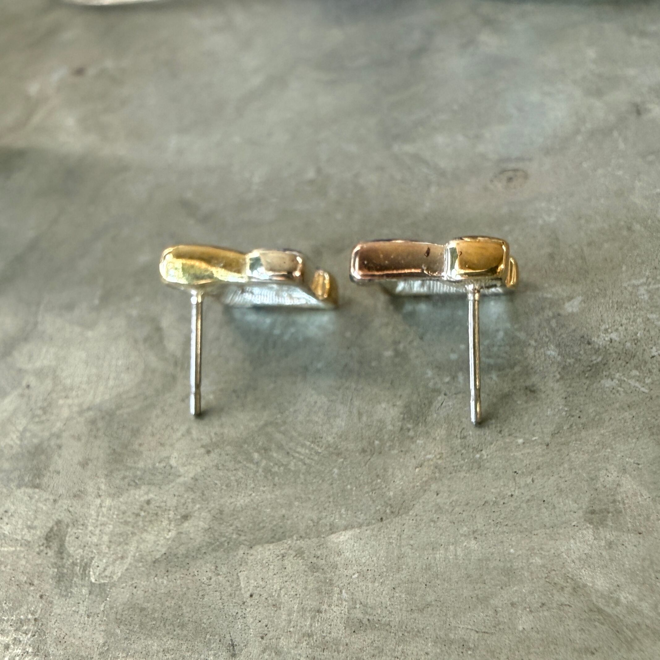 シルバートーンとゴールドトーンの2トーンカラーバスケットウェーブピアス。