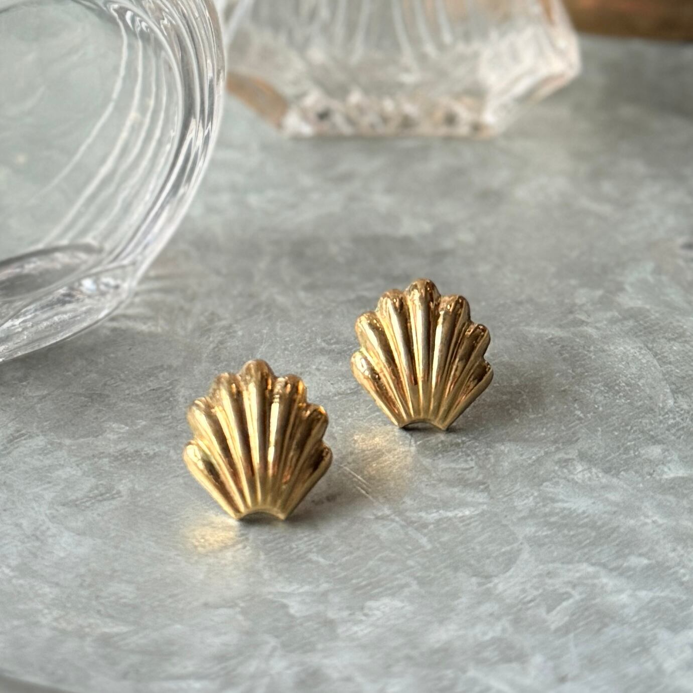 ゴールドトーンのシーシェルモチーフピアス。