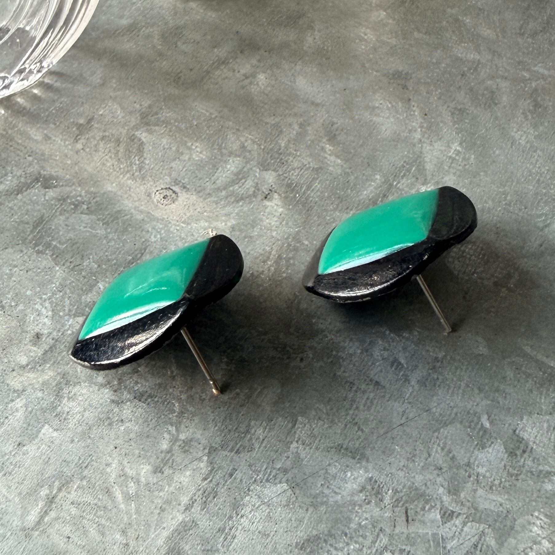 P748-ヴィンテージピアス U.S.A. 1980〜90's Black Green Enamel Paint Geometric Pierced Earrings
