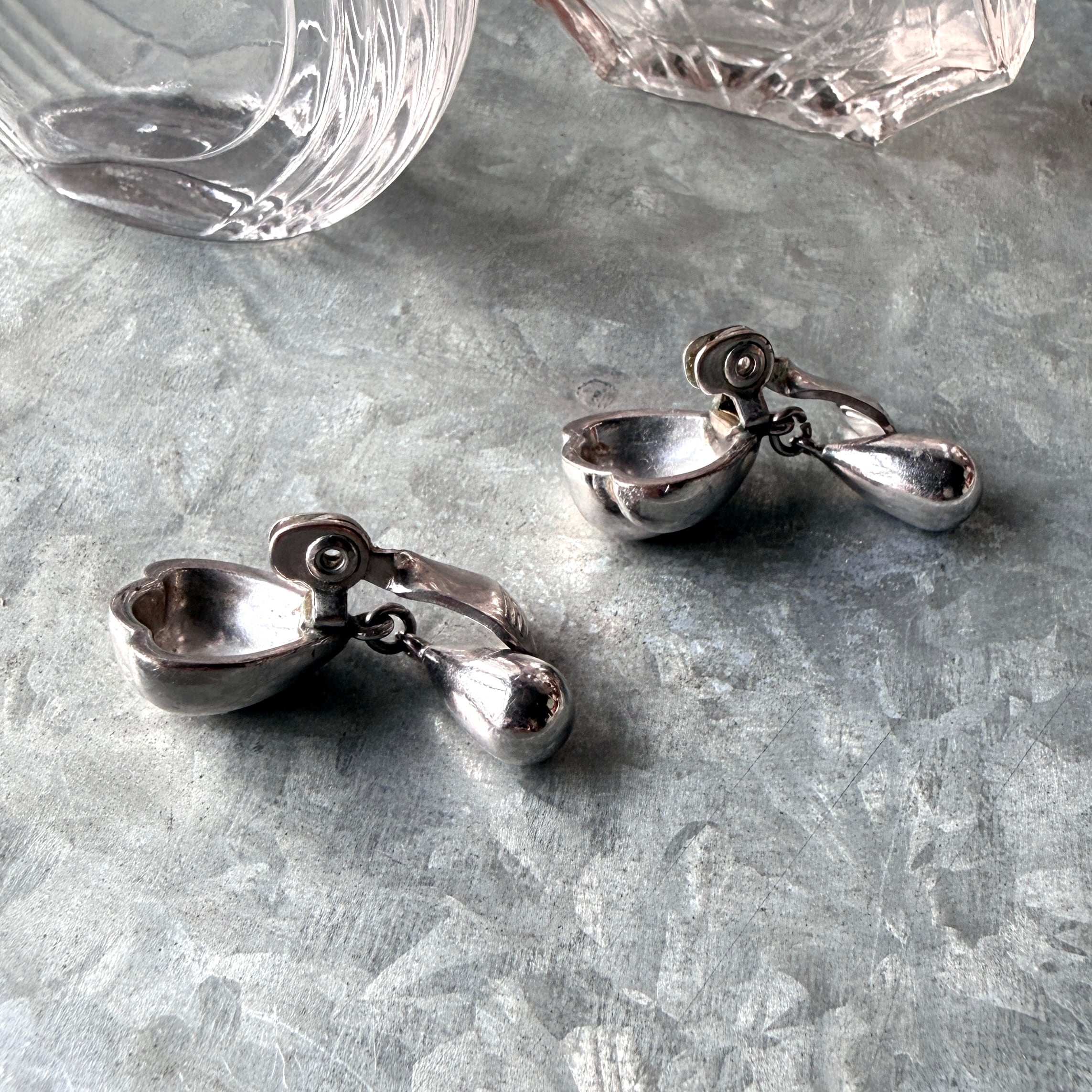YM197-【 Monet 】モネ・ヴィンテージイヤリング 1960〜70's PAT.D Silver Tone Puff Heart Drop Clip Earrings