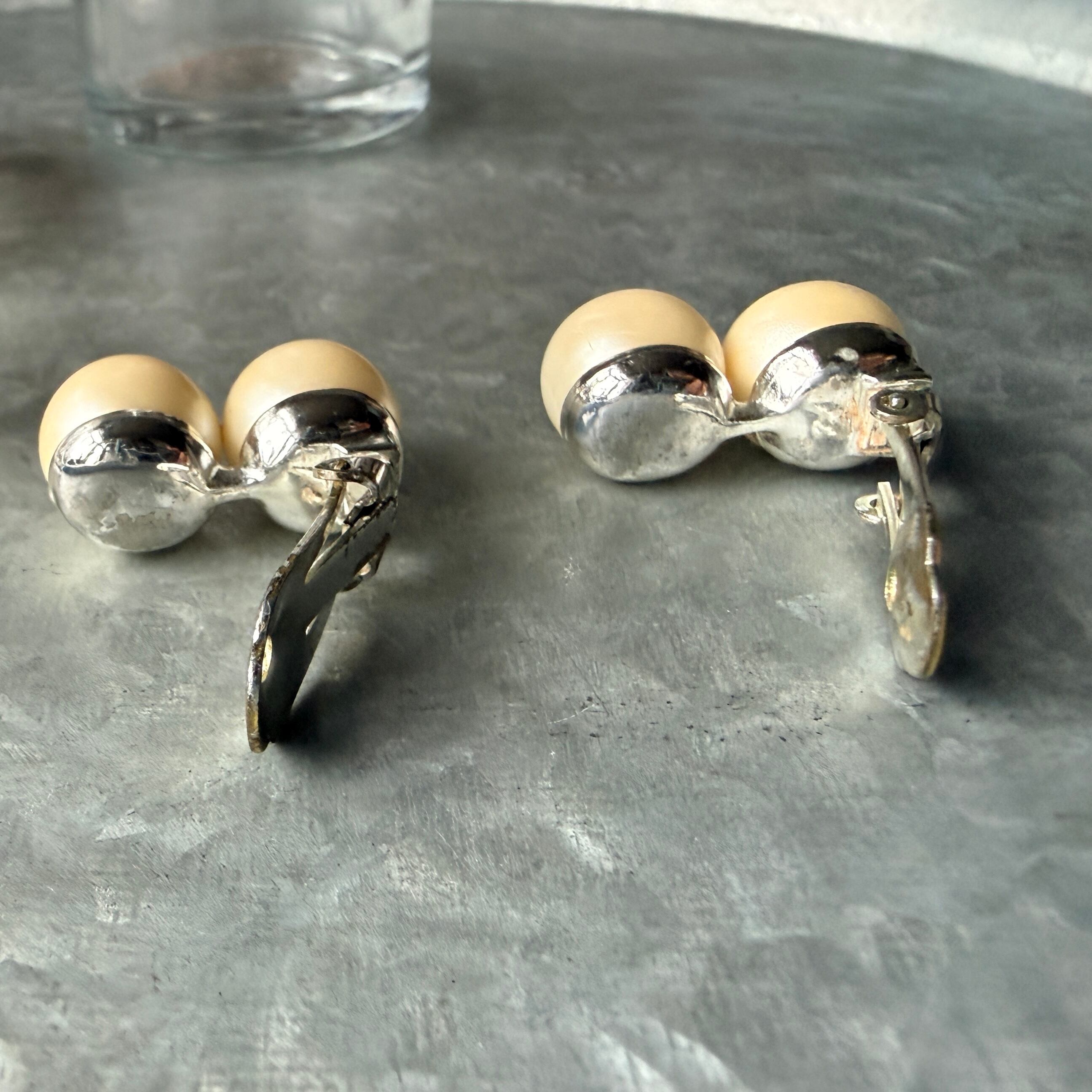 YMA5-【 MARVELLA 】マーヴェラ・ヴィンテージイヤリング 1950〜60's Double Faux Pearl Silver Tone Clip Earrings