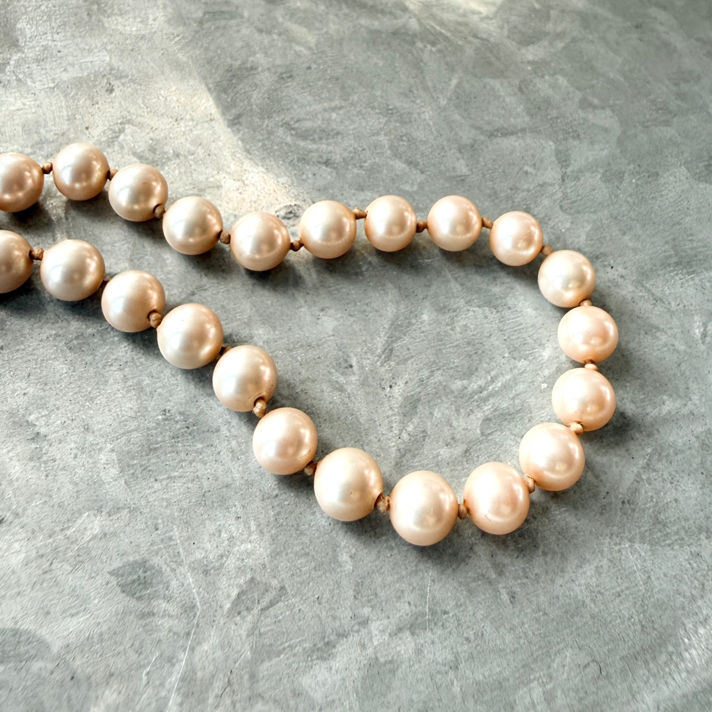 パールとパールの間に結び目のあるノット仕上げで、これは万が一糸が切れてもパールがバラバラになりにくく、MARVELLAの高級ラインで使用される技法です。