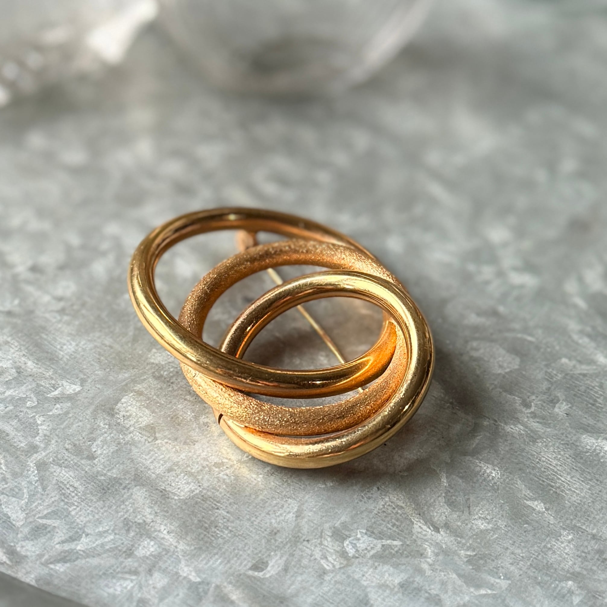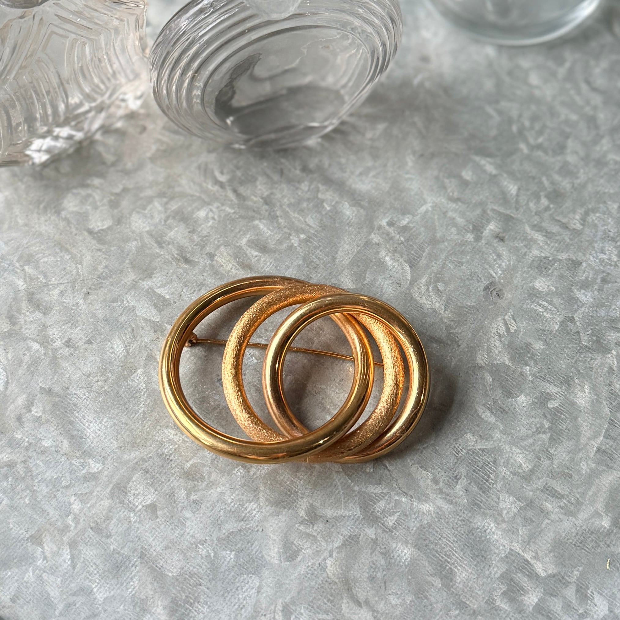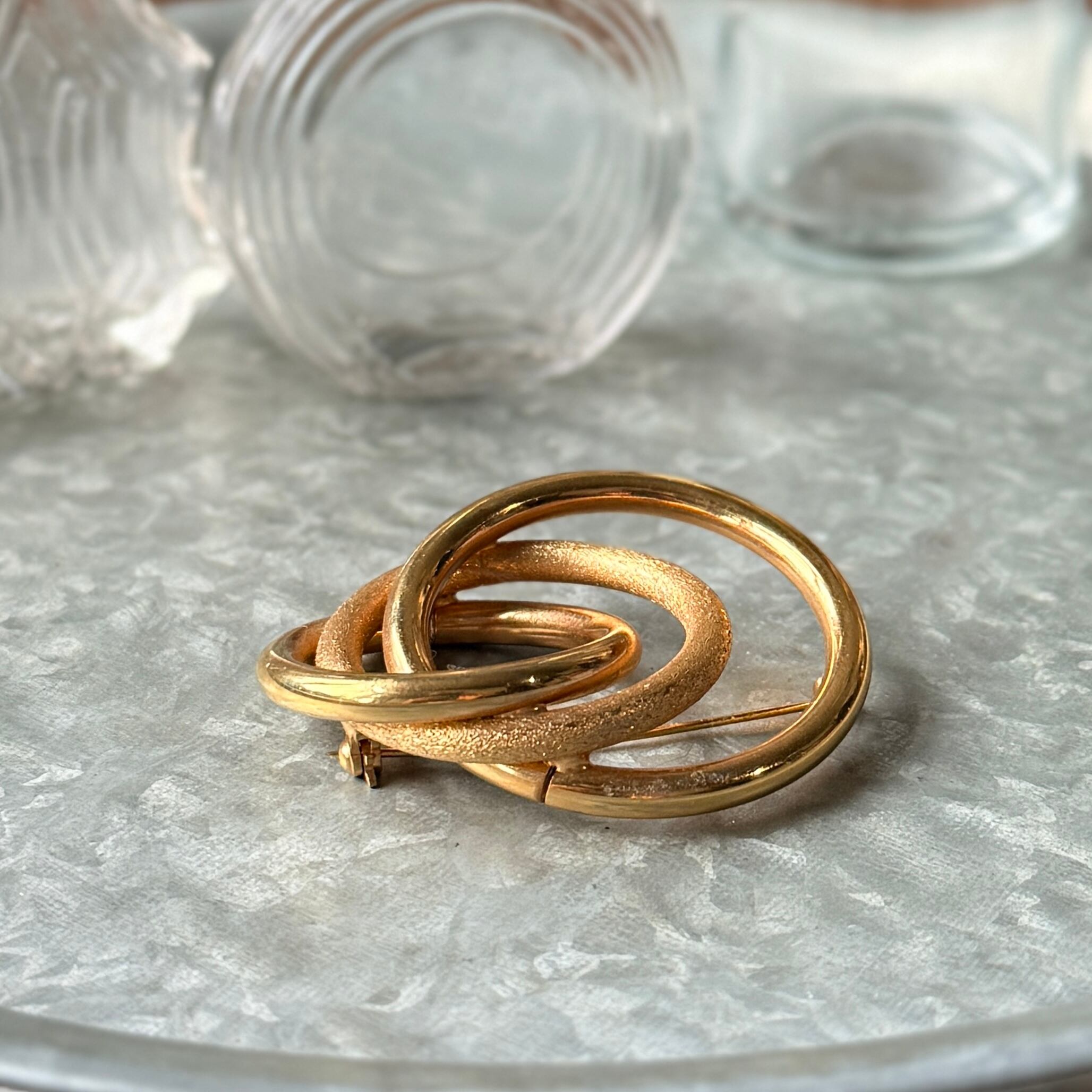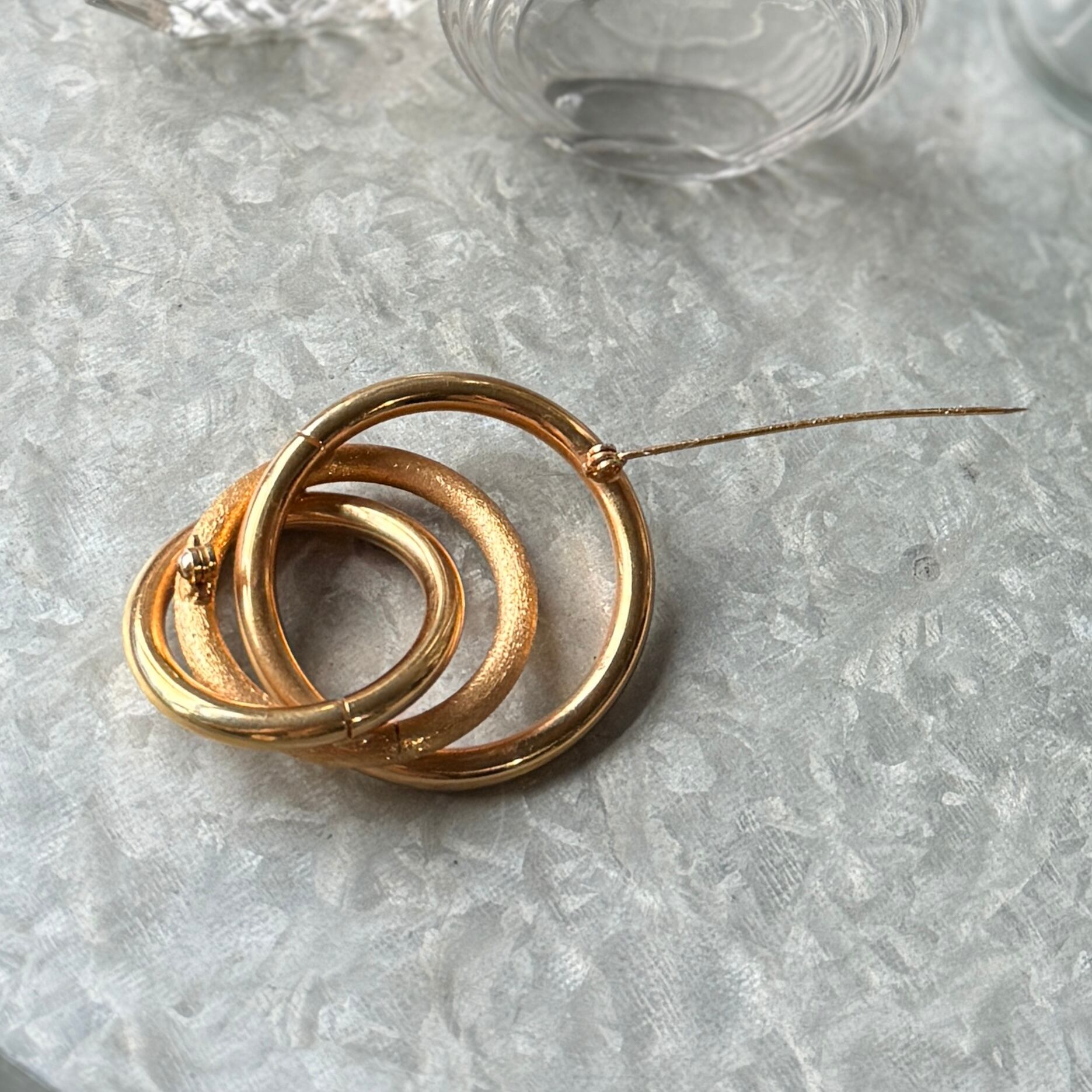 SC150-ヴィンテージブローチ U.S.A. 1950-60's Gold Tone Interlocking Circles Brooch