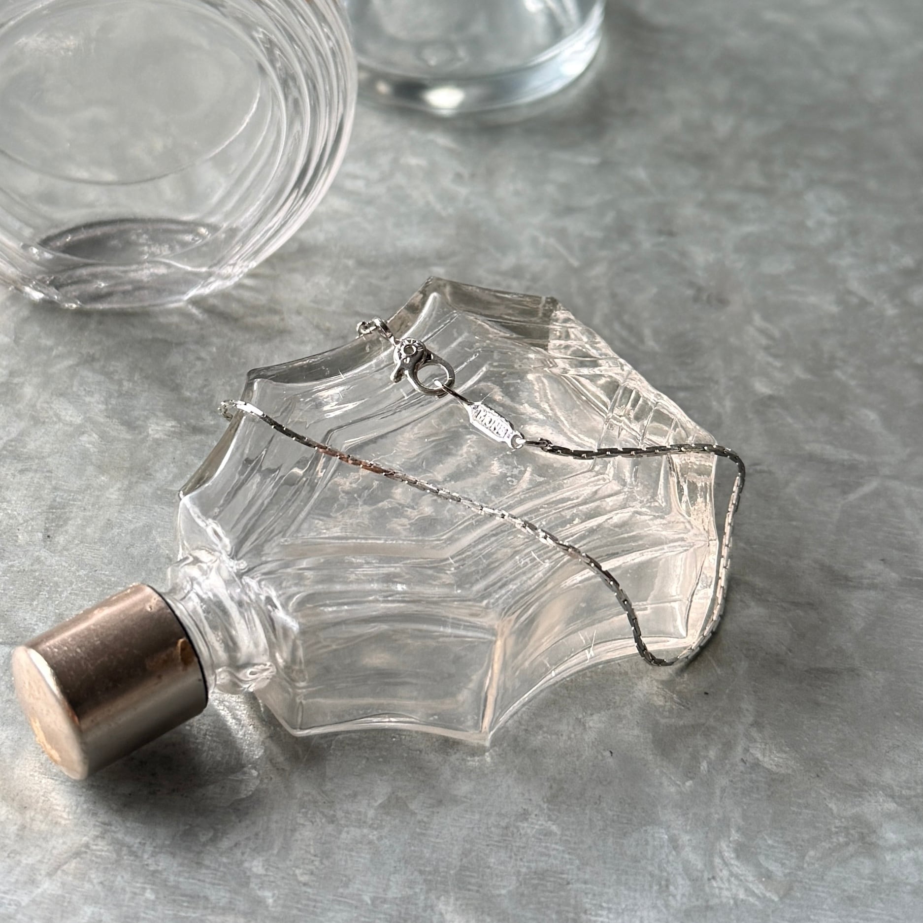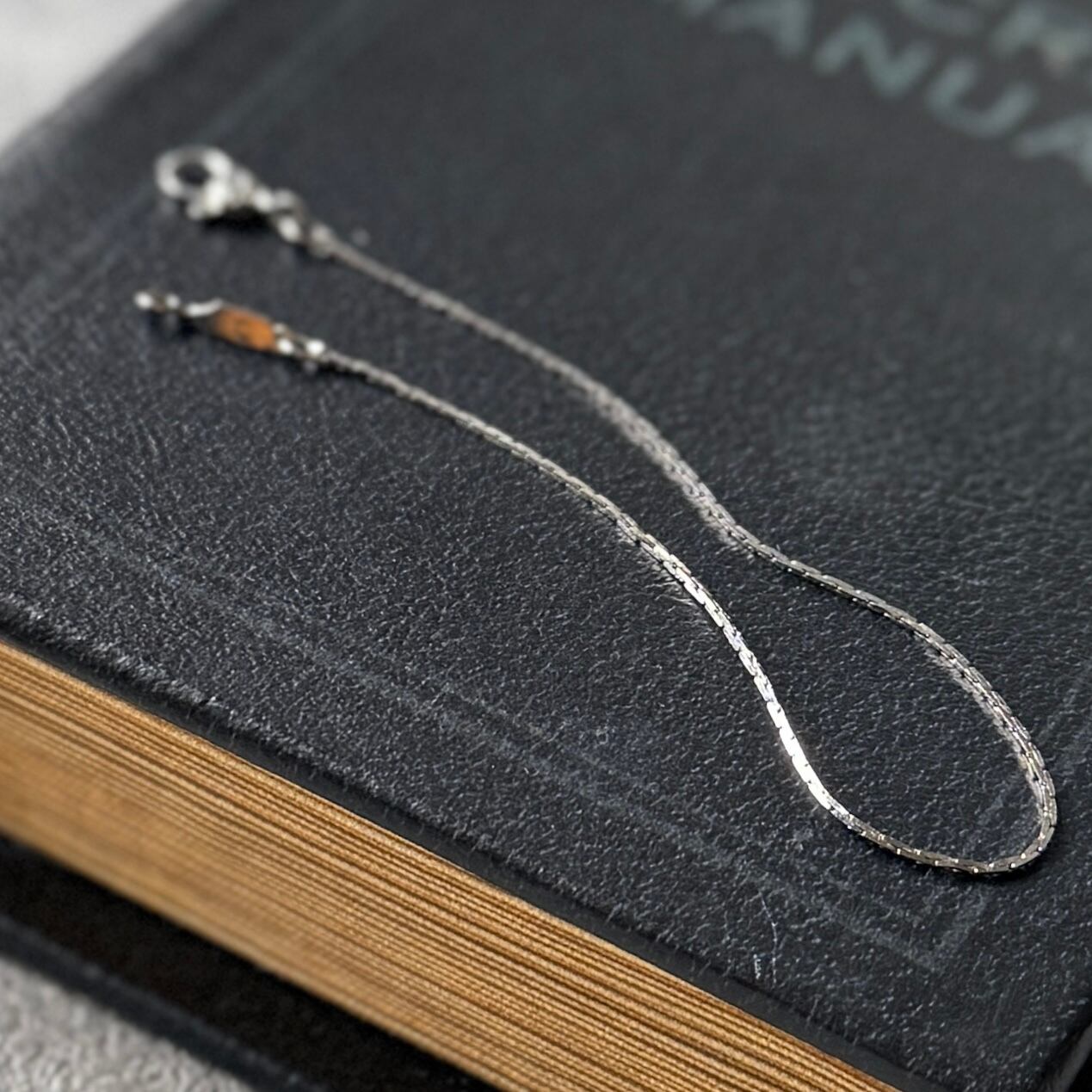 シルバートーンの華奢なフラットチェーンがモダンで洗練されたブレスレット。