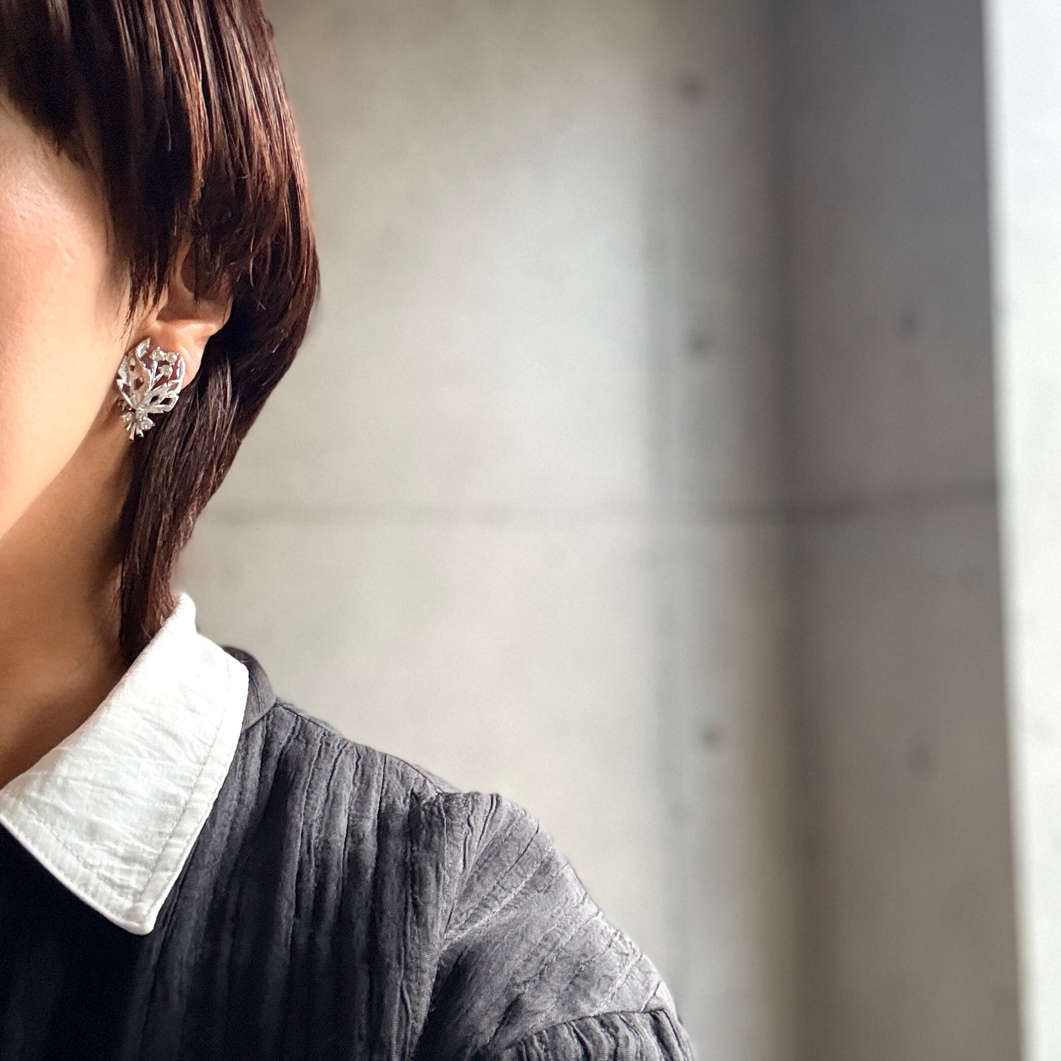 シルバートーンのブーケモチーフイヤリング。