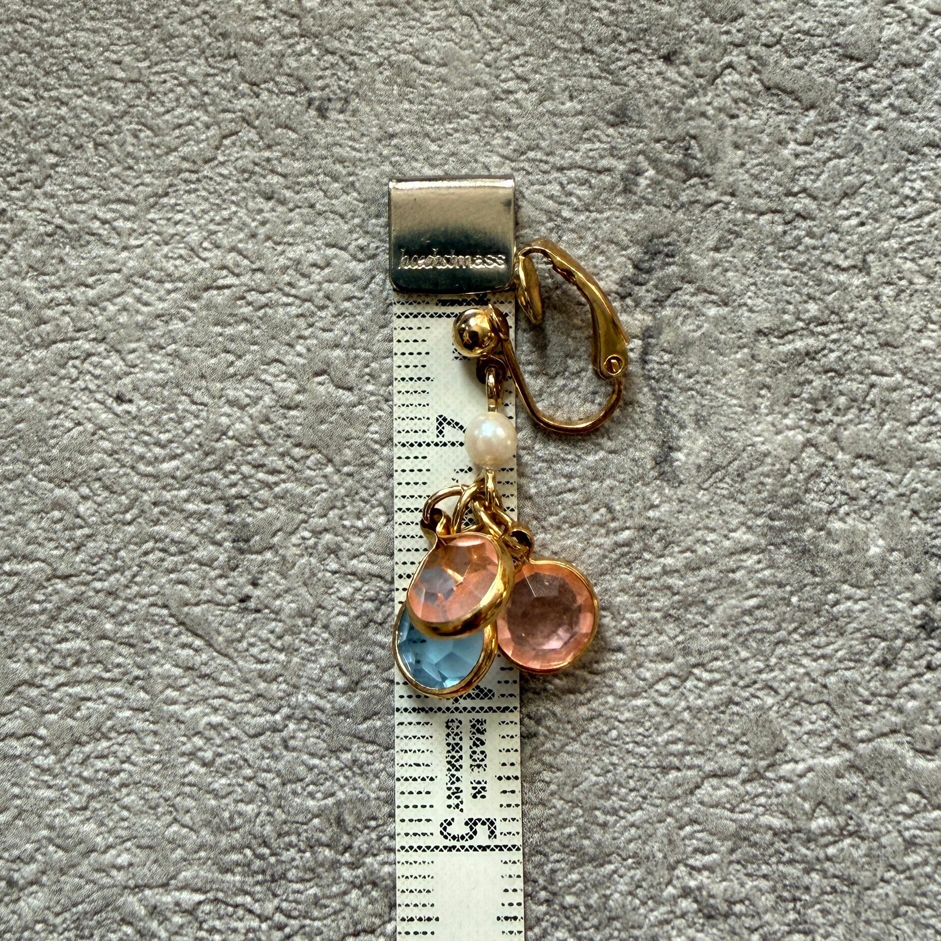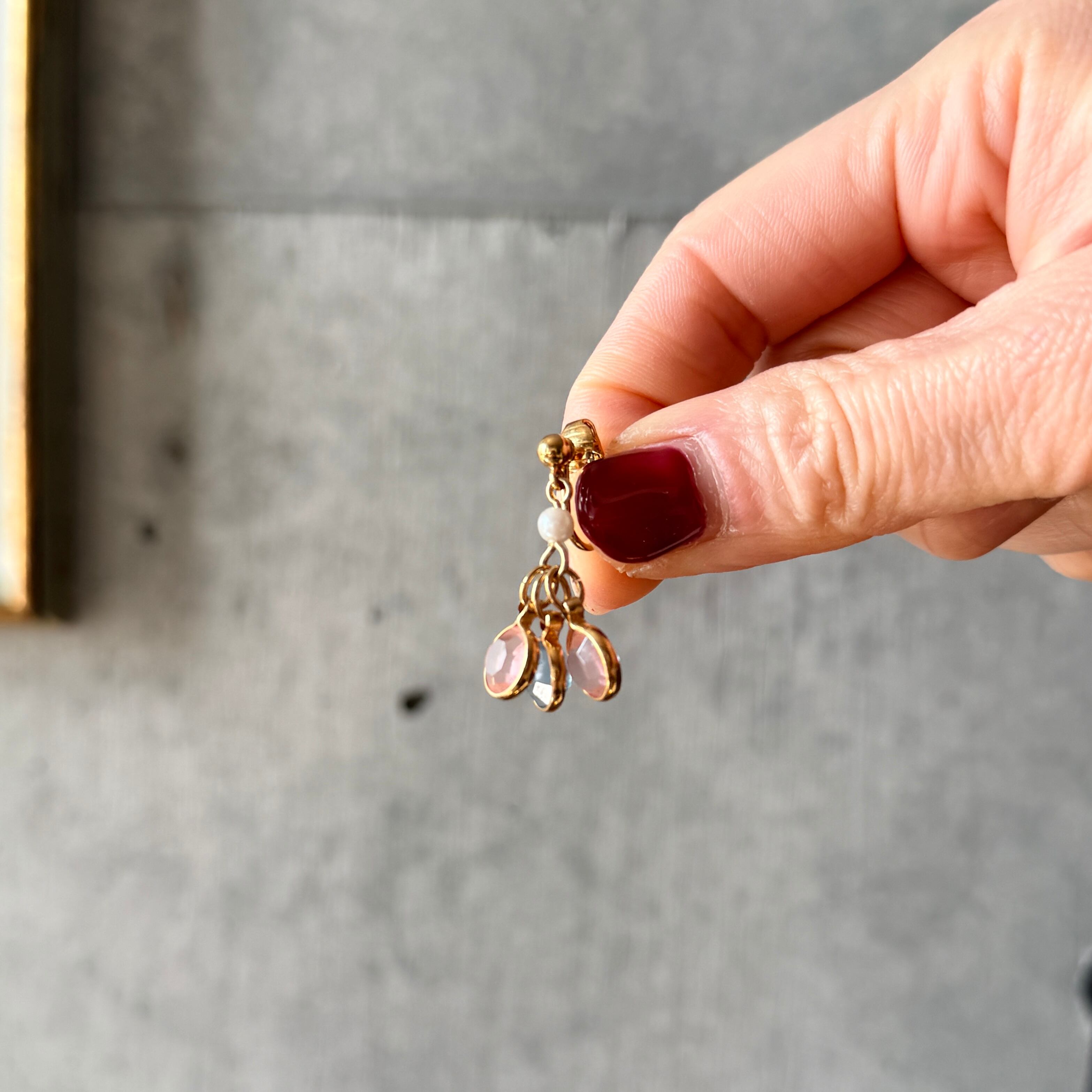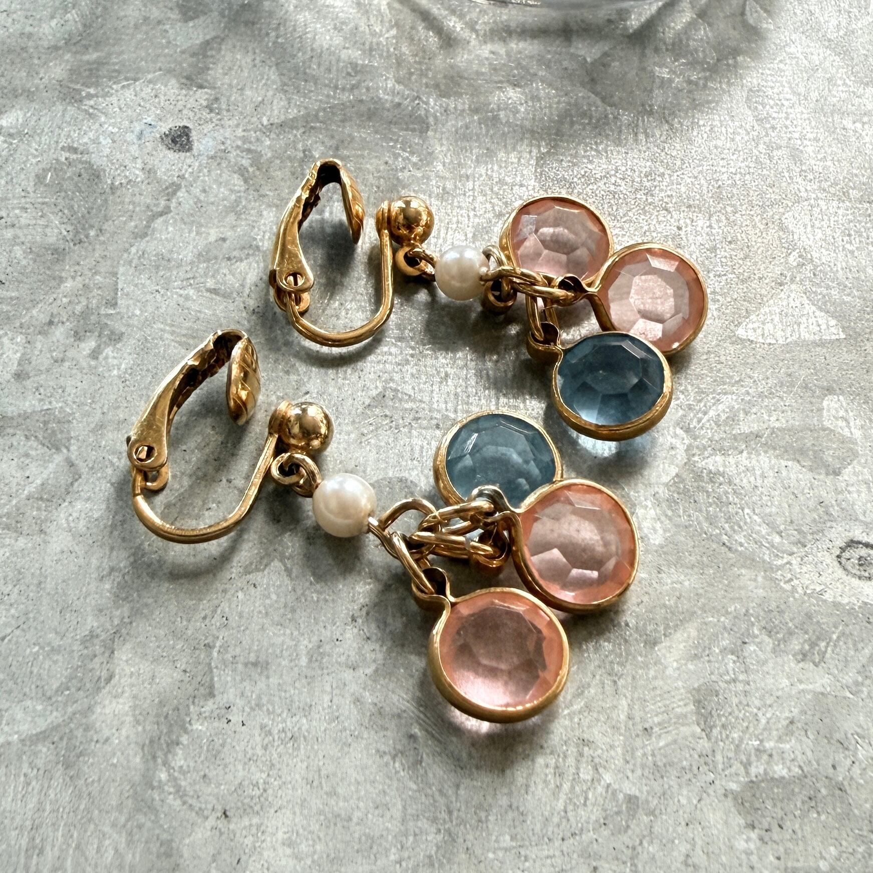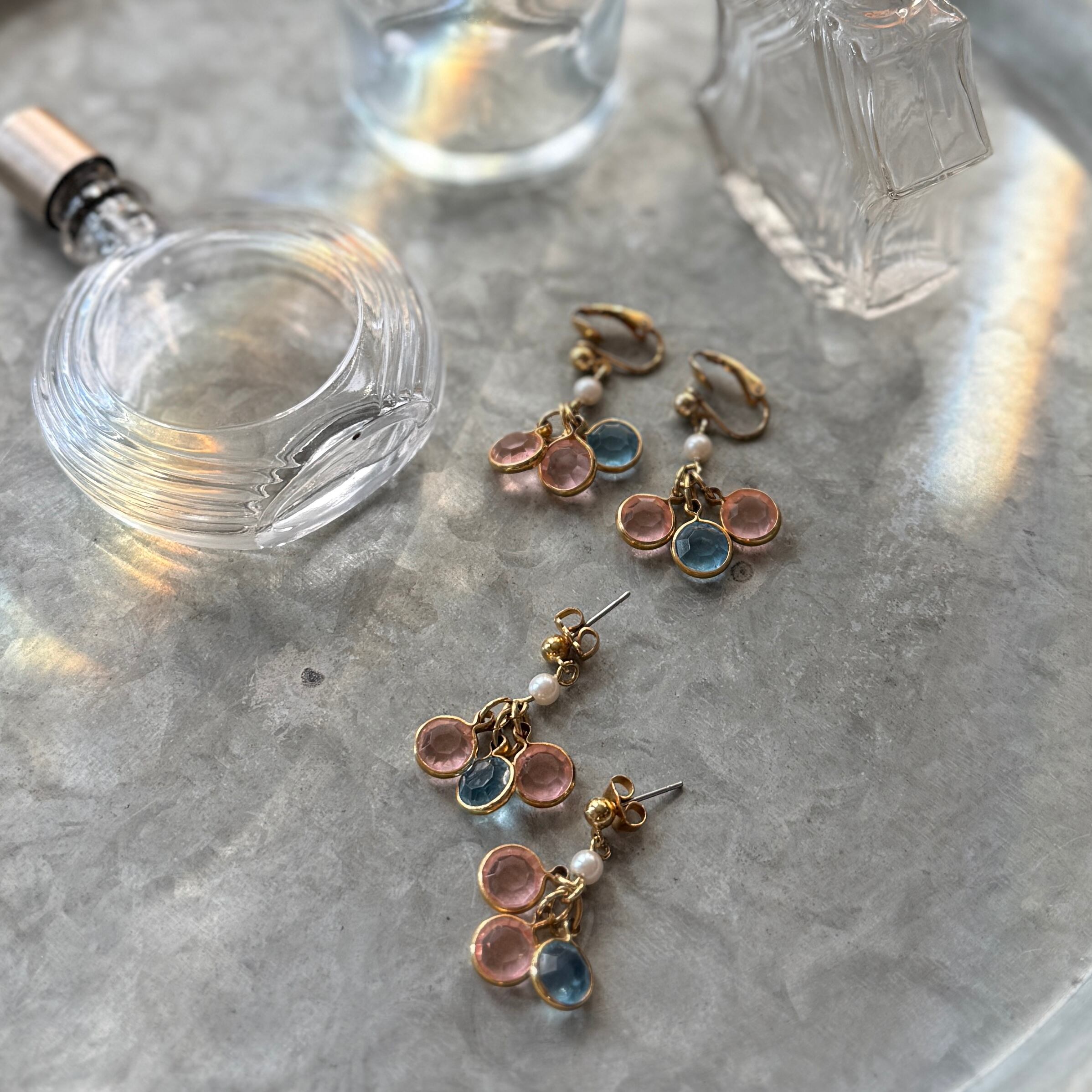 ピンクとライトブルーのクリスタルカットグラスが軽やかなゴールドトーンハンギングイヤリング。