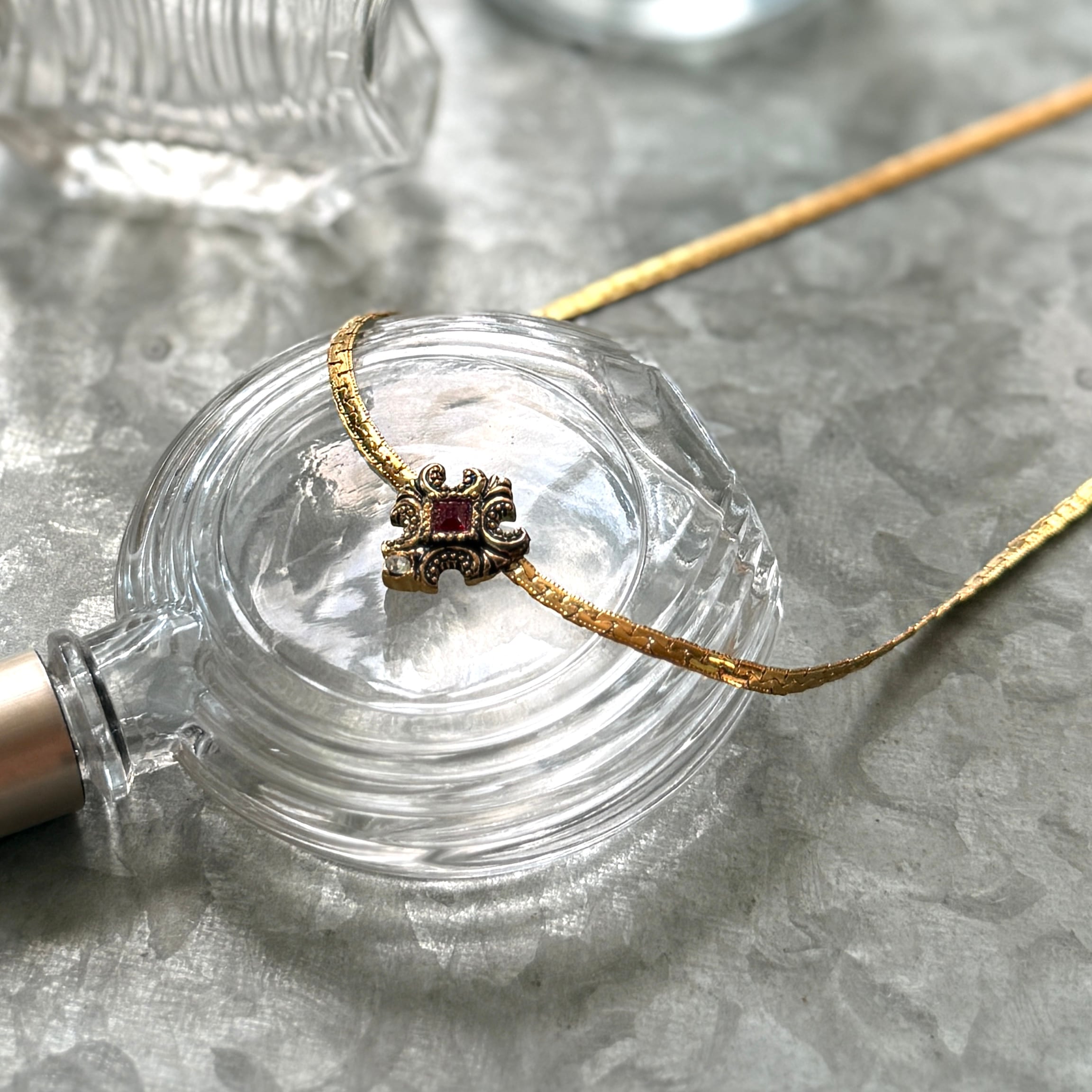 深みのあるルビーレッドのラインストーンをアクセントに、気品あふれる佇まい。