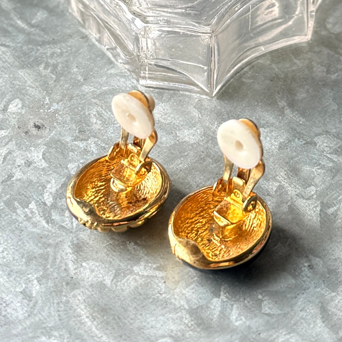 Y1231-ヴィンテージイヤリング U.S.A. 1980-90's Gold Tone Black Enamel Paint Oval Rhinestones Earrings