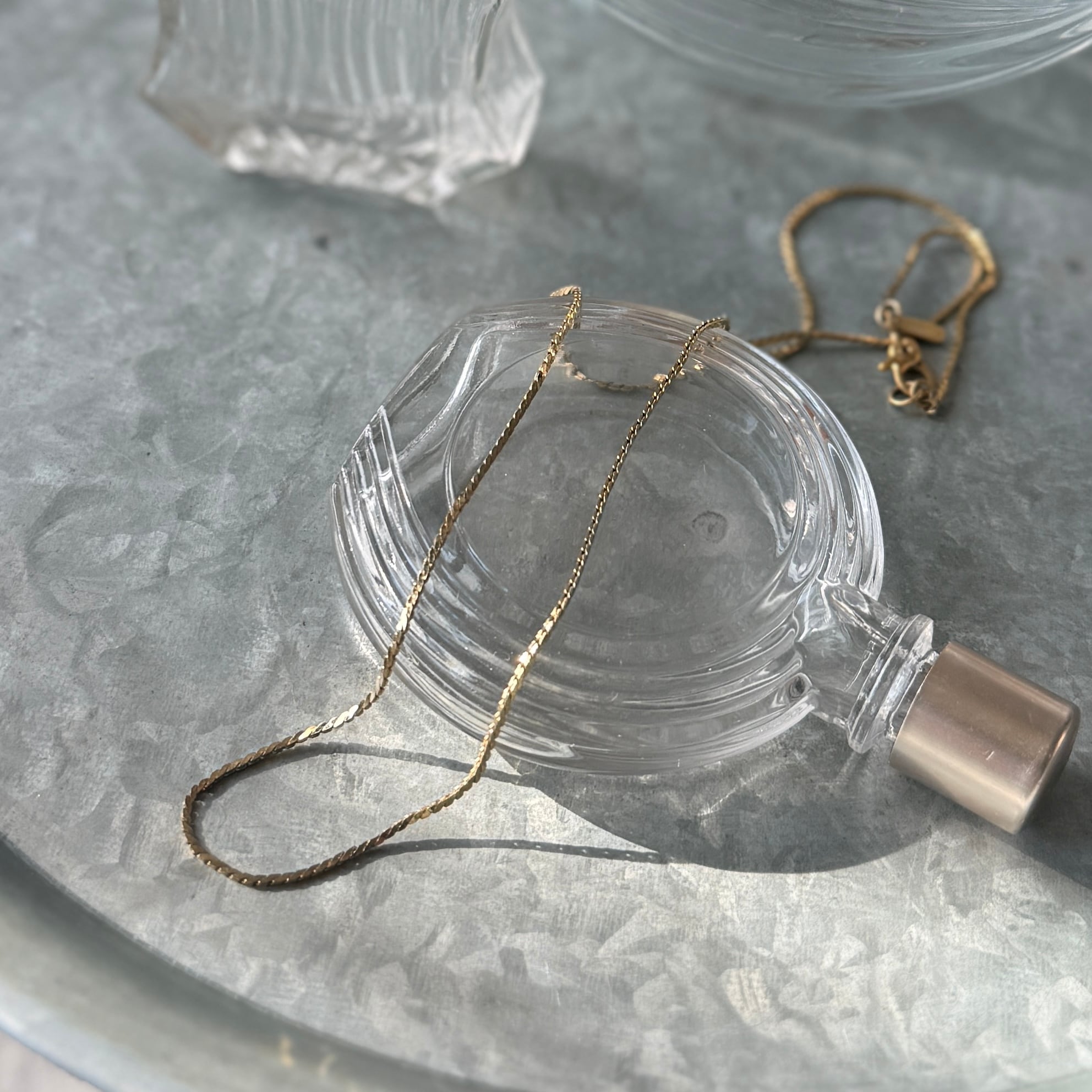 シンプルなゴールドチェーンながらに、しなやかな質感と、現代のメッキとは一線を画す深い輝きを放ちます。