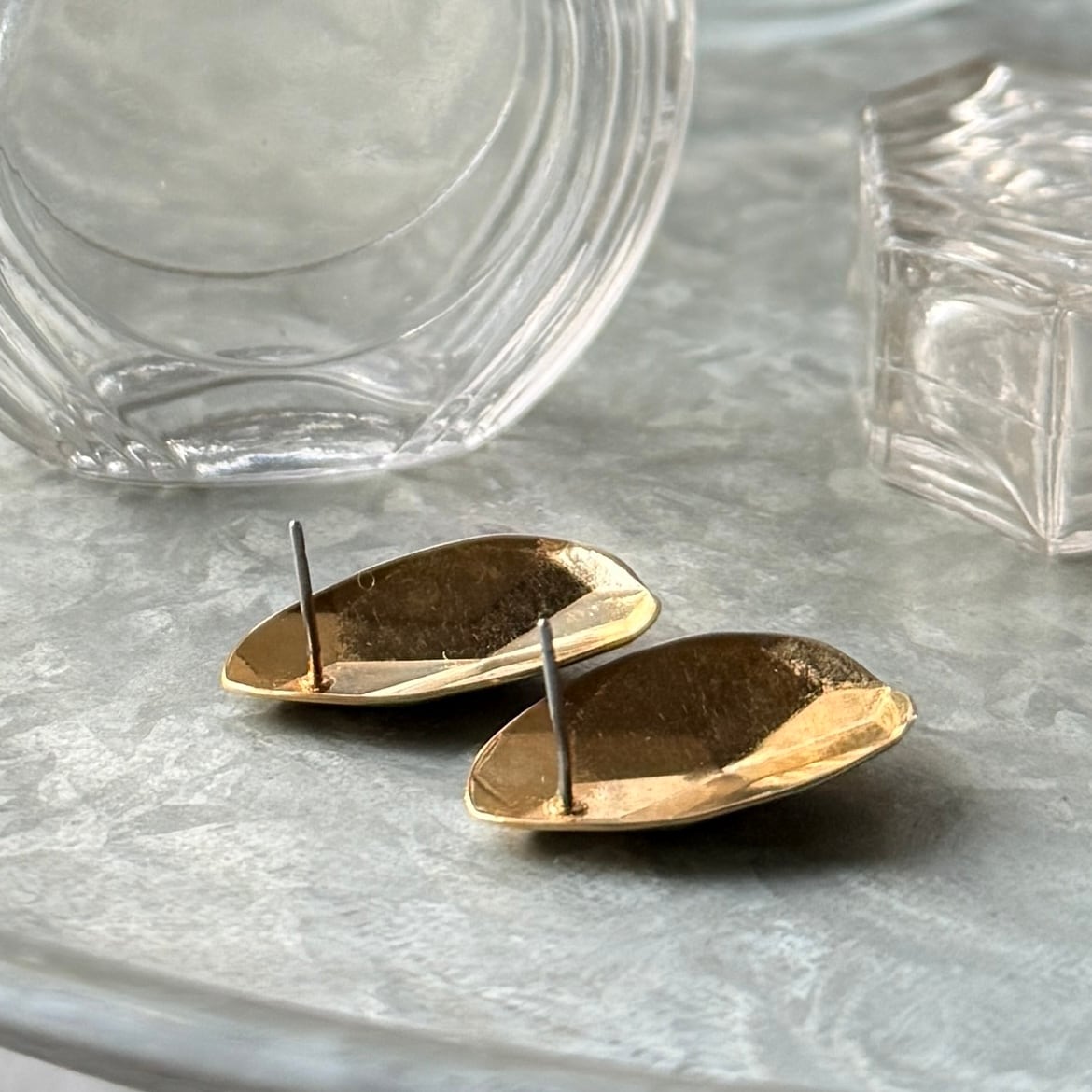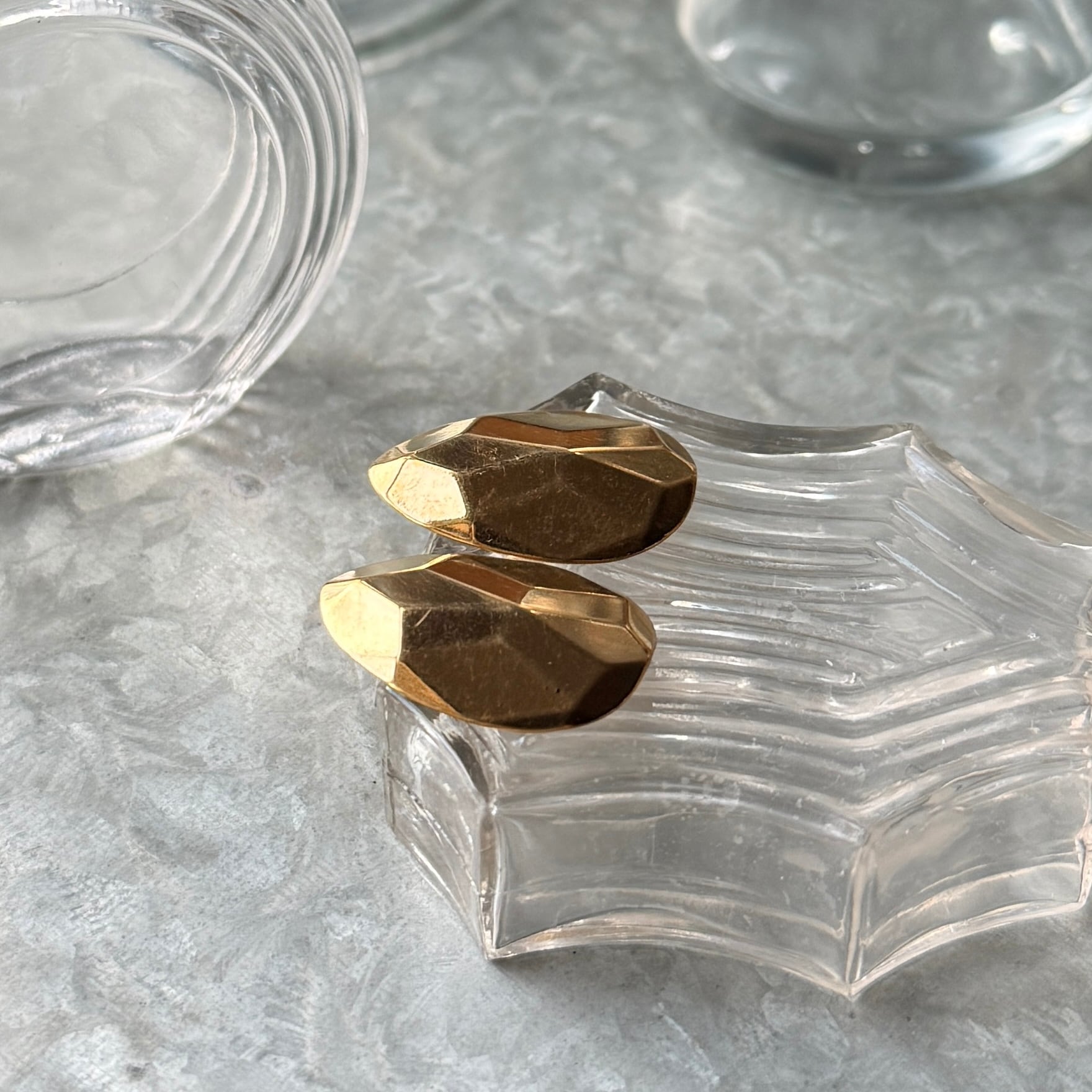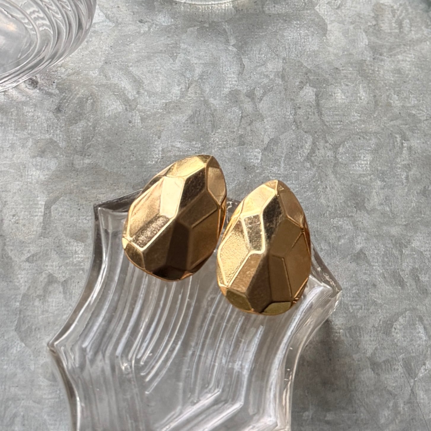 多面体カットされたデザインが特徴的な、ゴールドトーンのピアス。