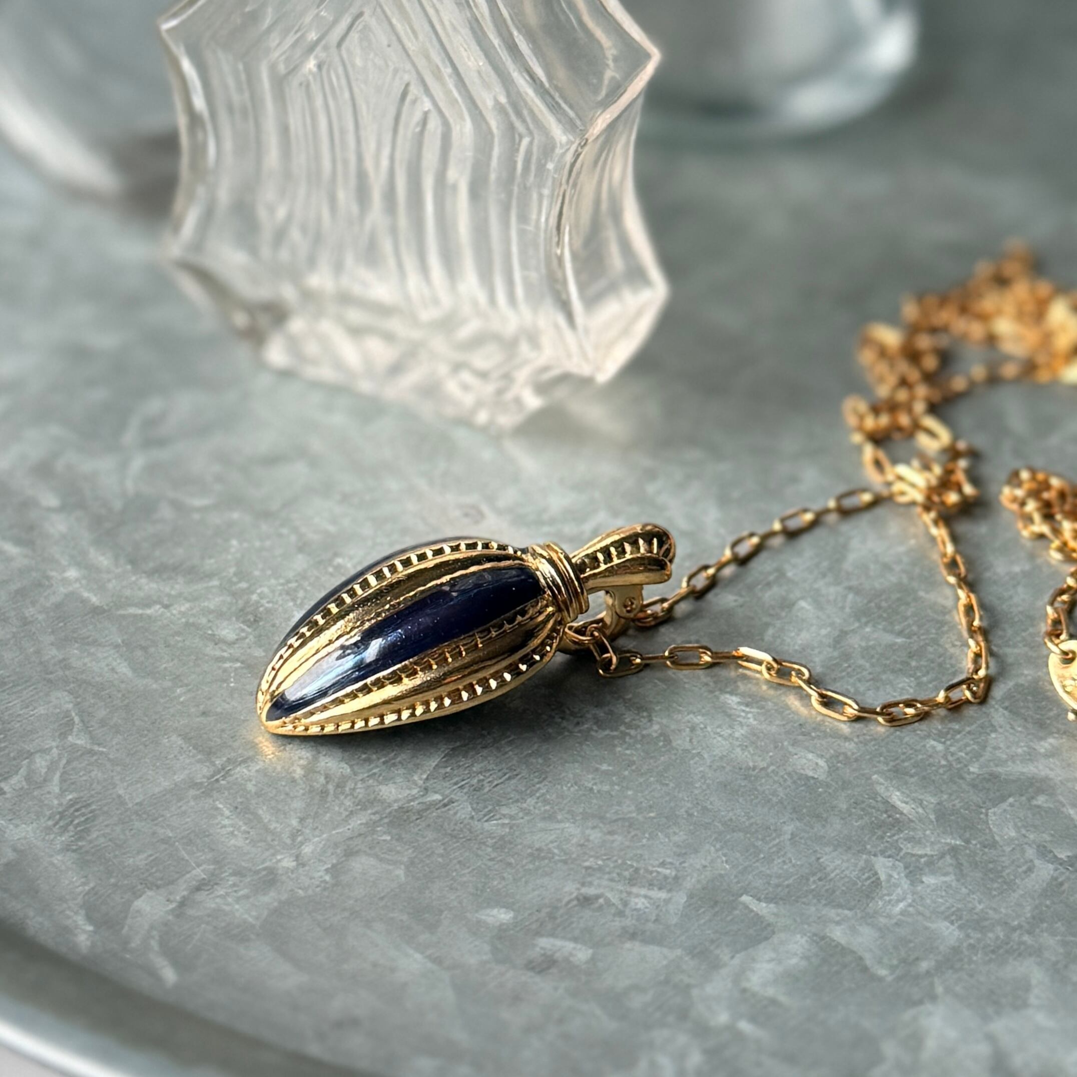 パフュームボトルやポマンダーを彷彿とさせる、気品あふれるティアドロップ型のペンダントトップ。