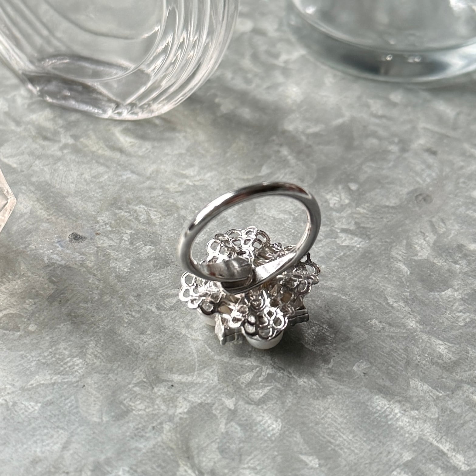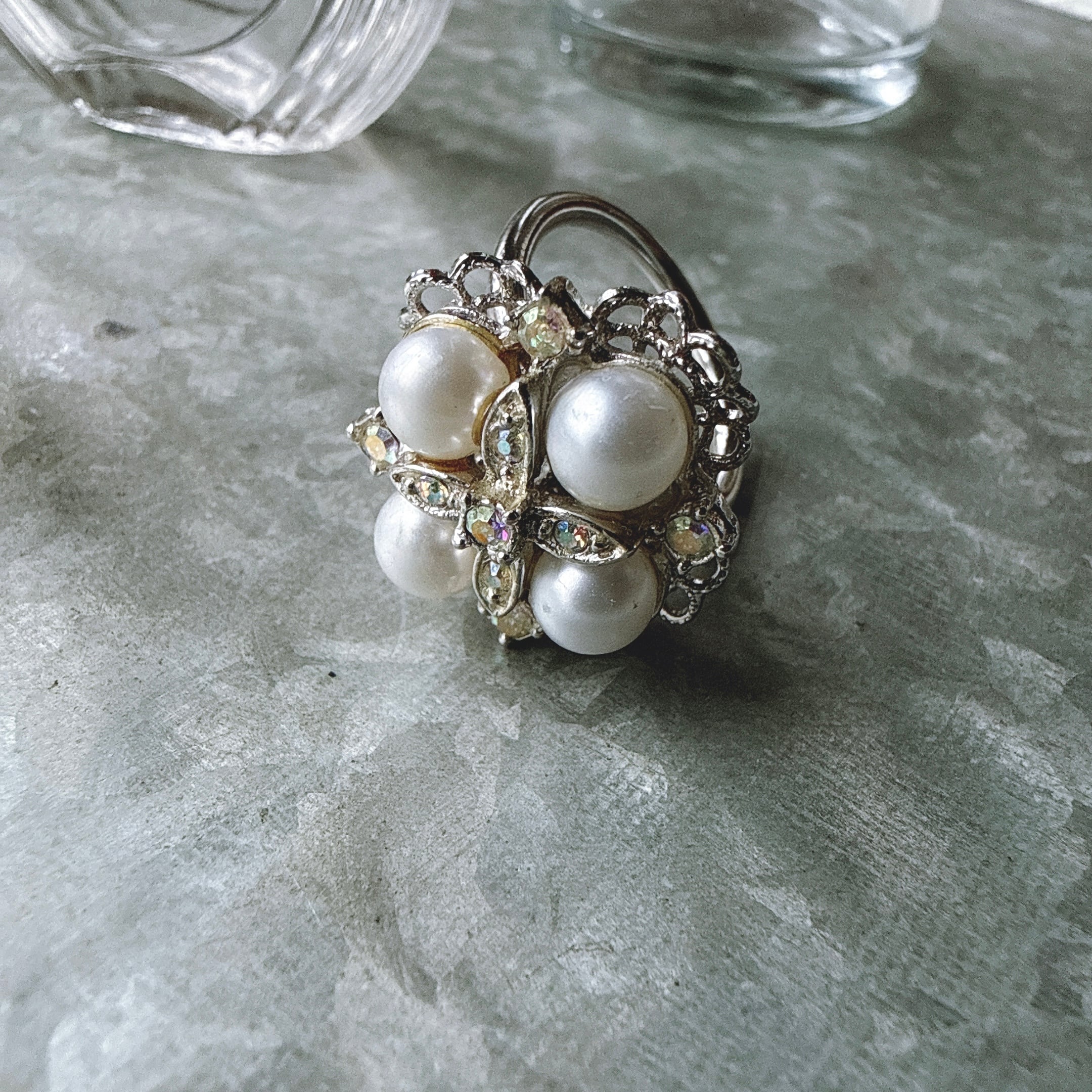 RS13-【 SARAH COVENTRY 】サラコベントリー・ヴィンテージリング 1975 "Princess" Faux Pearl Rhinestone Silver Tone Ring