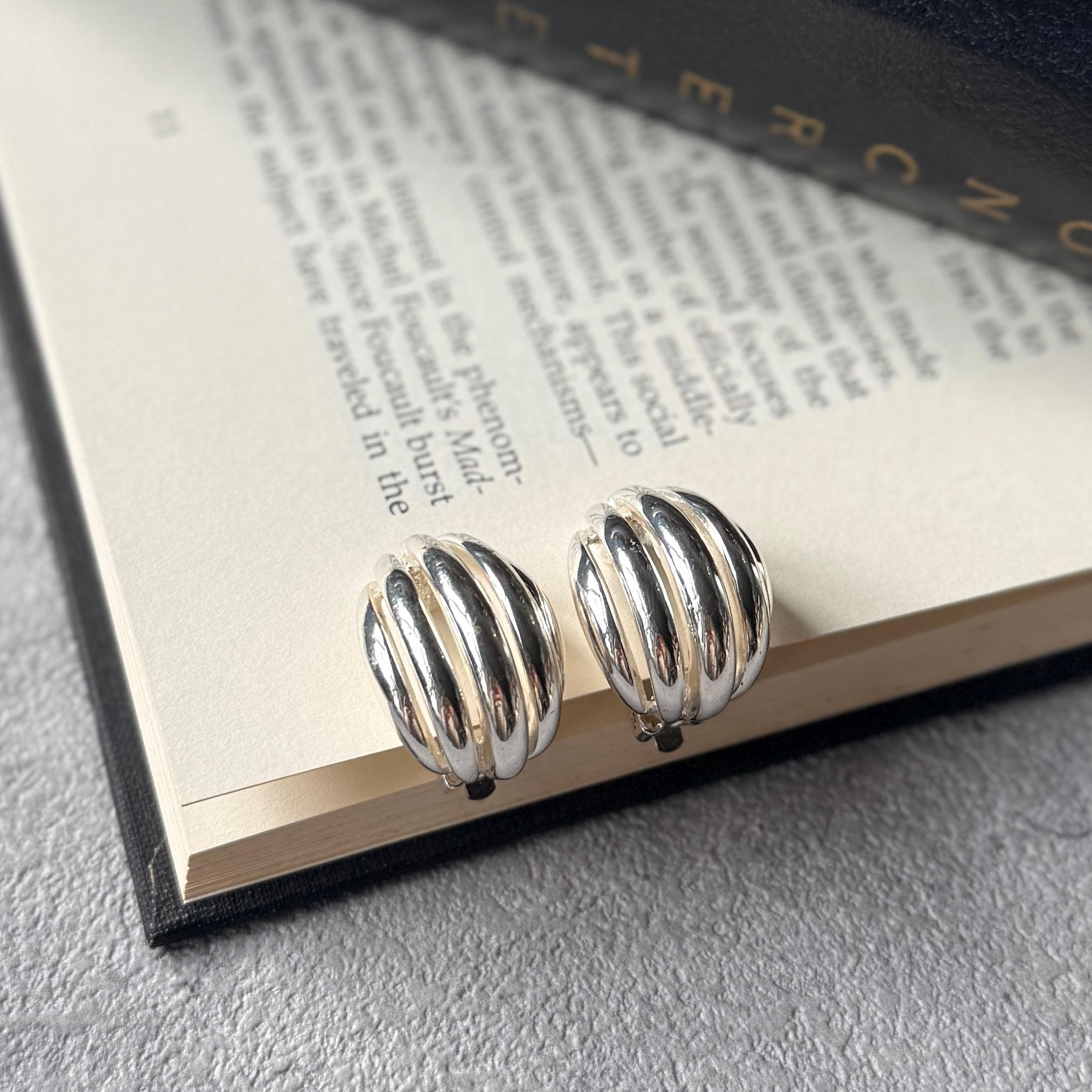Y1235-ヴィンテージイヤリング U.S.A. 1980-90's Silver Tone Openwork Half Hoop Fence Chunky Earrings
