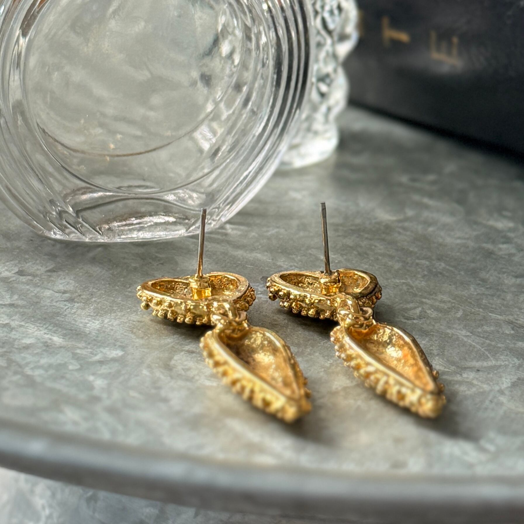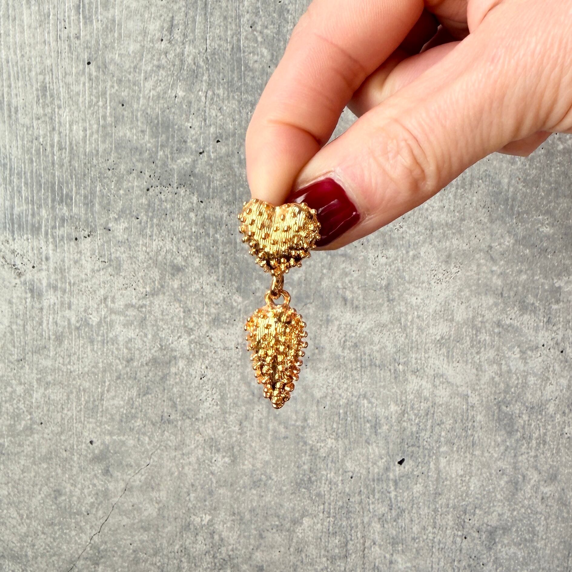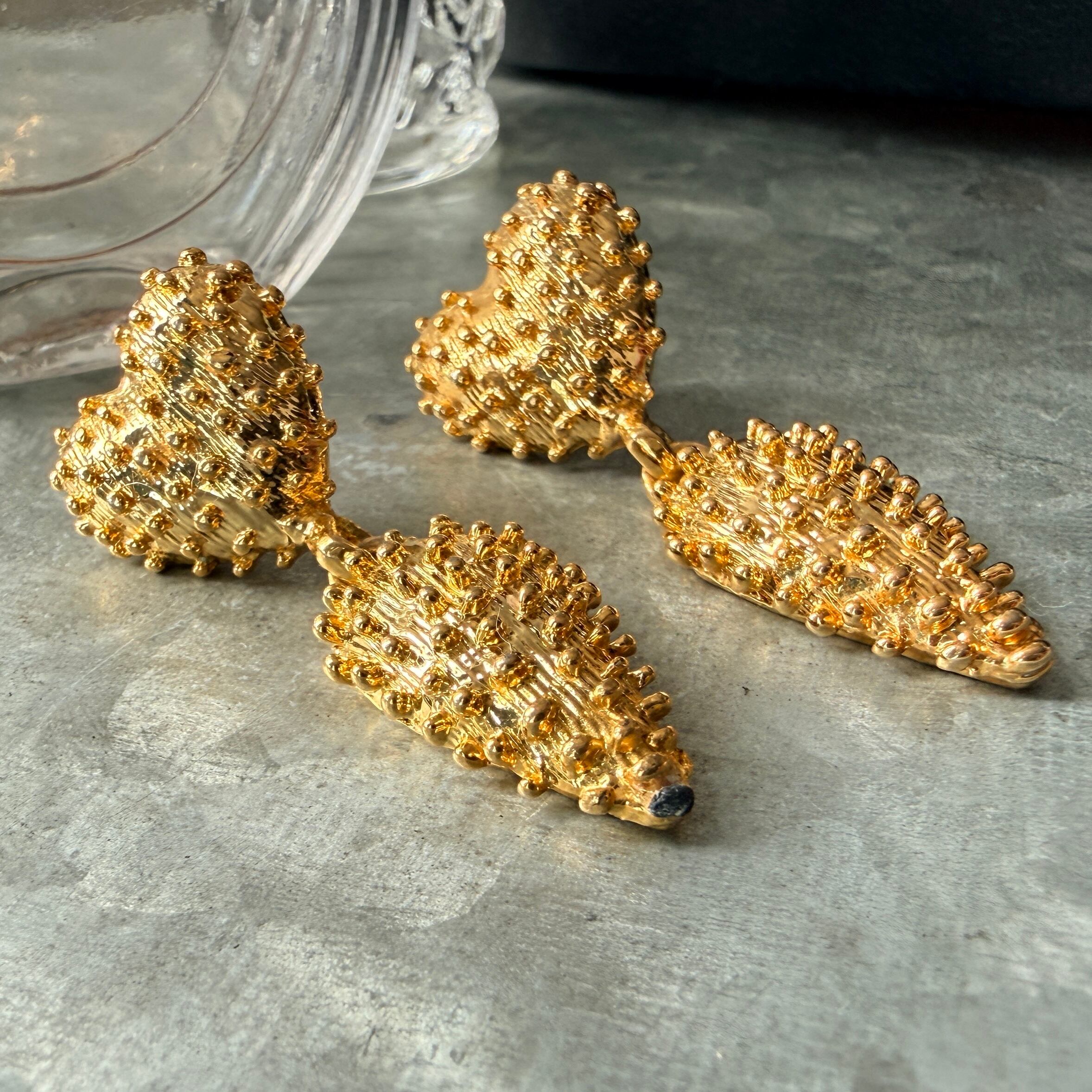 P761-ヴィンテージピアス U.S.A. 1980's Textured Gold Tone Heart Drop Pierced Earrings