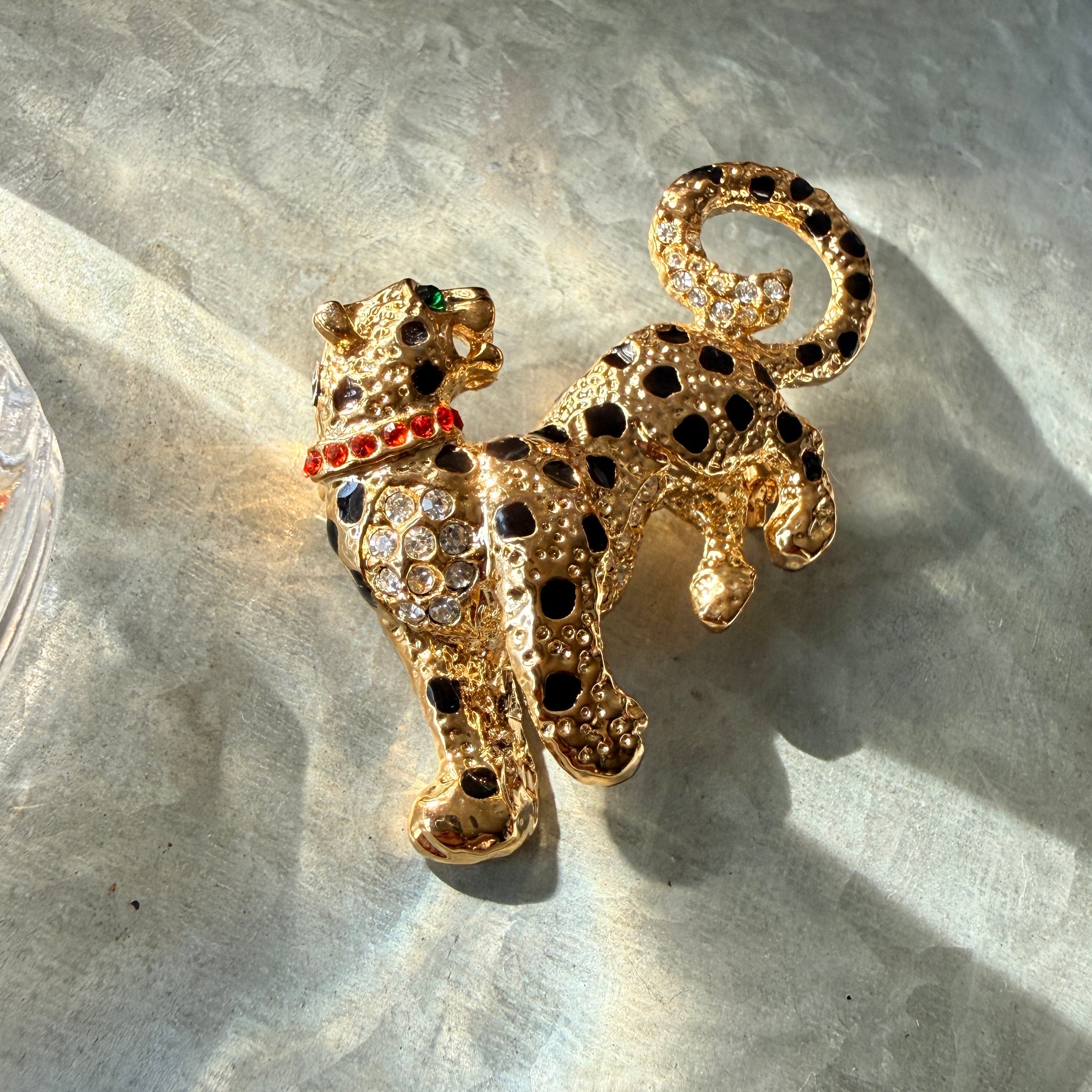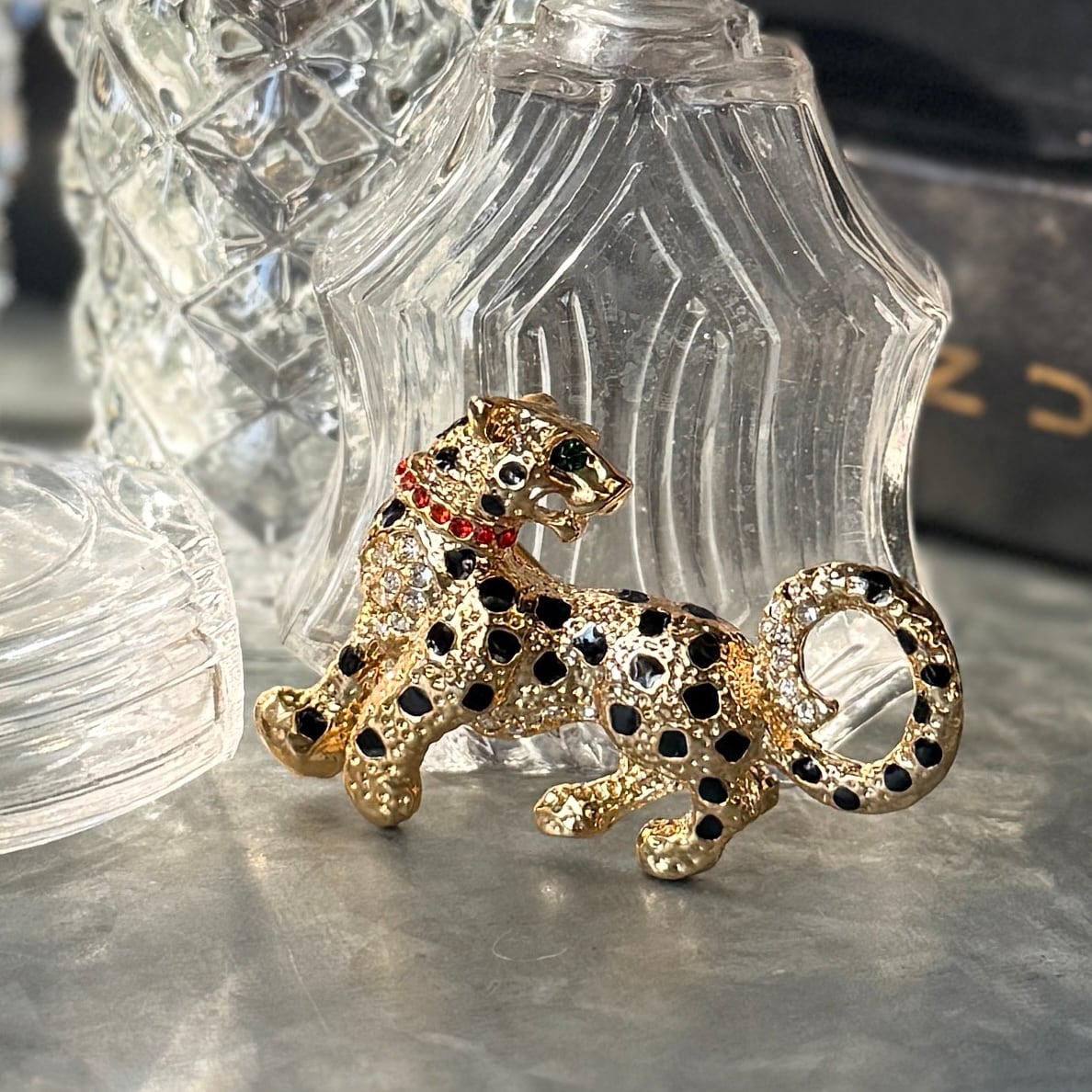ゴールドトーンのパンサーモチーフのヴィンテージブローチ。
