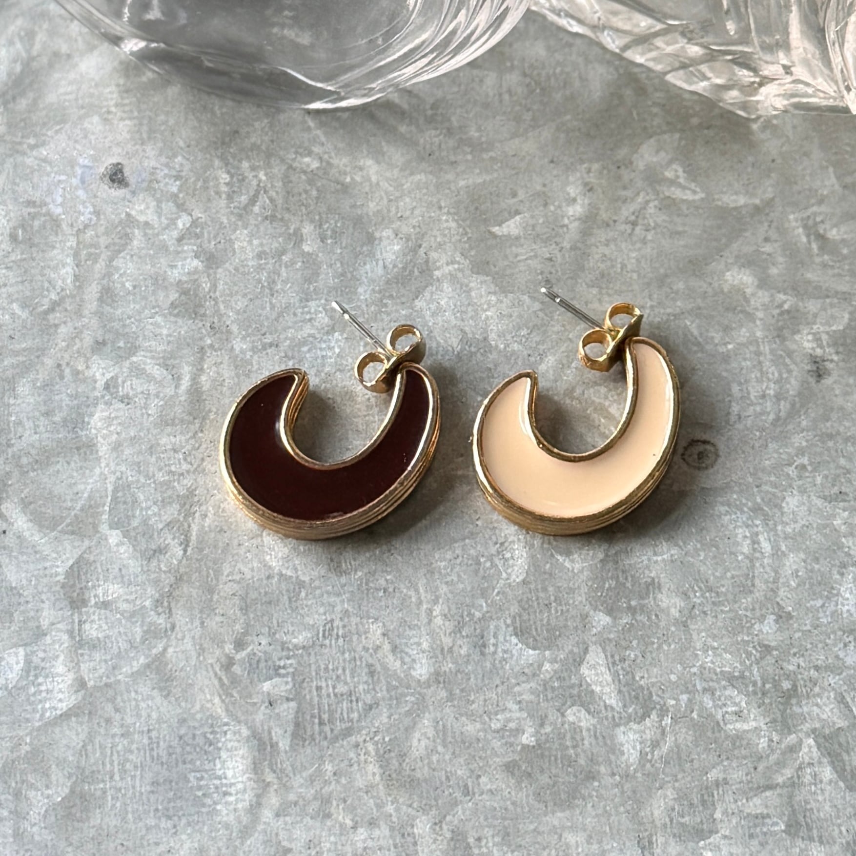 クレセントフープに2色のエナメルペイントされたリバーシブルピアス。