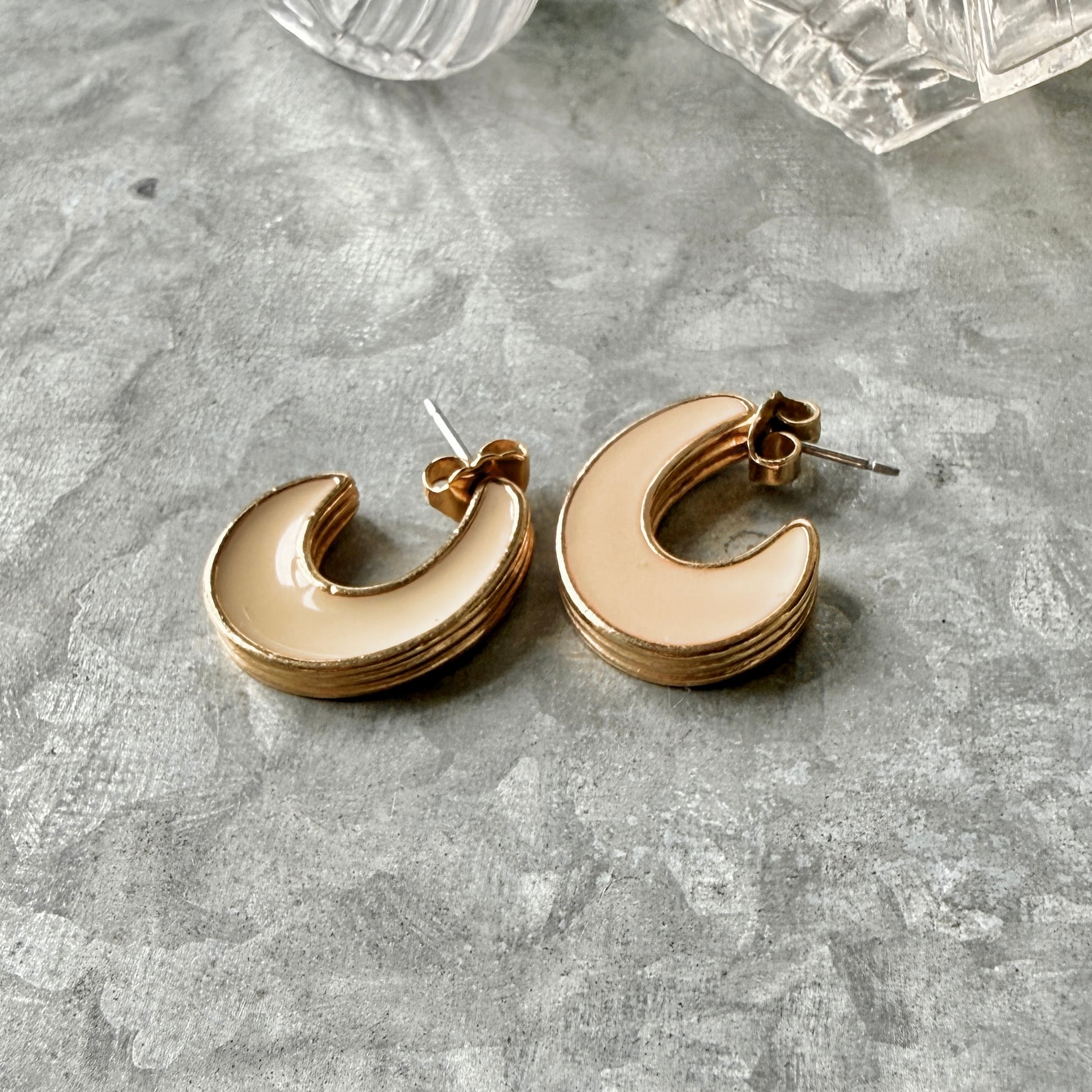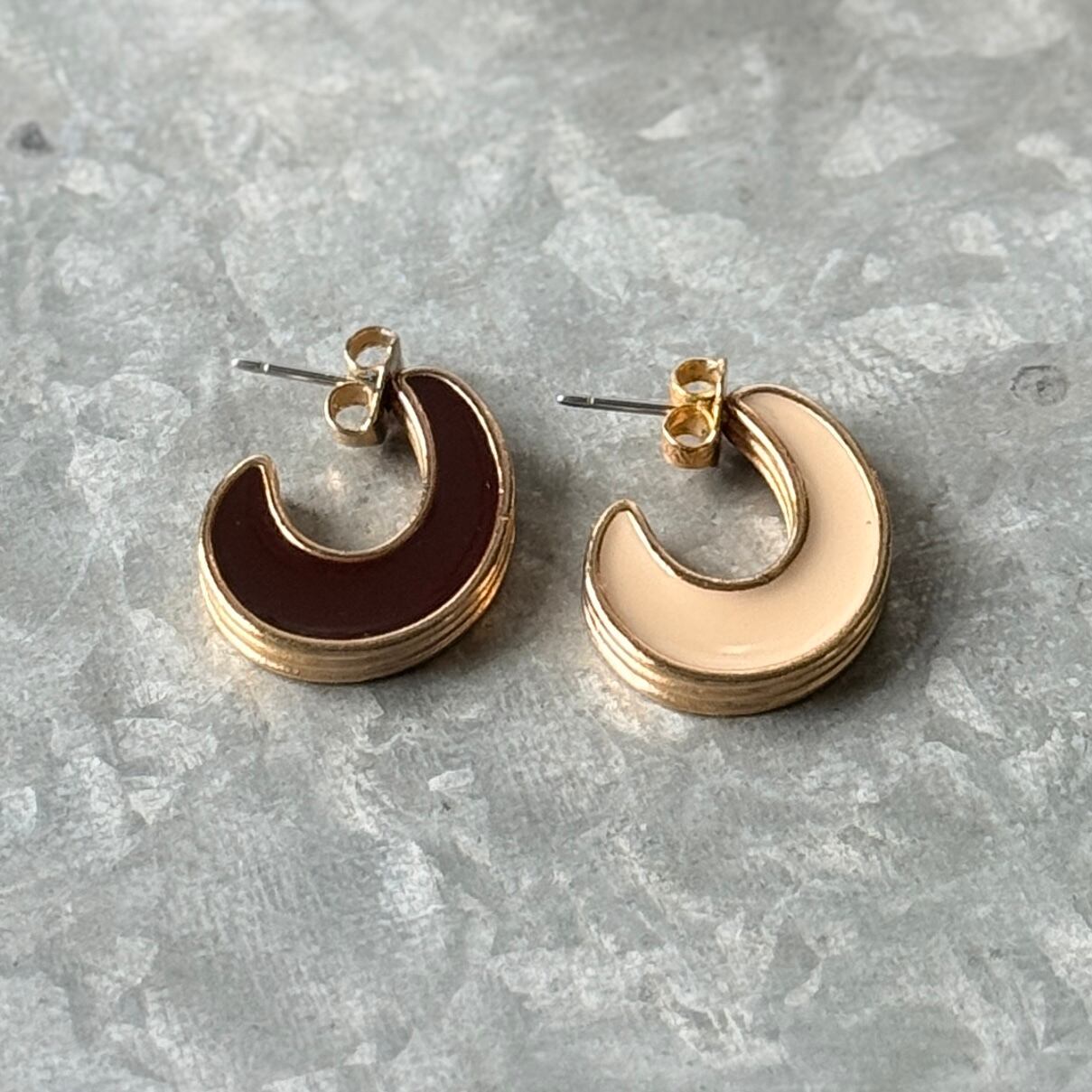 PA492-【 AVON 】エイボン・ヴィンテージピアス 1978 Double Sided Crescent Pierced Earrings Brown & Cream