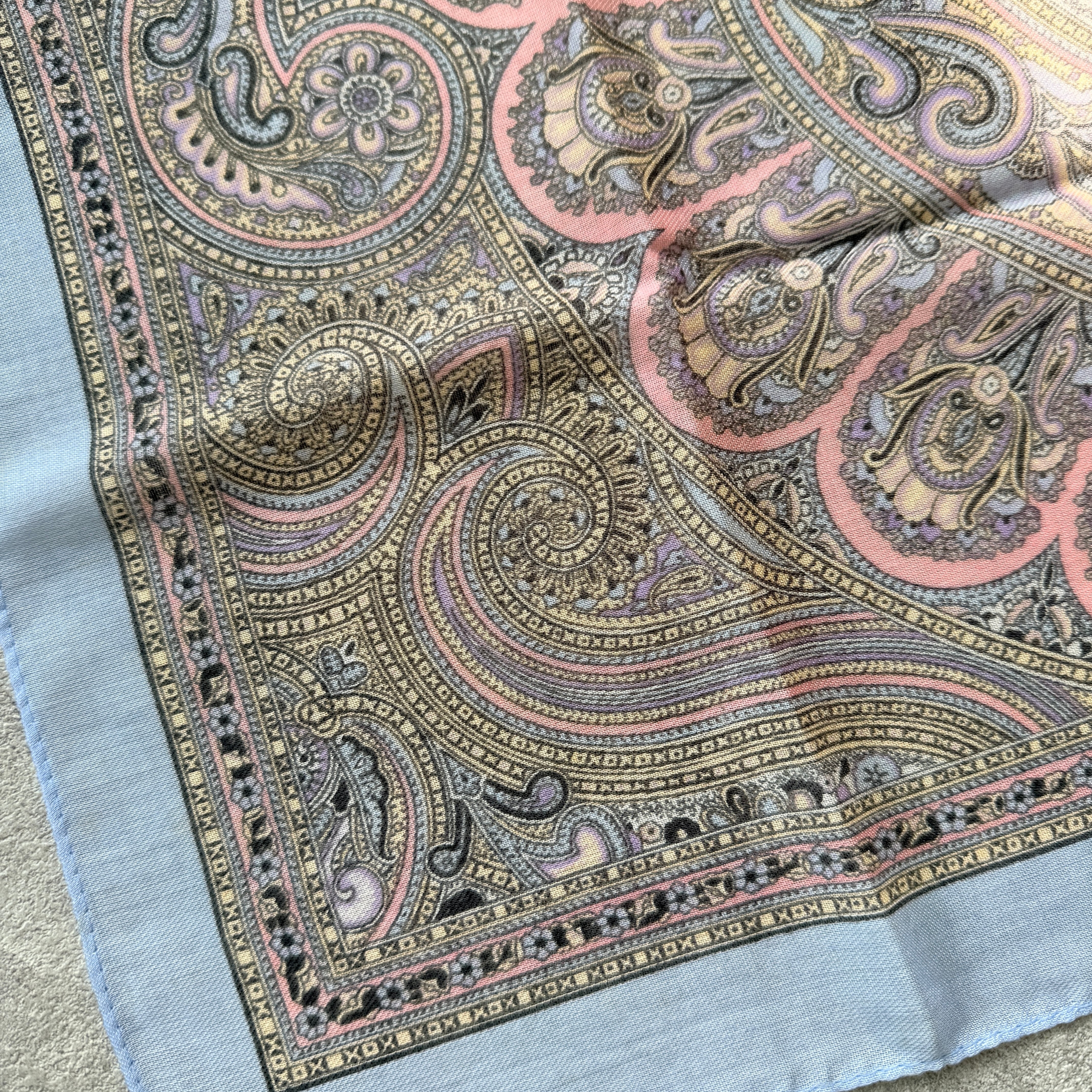 SC27-ヴィンテージスカーフ U.S.A. 1970-80’s Sax Blue & Pink Paisley Print Scarf