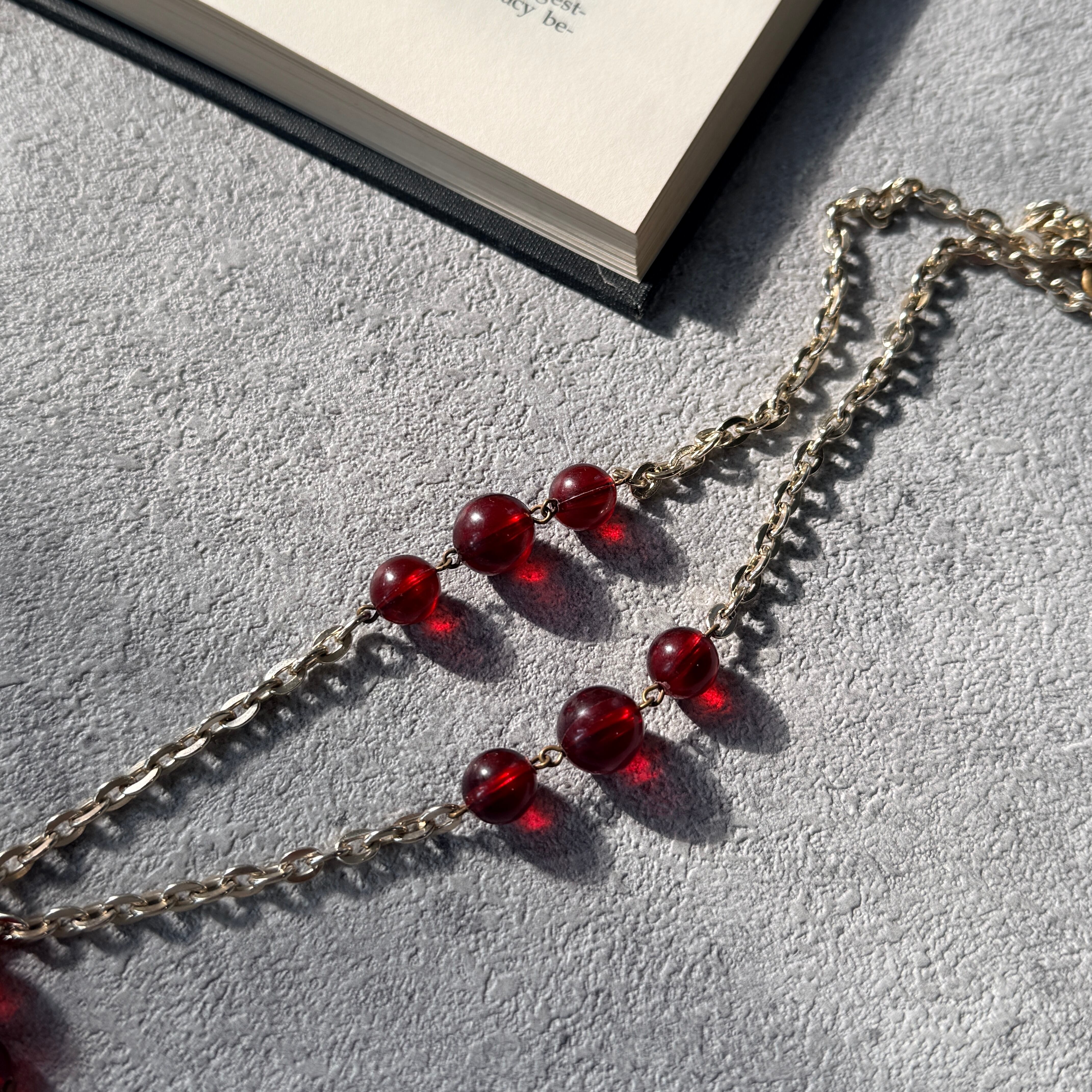 鮮やかなチェリーレッドが印象的なクラスタービーズネックレス。