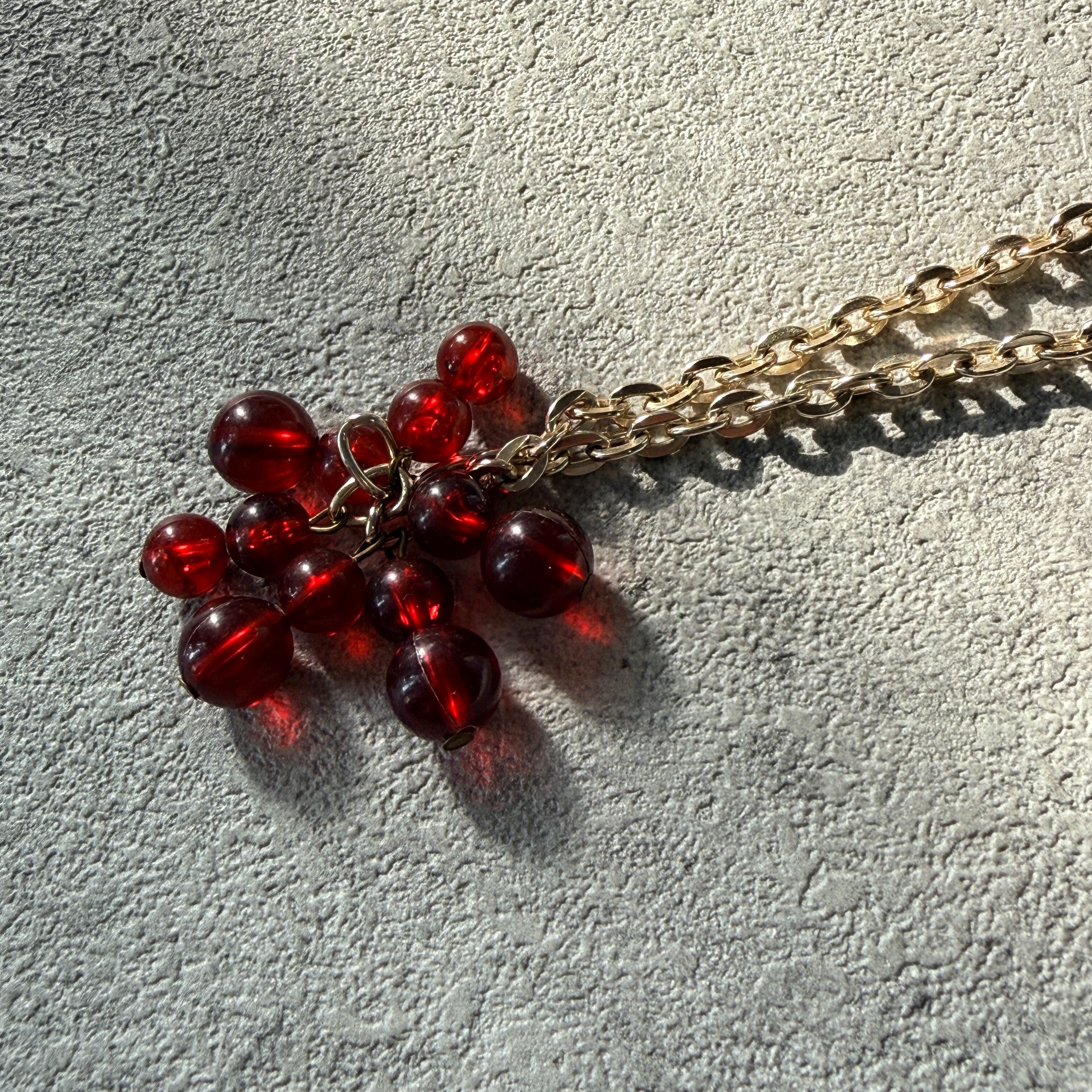 N320-ヴィンテージネックレス U.S.A. 1960-70's Cherry Red Cluster Bead Gold Tone Chain Necklace