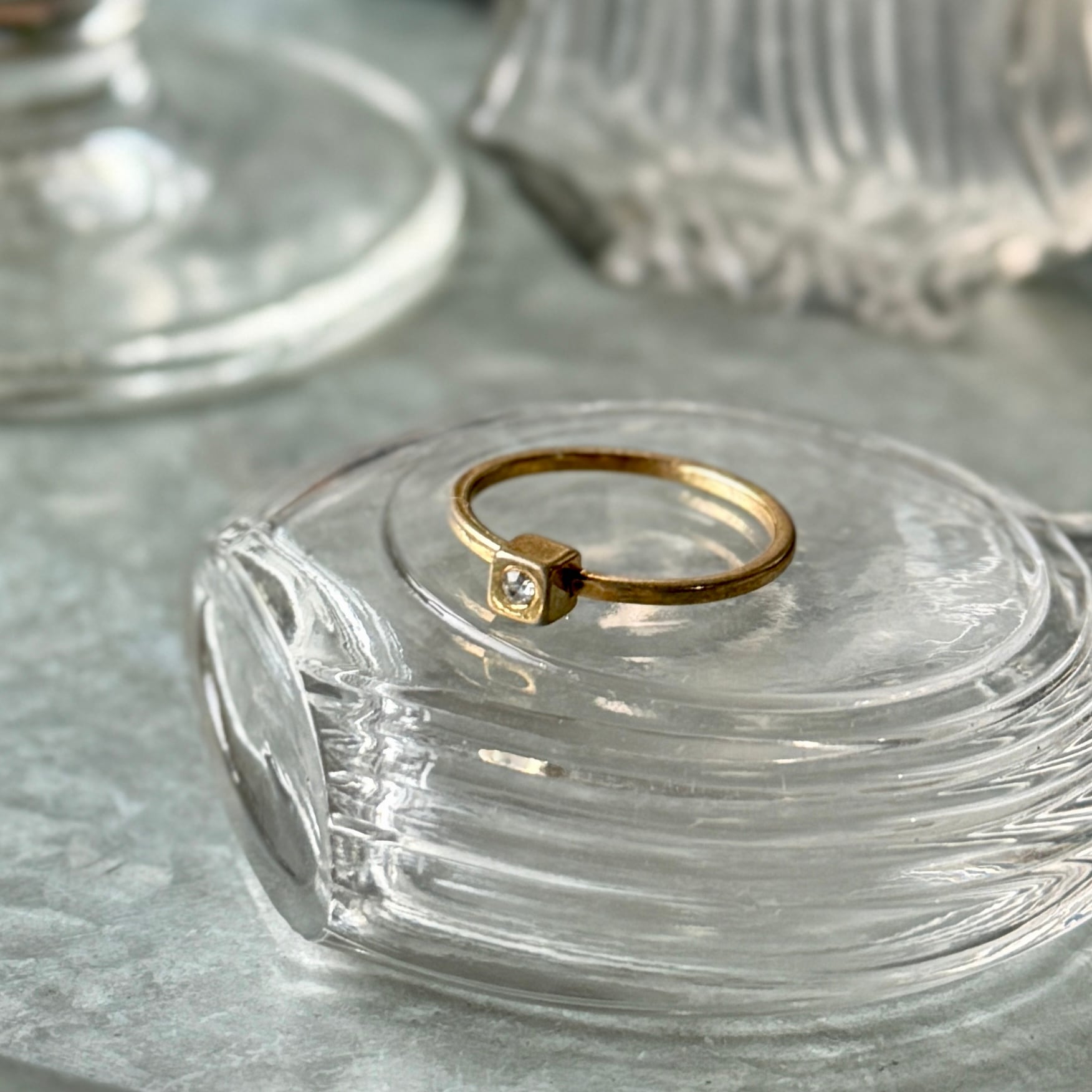 RA161-【 AVON 】エイボン・ヴィンテージリング 1980's Minimalist Gold Tone Cube Rhinestones Ring