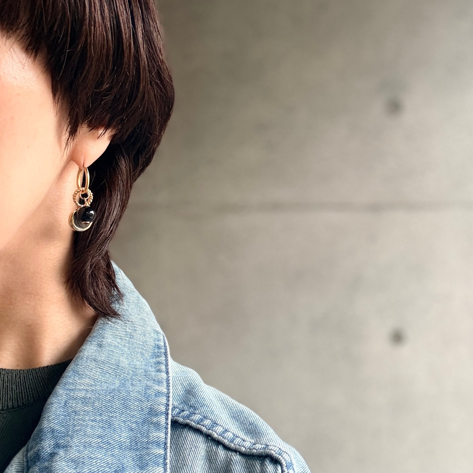 3. Modern: ブラックビーズのみで、モノトーンコーデのアクセントに。