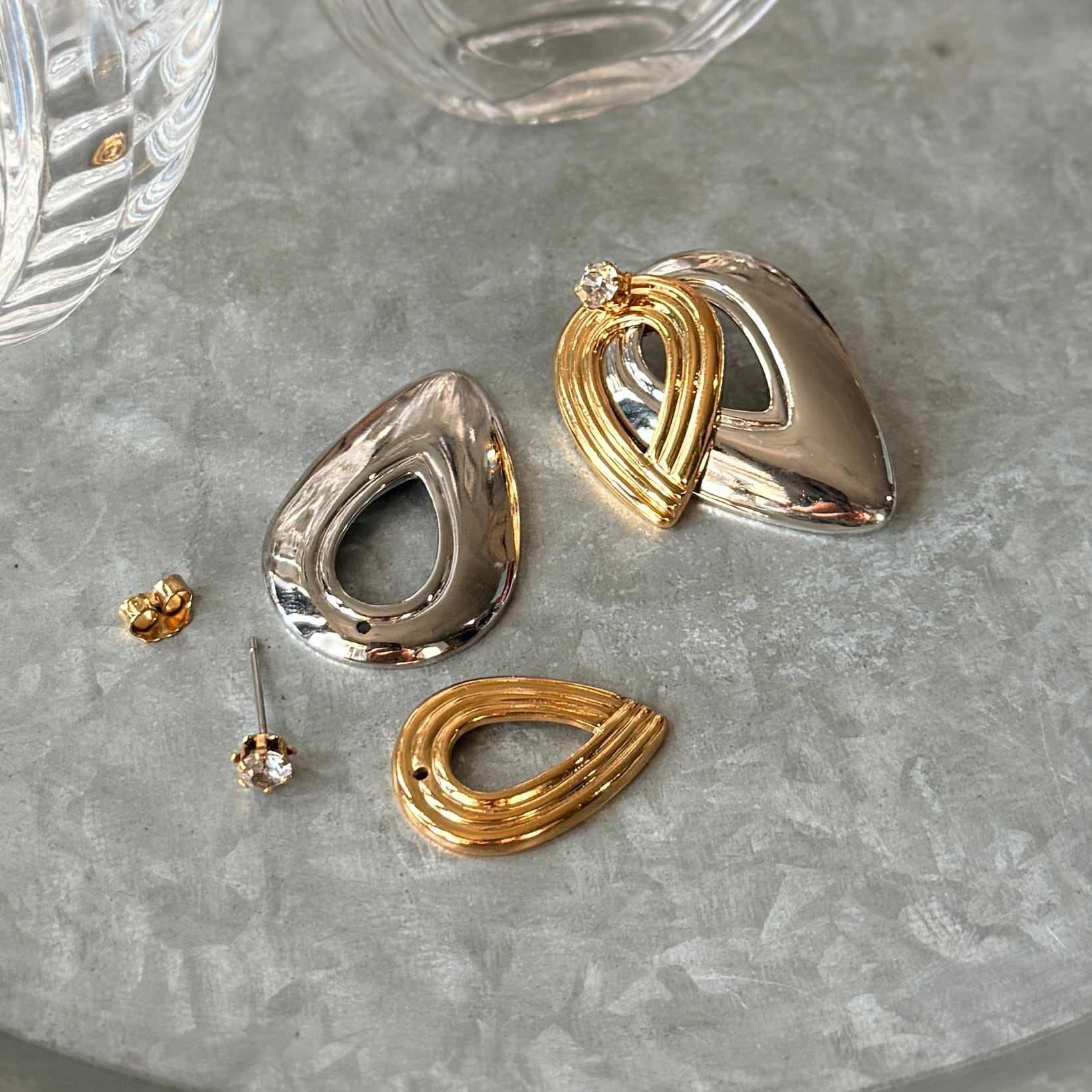 中央のラインストーンスタッドをベースに、2種類のティアードロップパーツを自由に付け替えることができます。